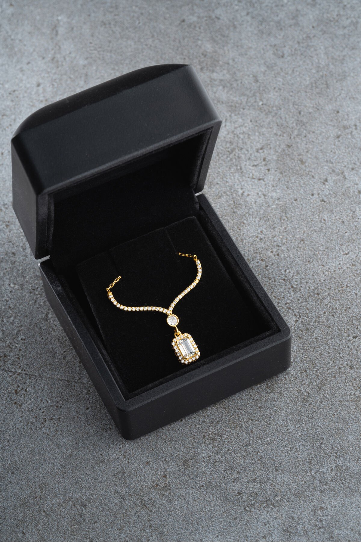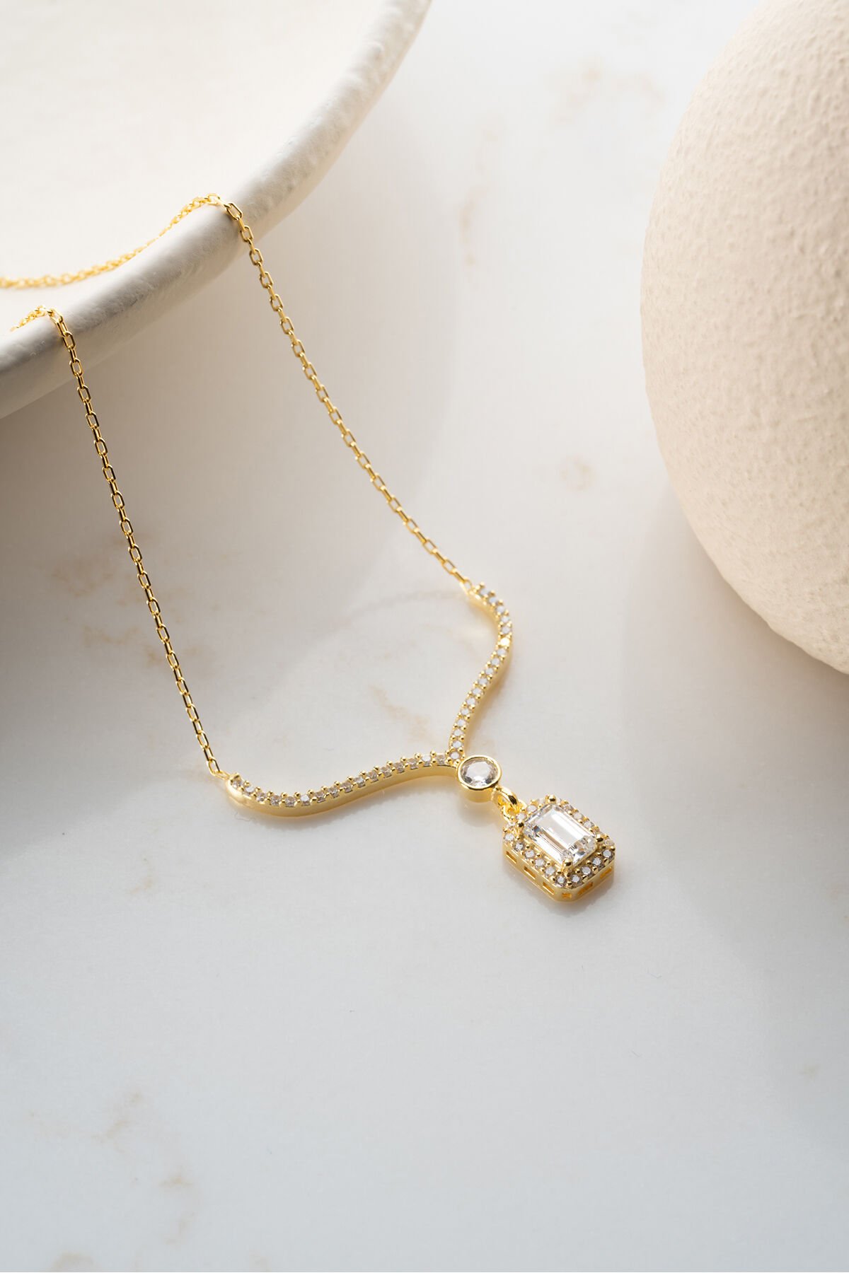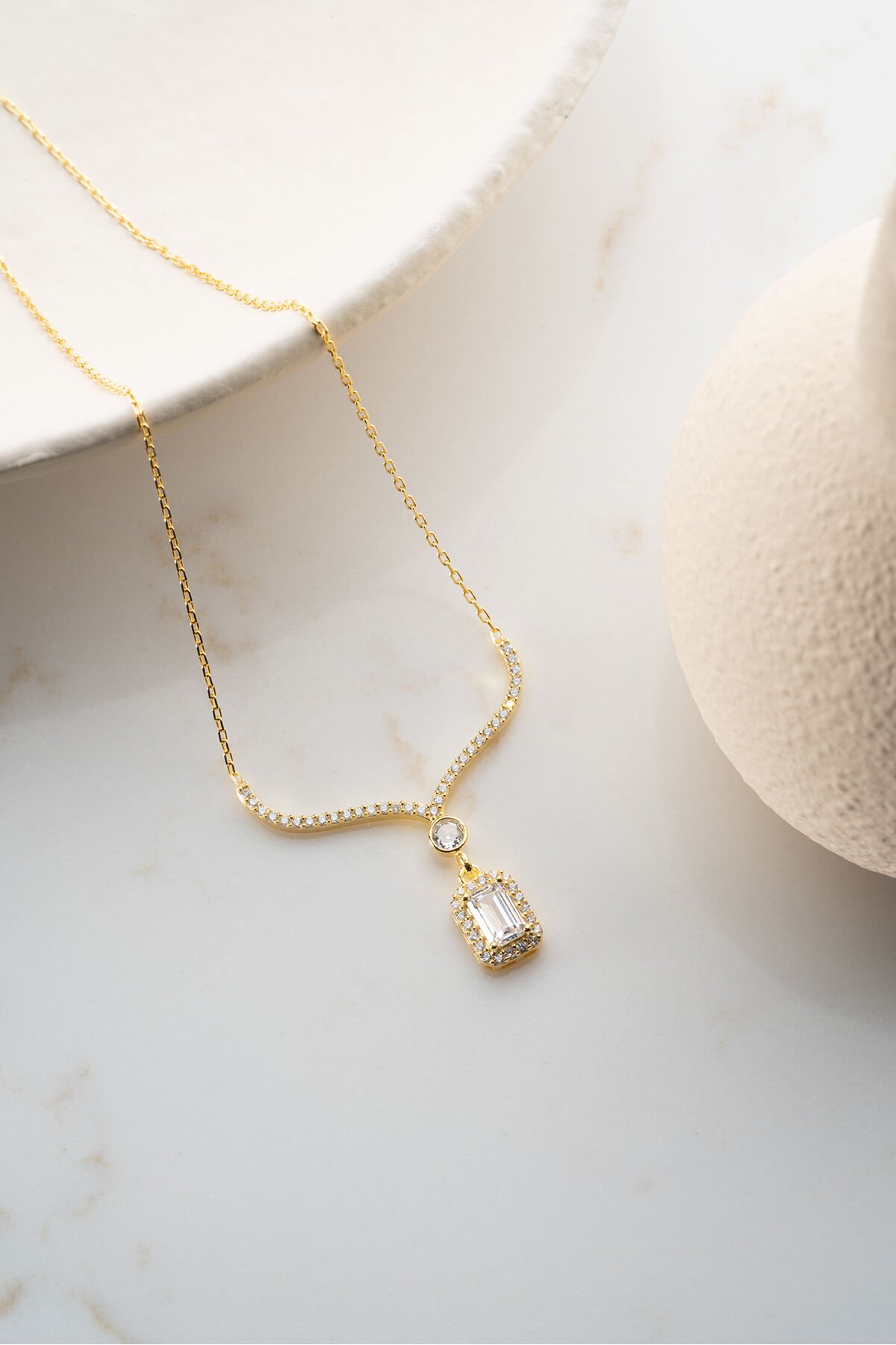 925 Ayar Gümüş Işıklı Kutuda Gold Baget Kolye