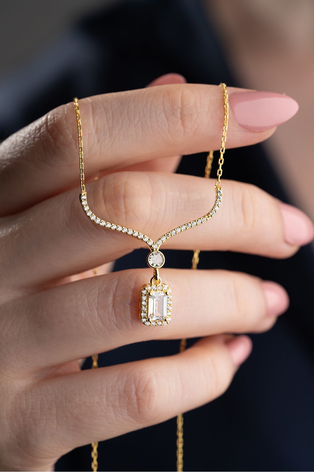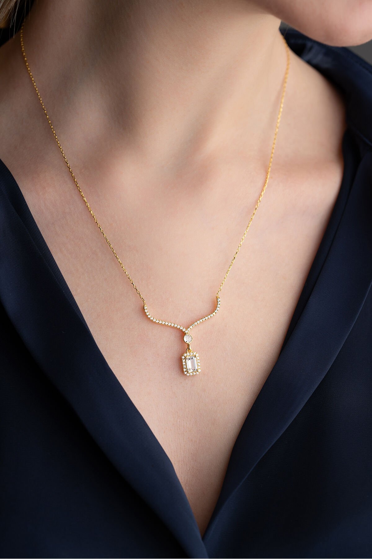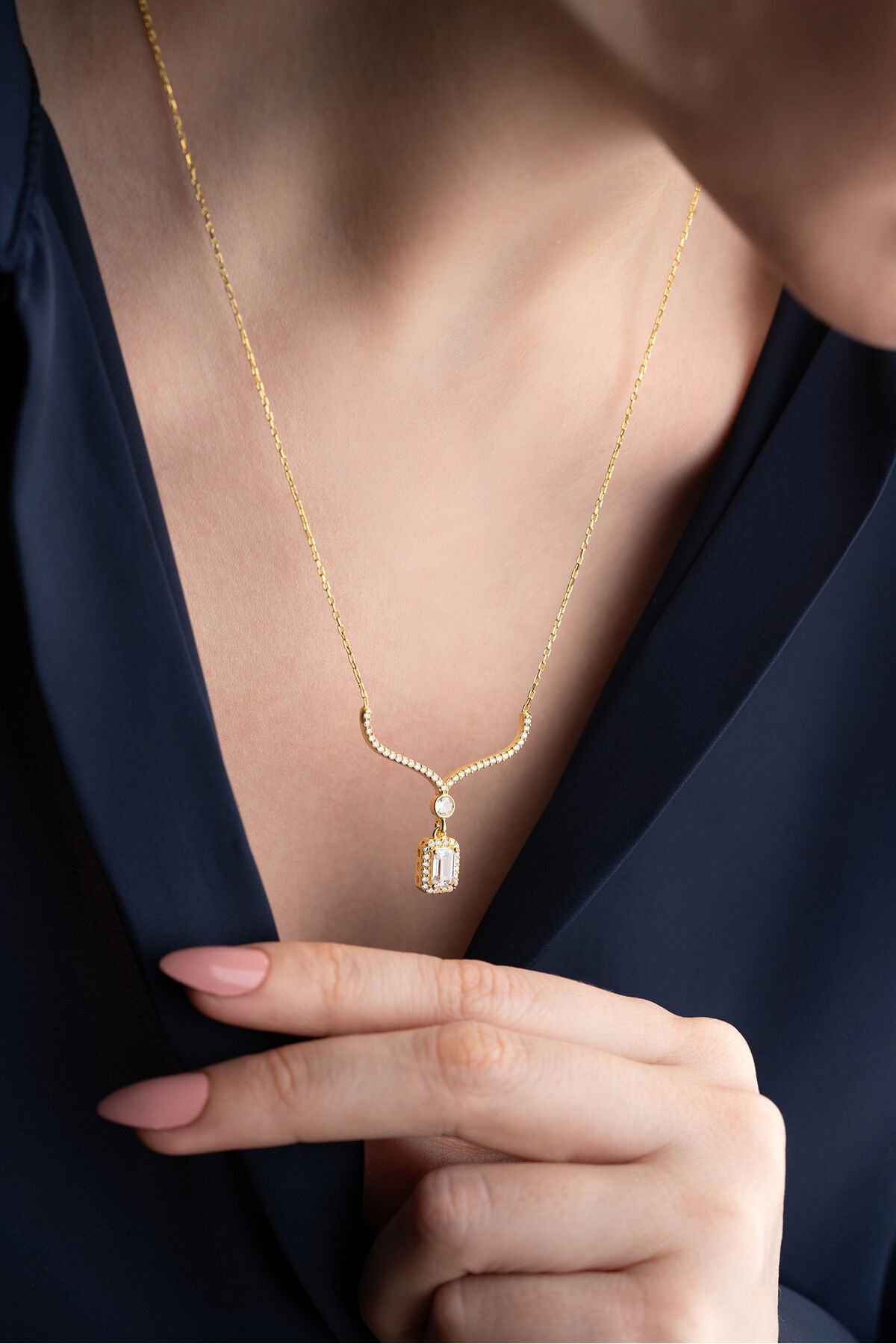 925 Ayar Gümüş Işıklı Kutuda Gold Baget Kolye