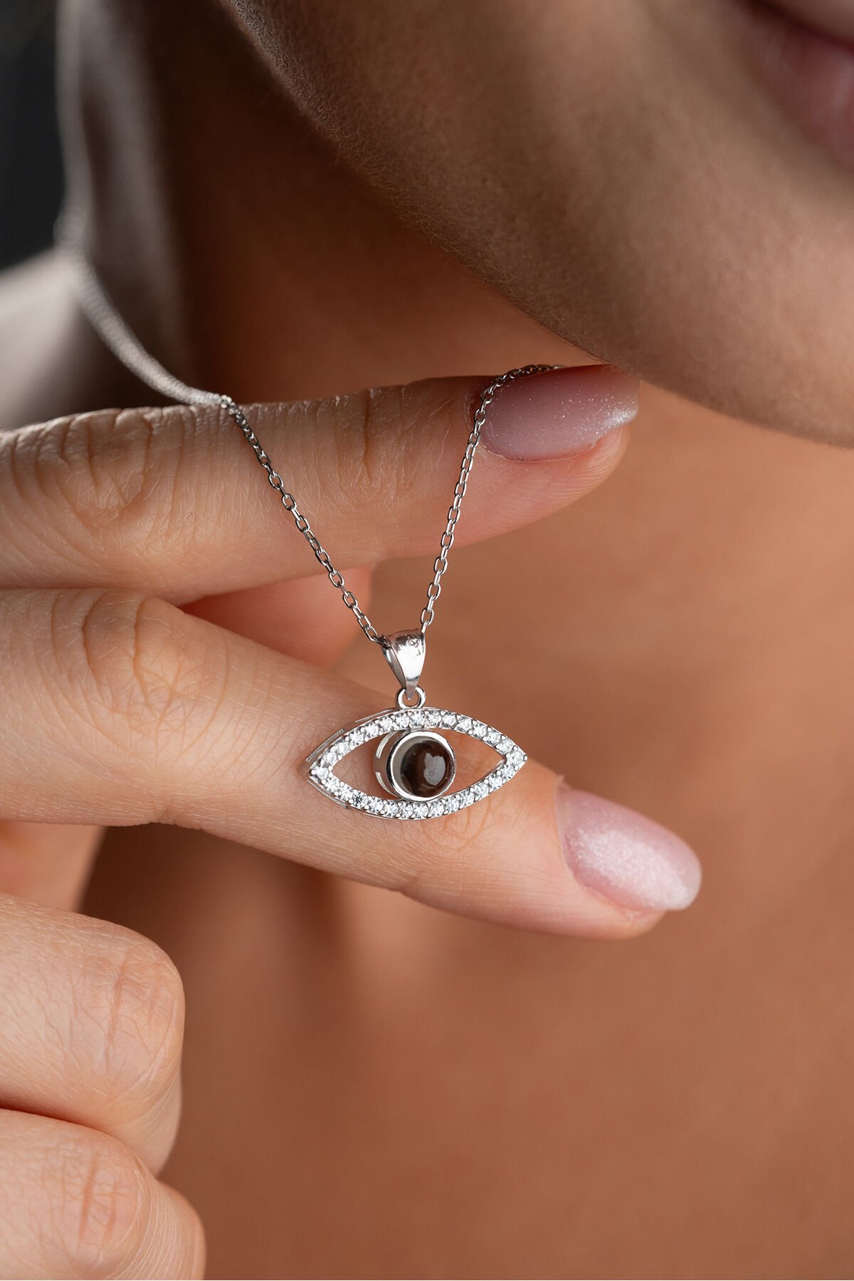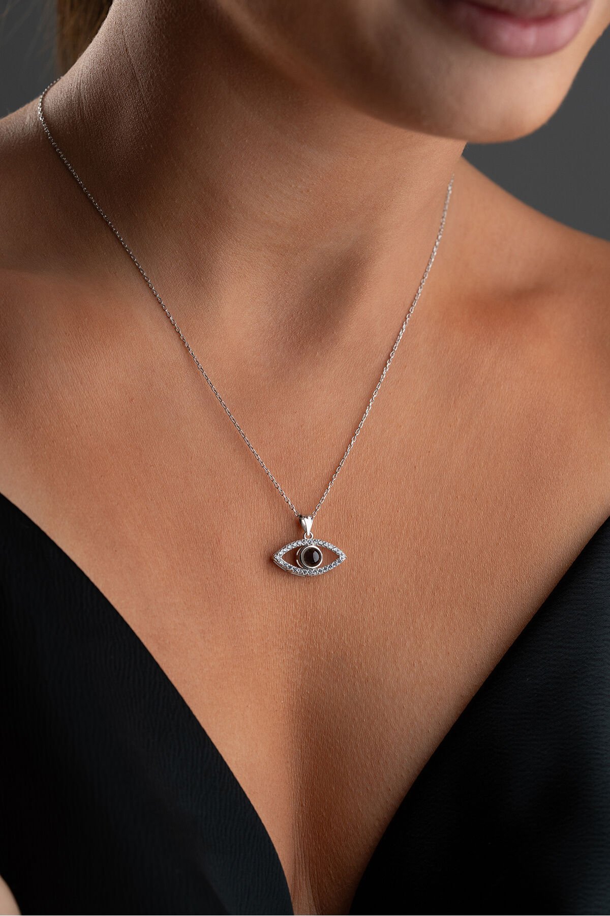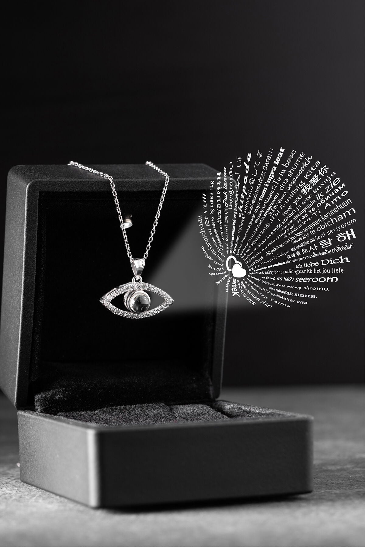 925 Ayar Gümüş Işıklı Kutuda Gözlü 100 Dilde Seviyor Aşk Kolye