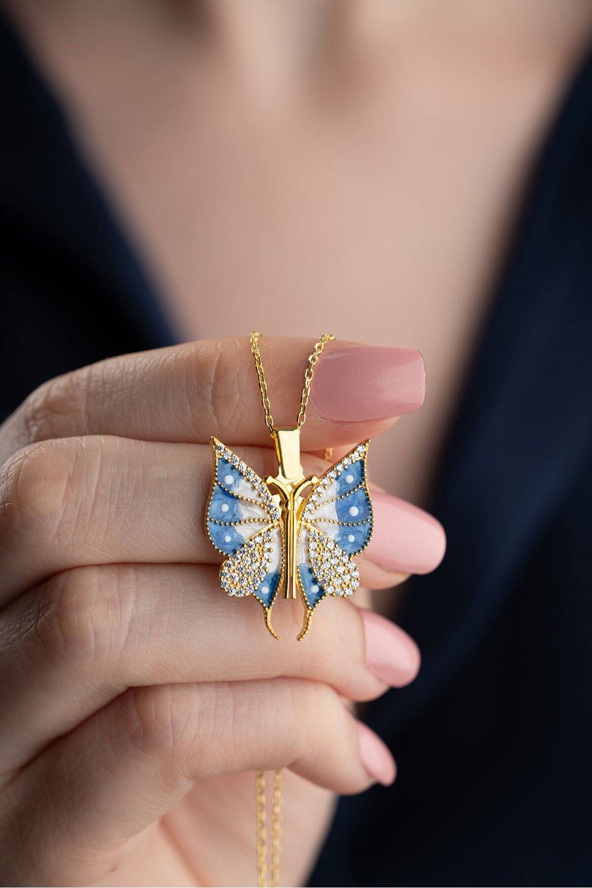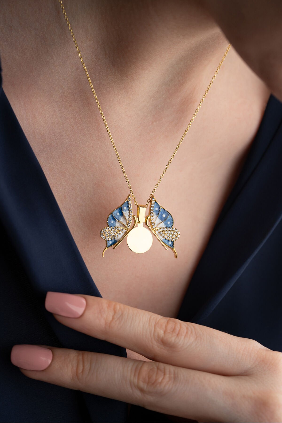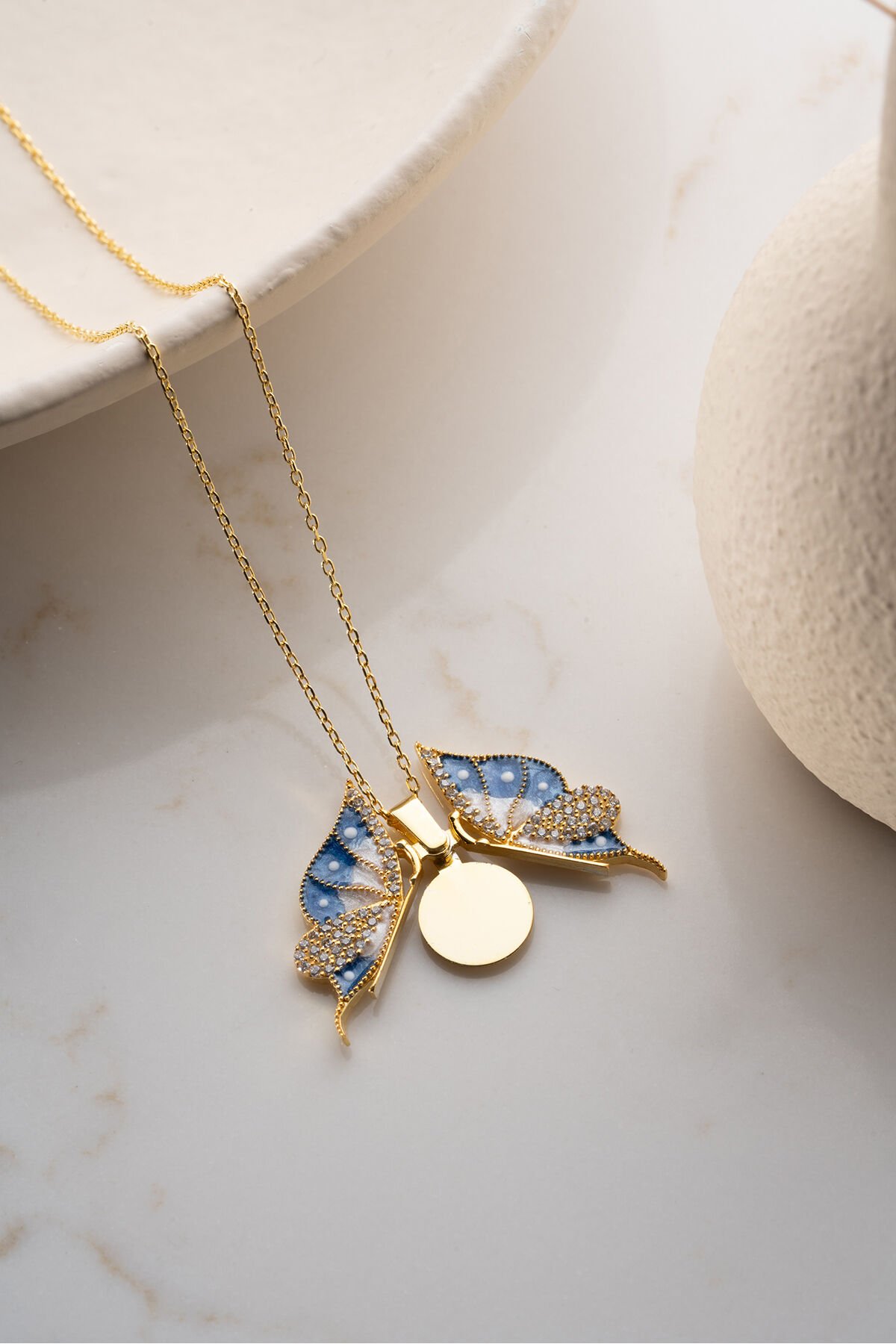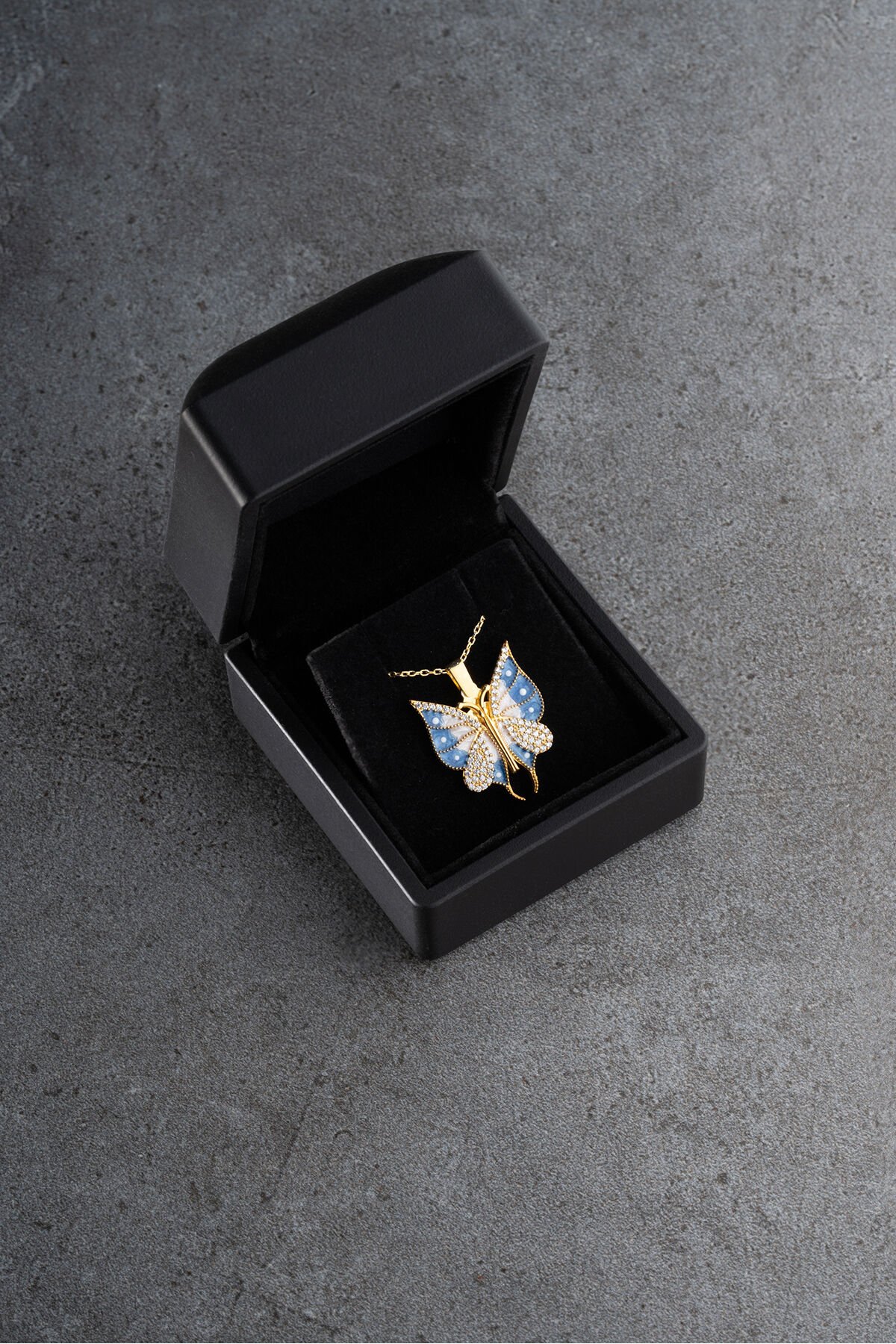 925 Ayar Gümüş Işıklı Kutuda İsim Yazılabilen Kelebek Kolye