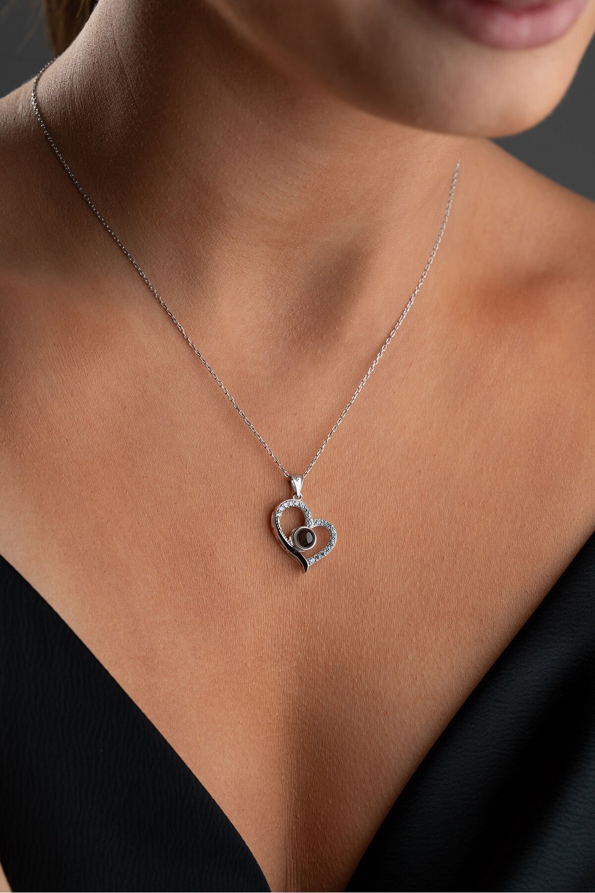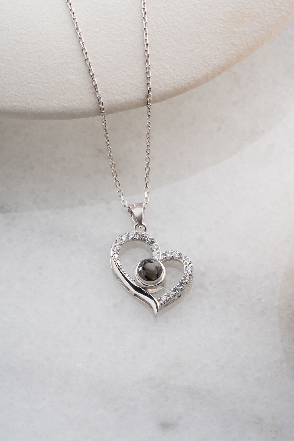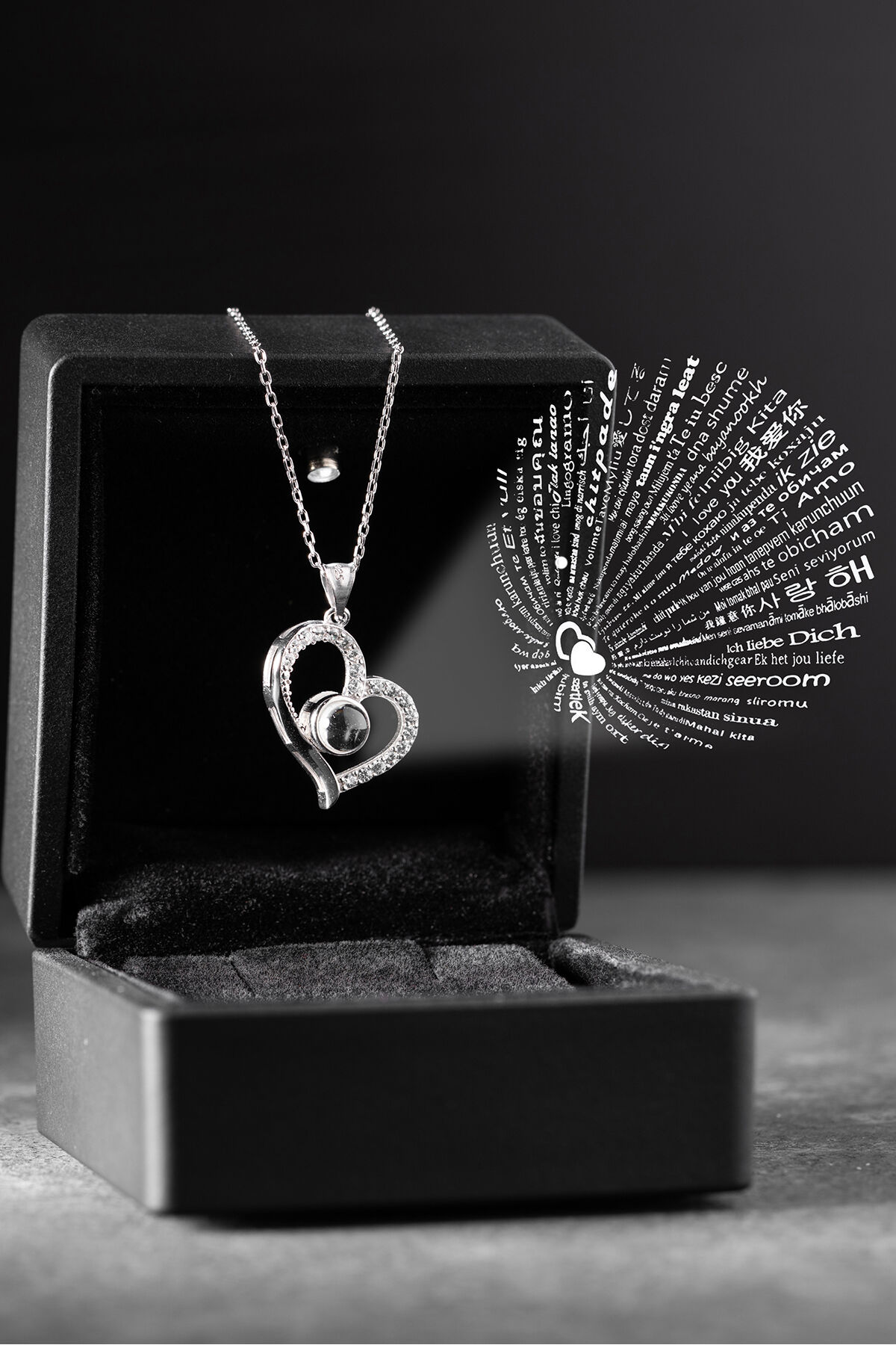 925 Ayar Gümüş Işıklı Kutuda Kalpli 100 Dilde Seviyor Kalp Kolye