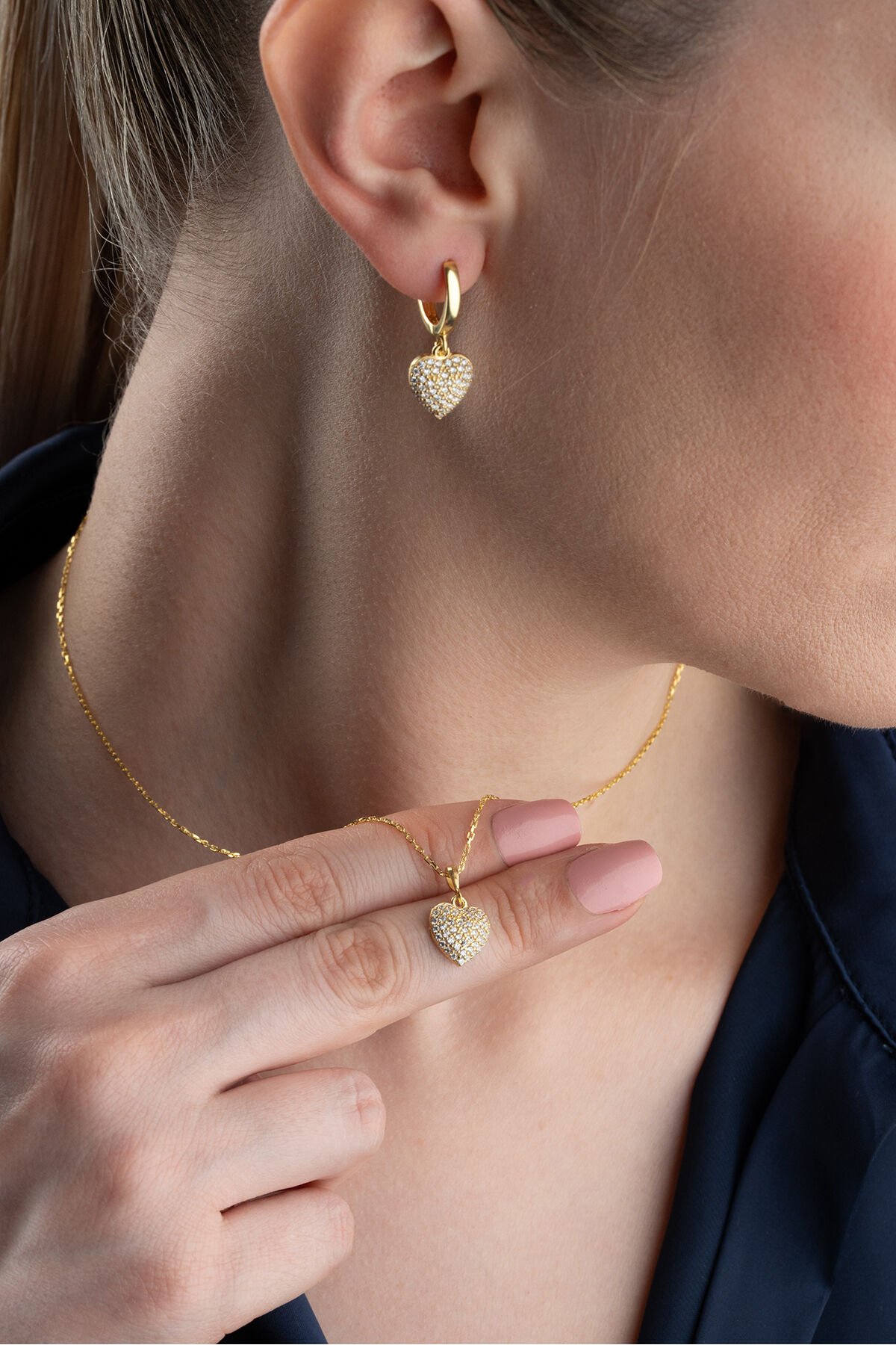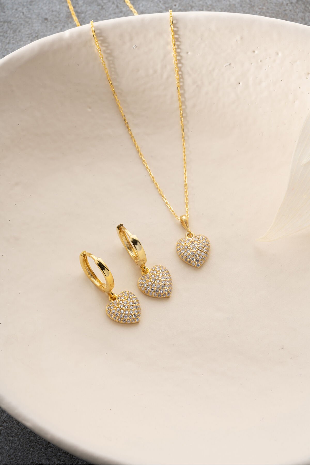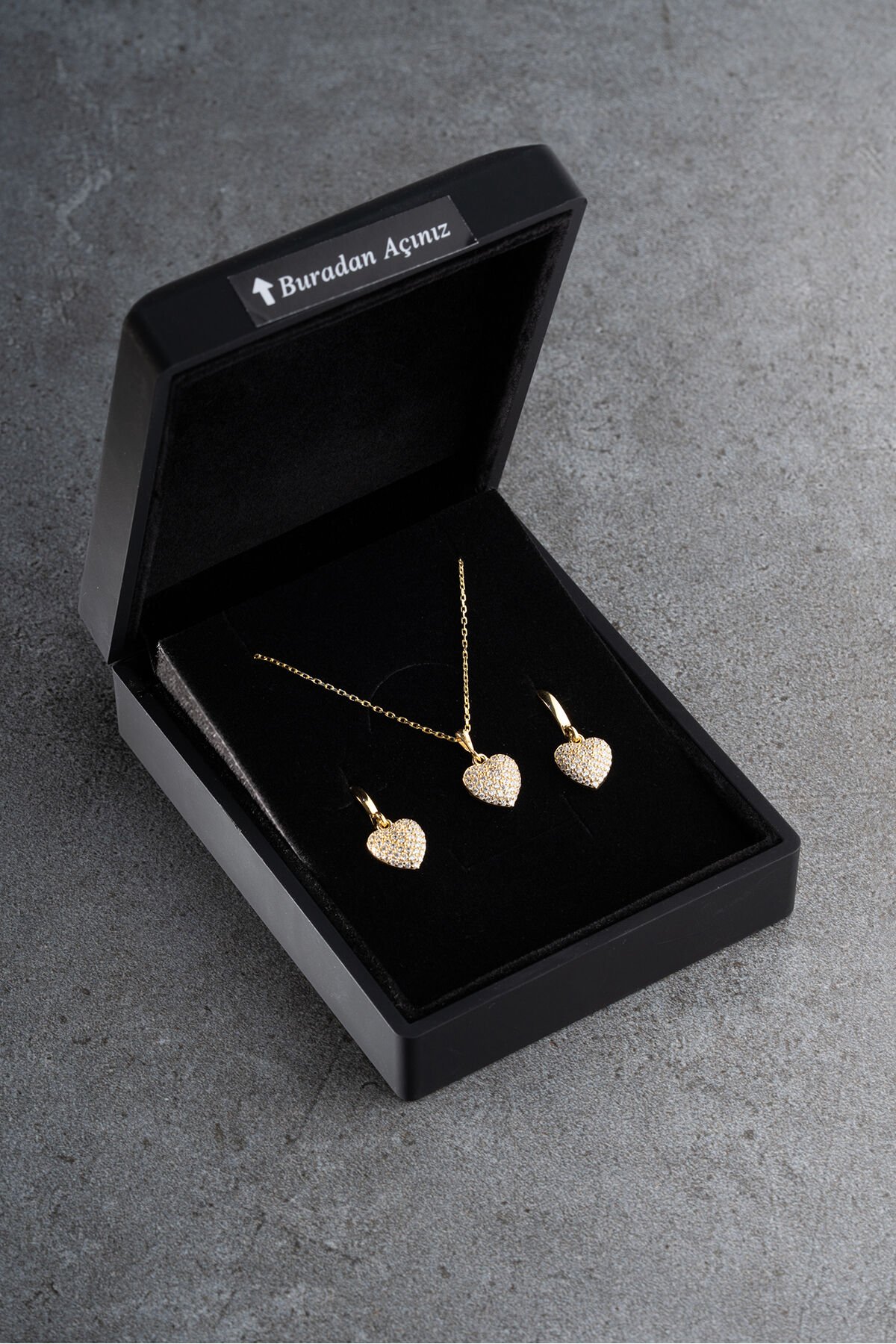 925 Ayar Gümüş Işıklı Kutuda Kalpli Takı Seti