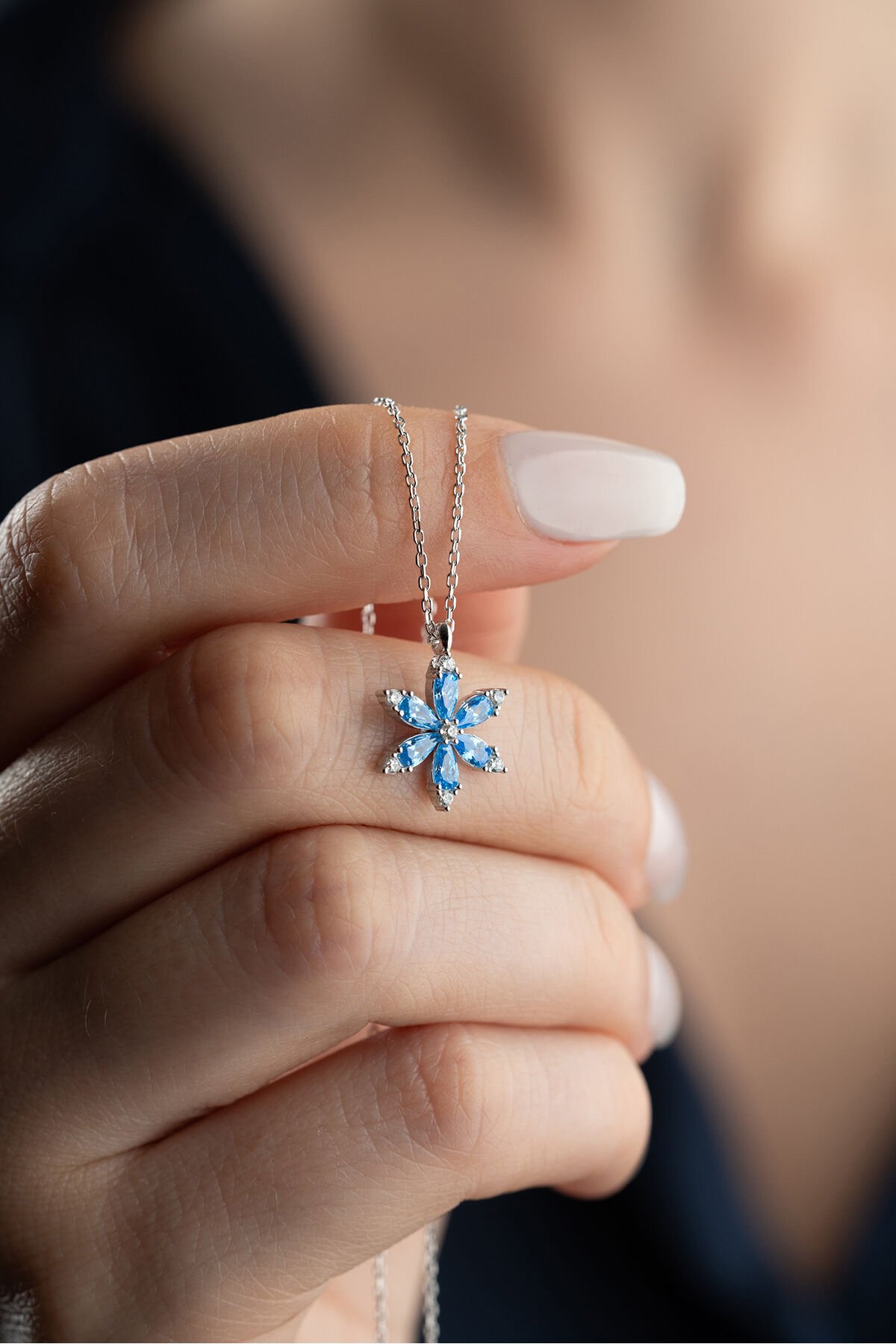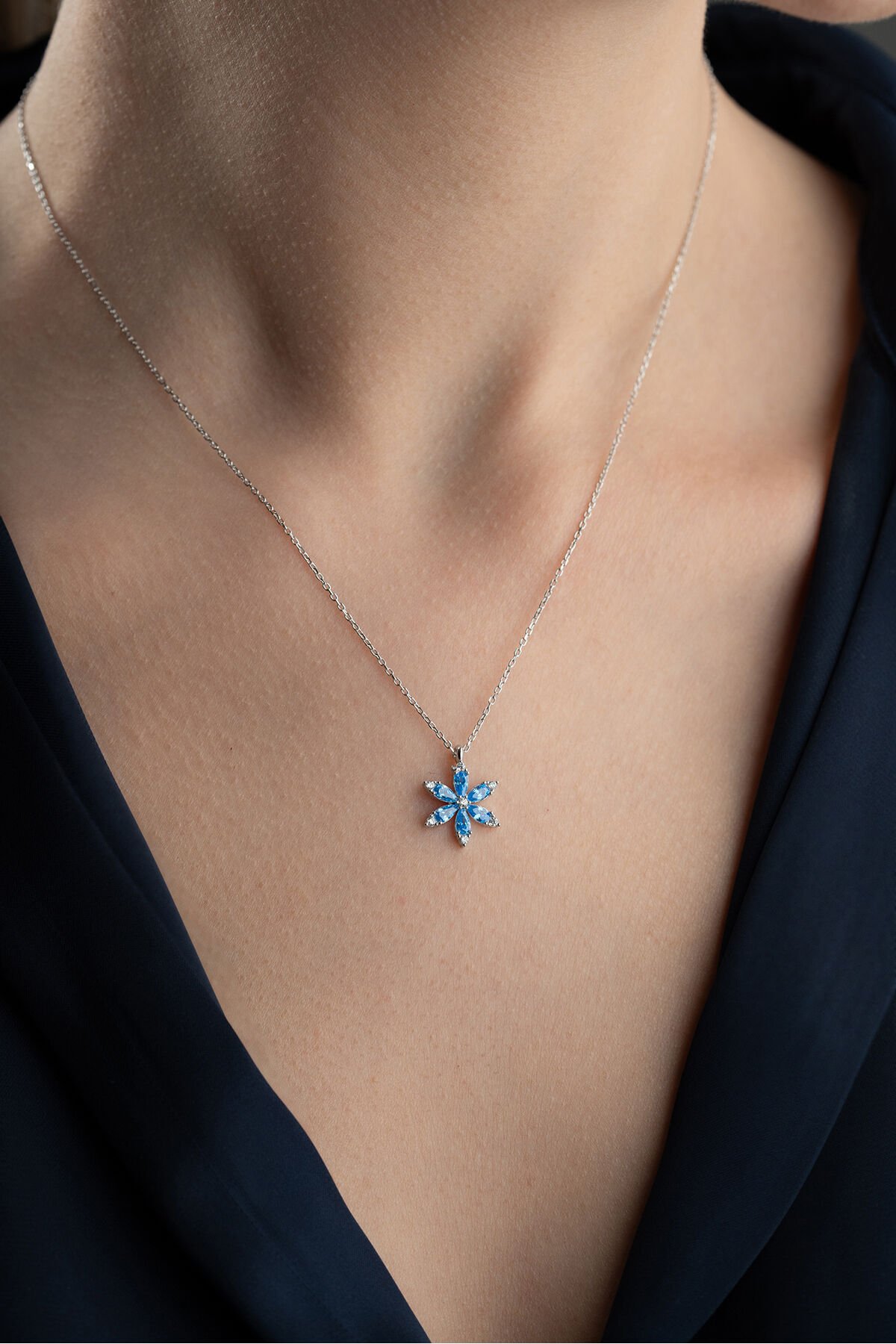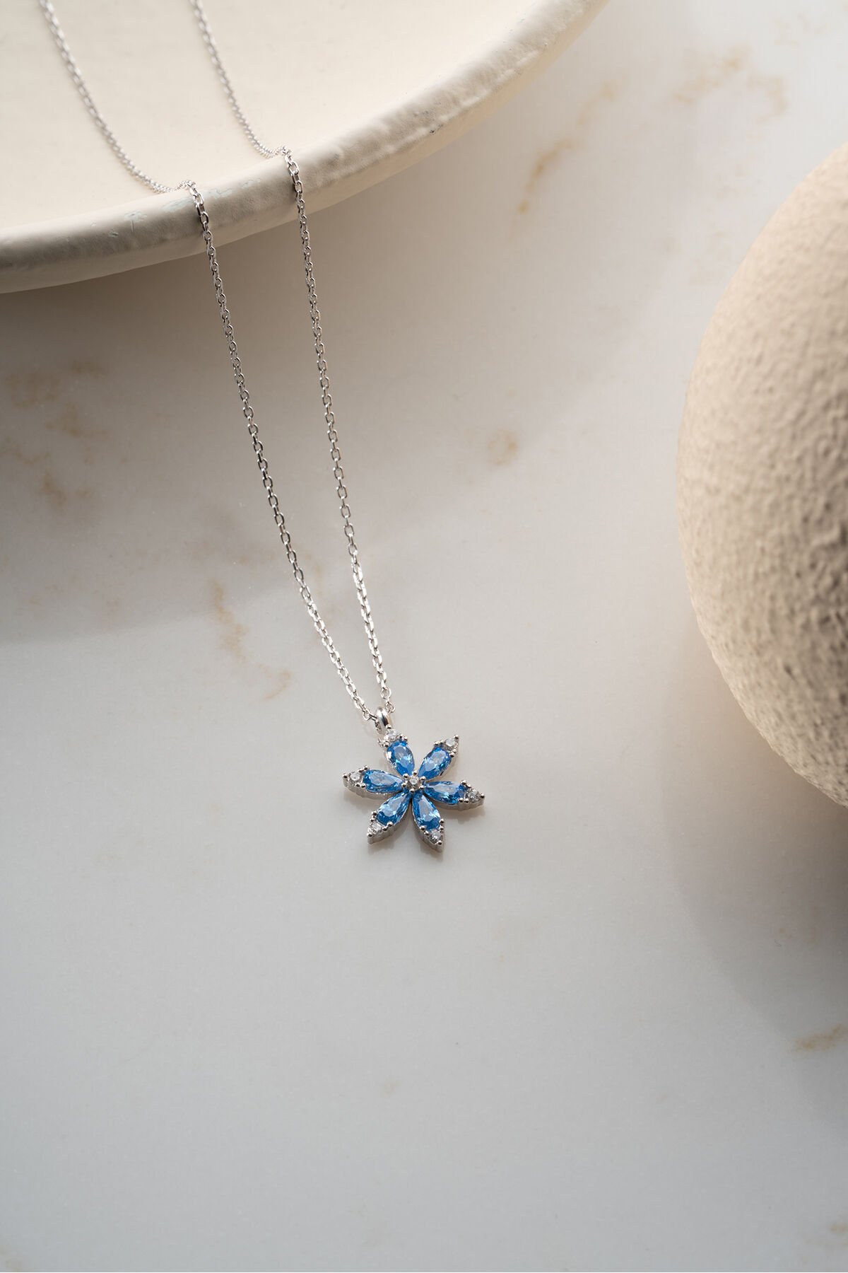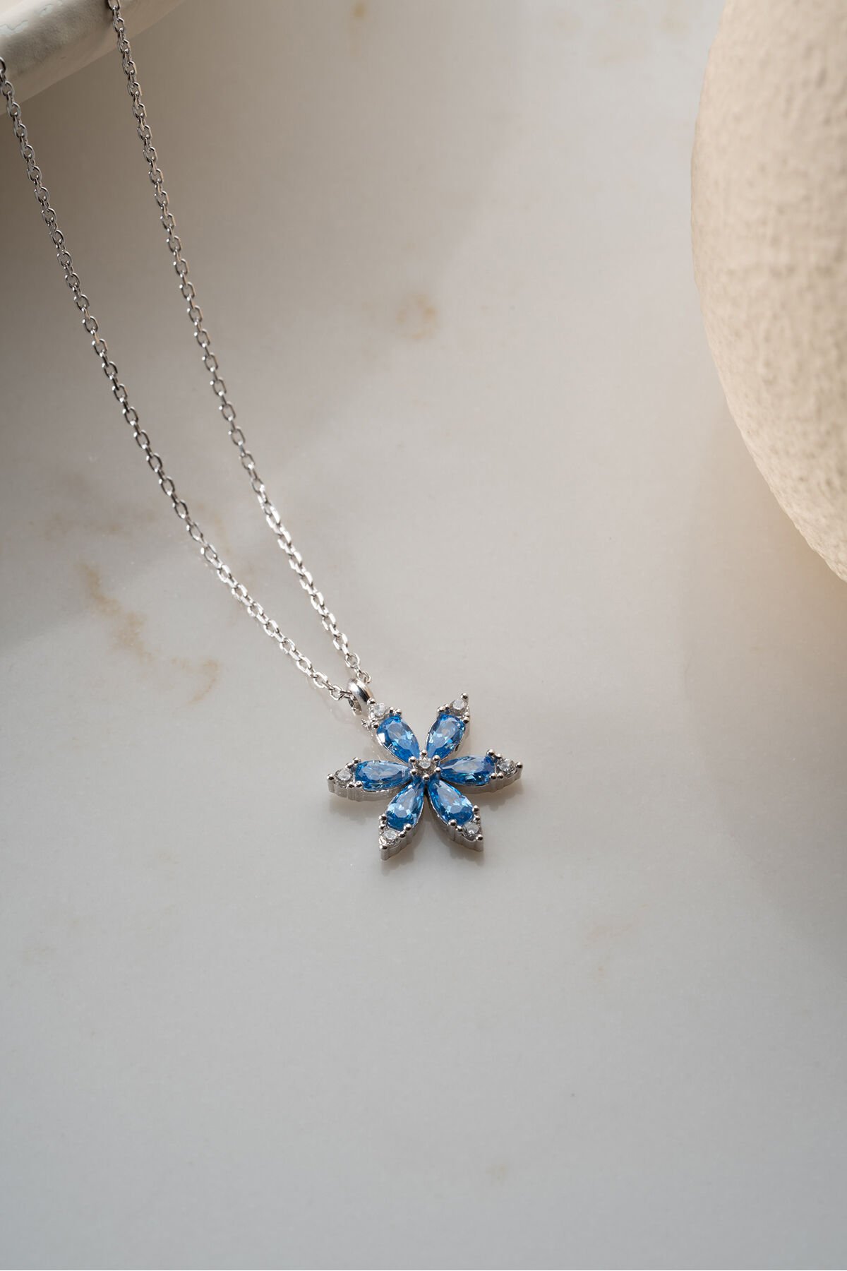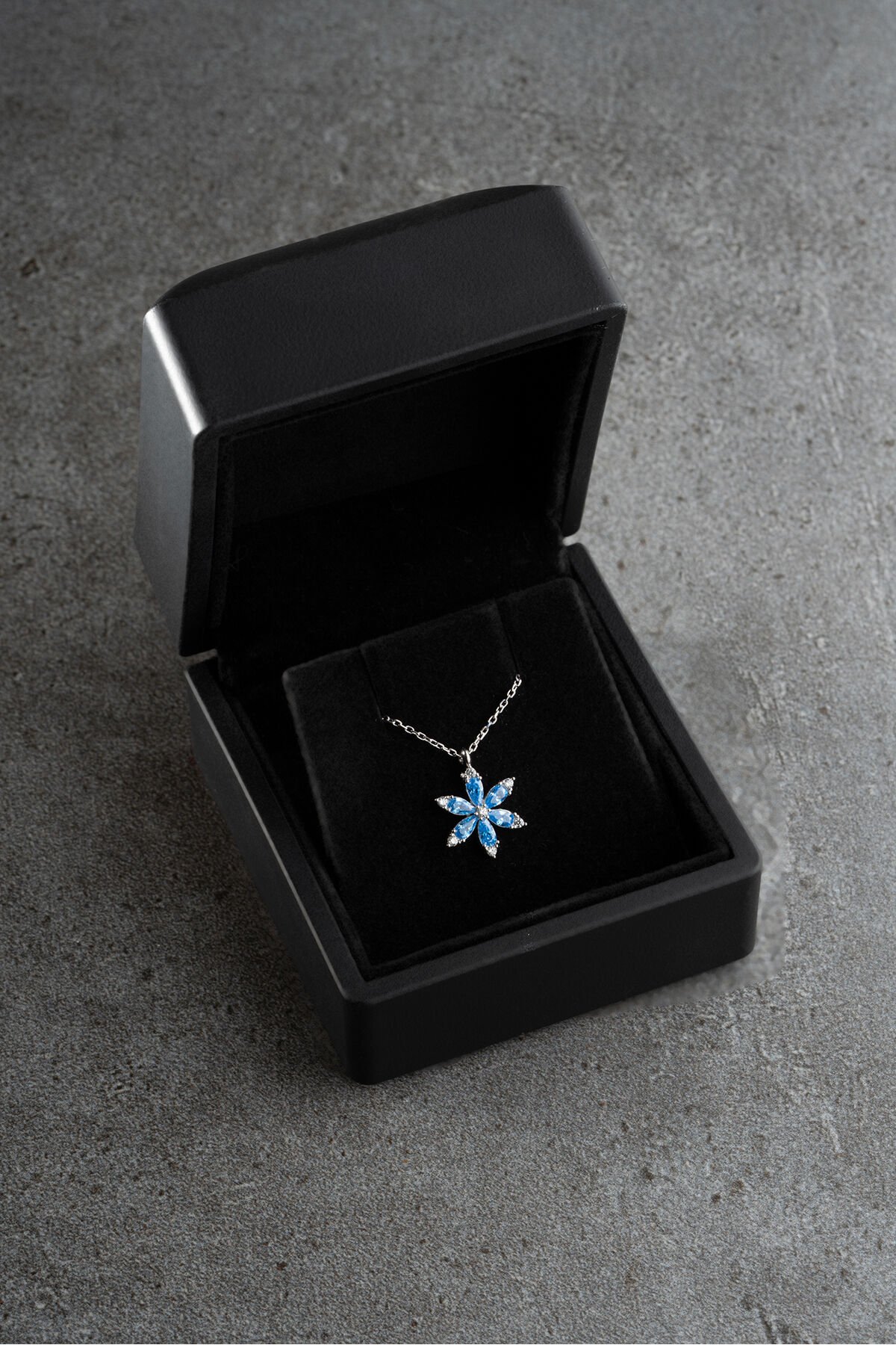 925 Ayar Gümüş Işıklı Kutuda Kamelya Çiçeği Kolye