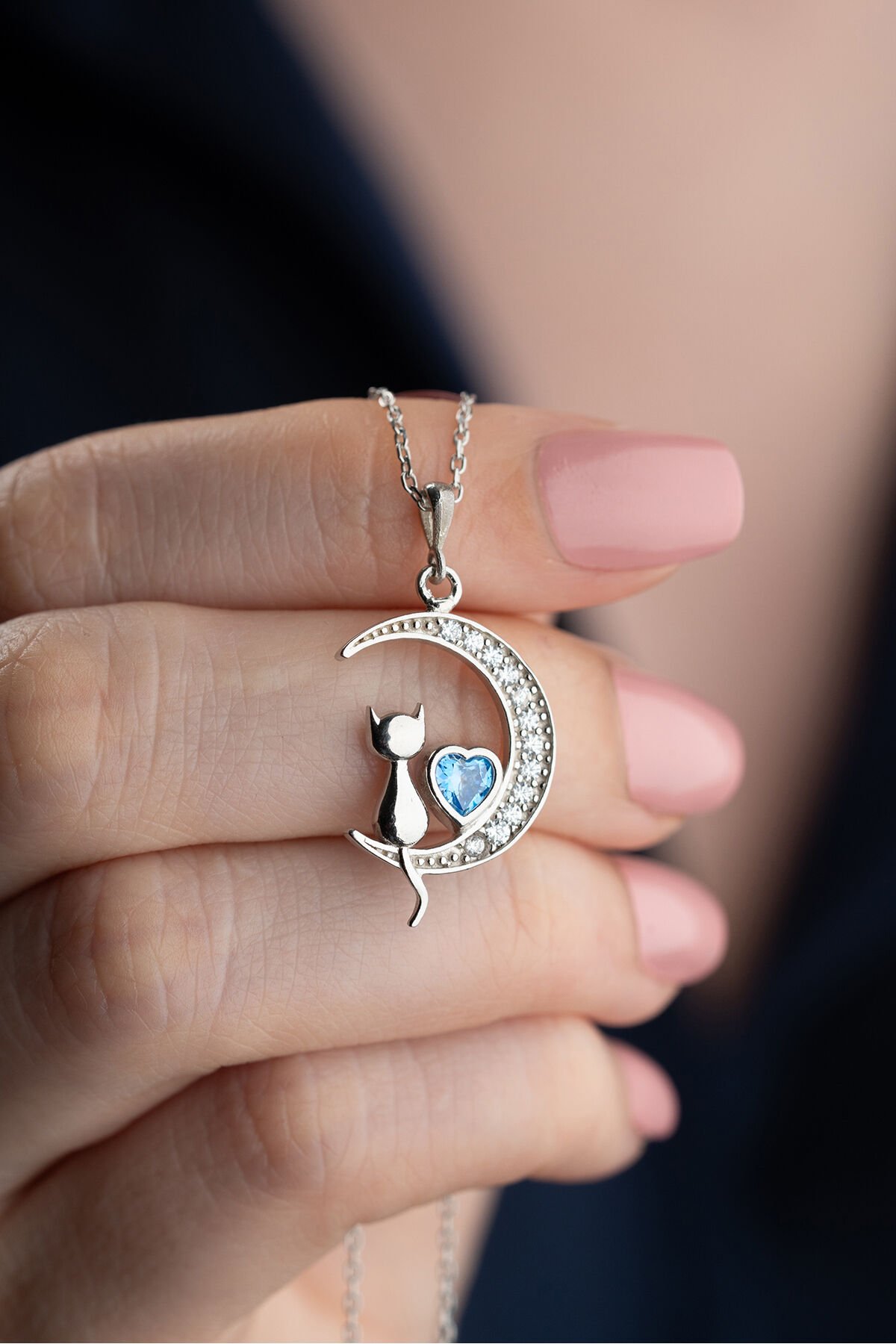 925 Ayar Gümüş Işıklı Kutuda Kedi Kolye