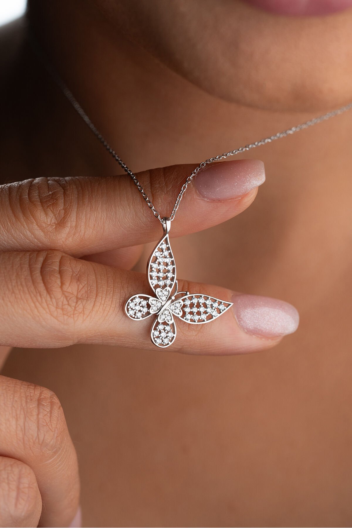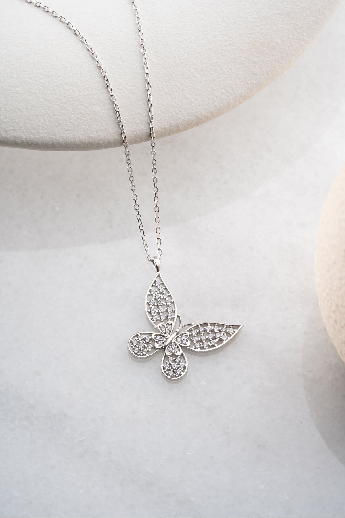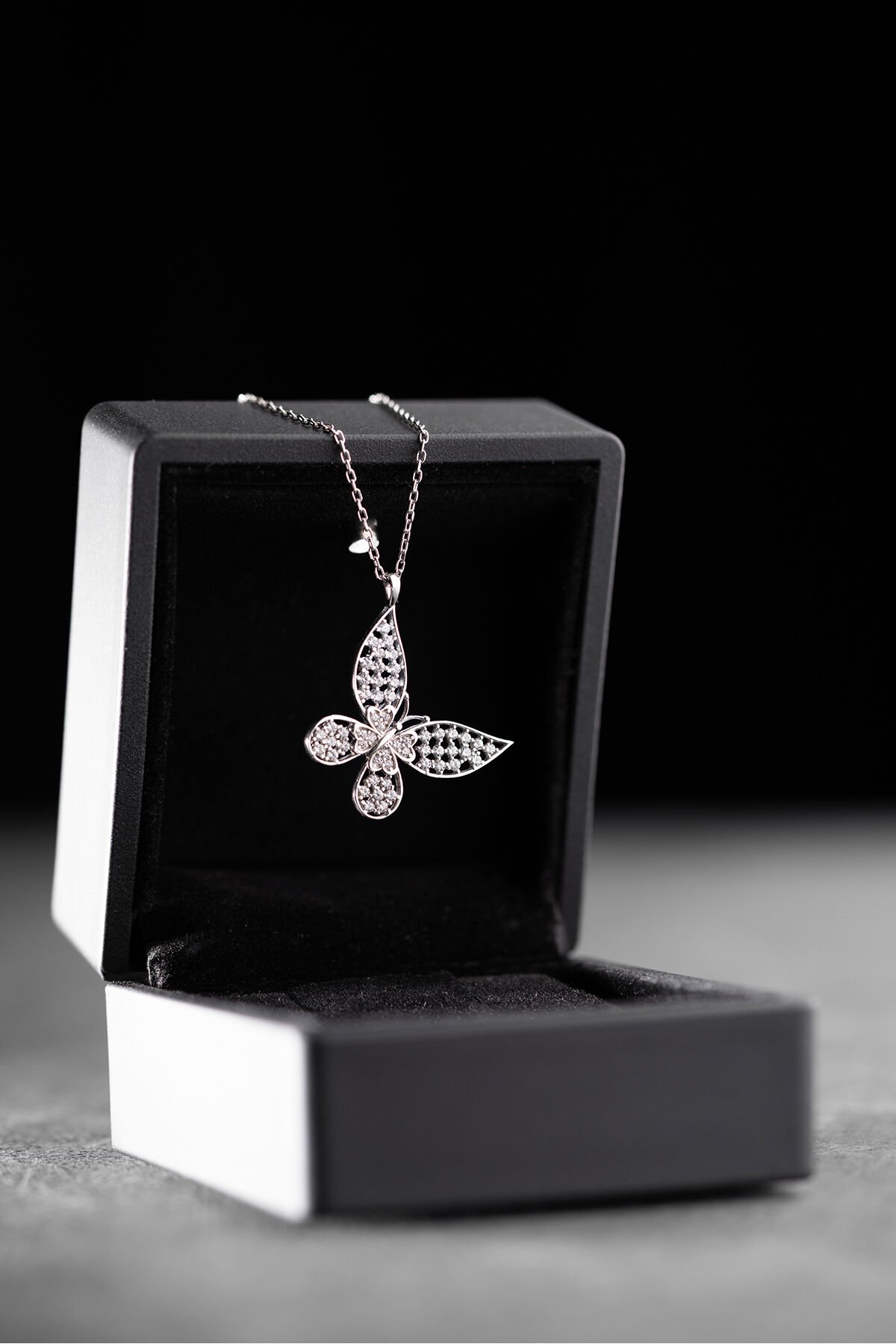 925 Ayar Gümüş Işıklı Kutuda Kelebek Kolye