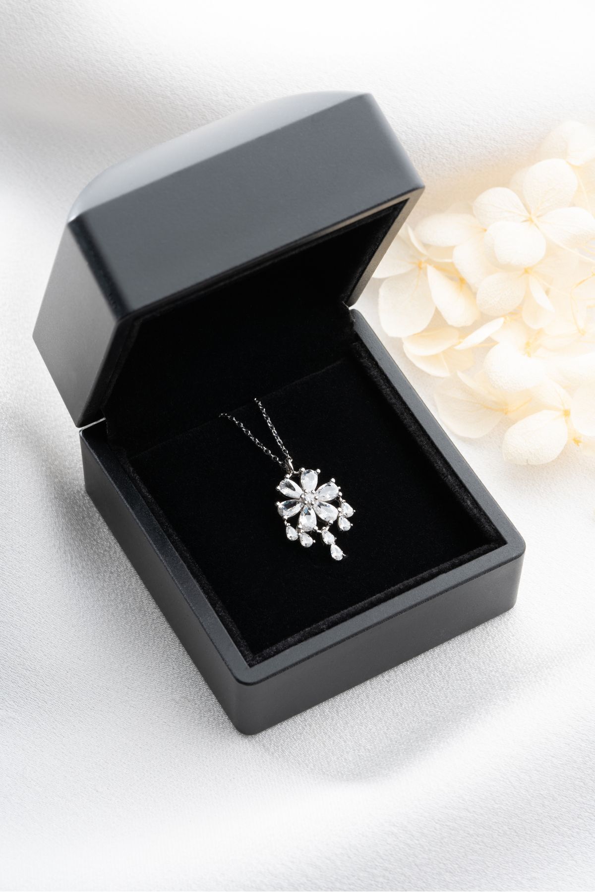 925 Ayar Gümüş Işıklı Kutuda Lotus Çiçeği Kolye