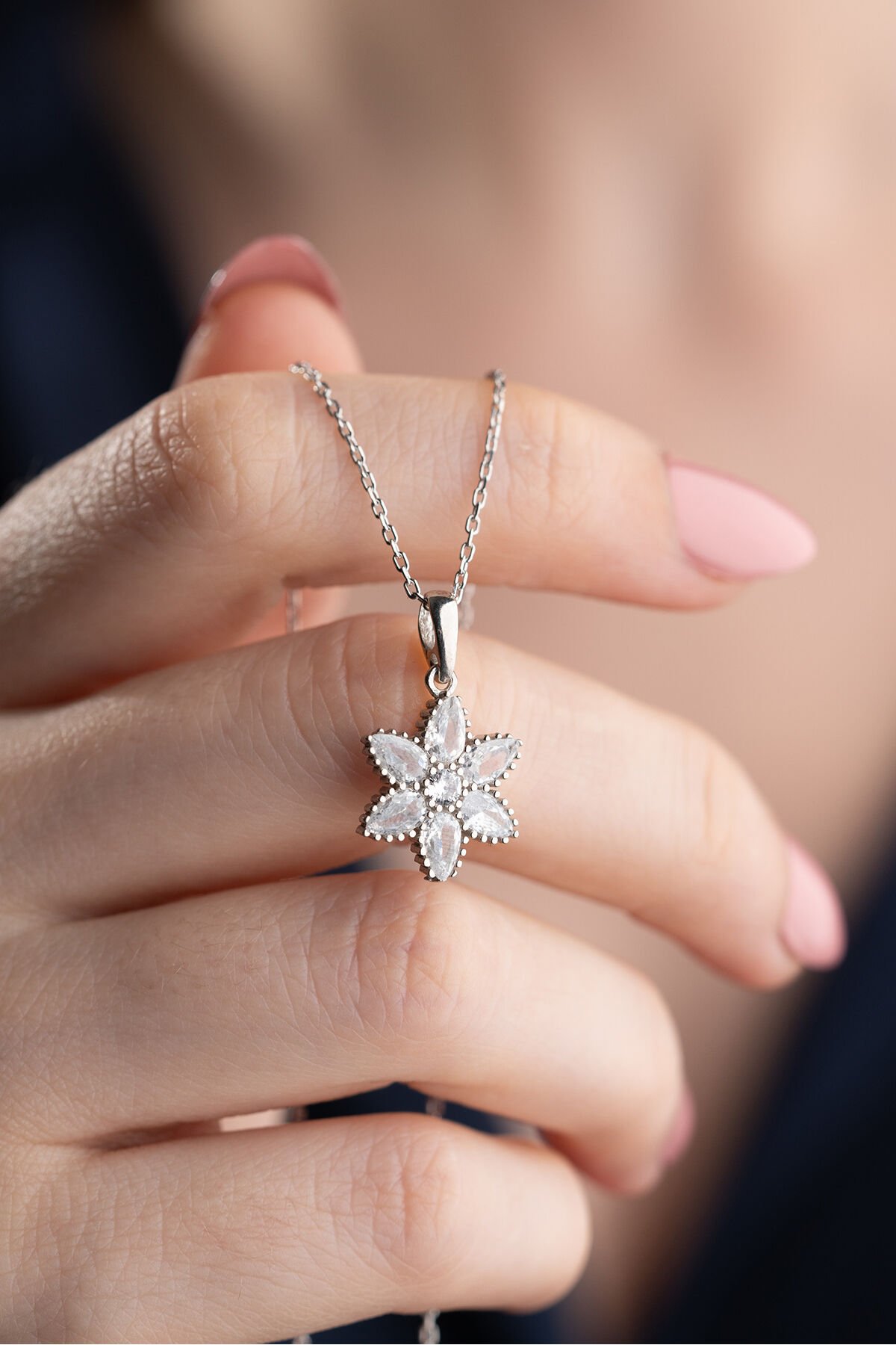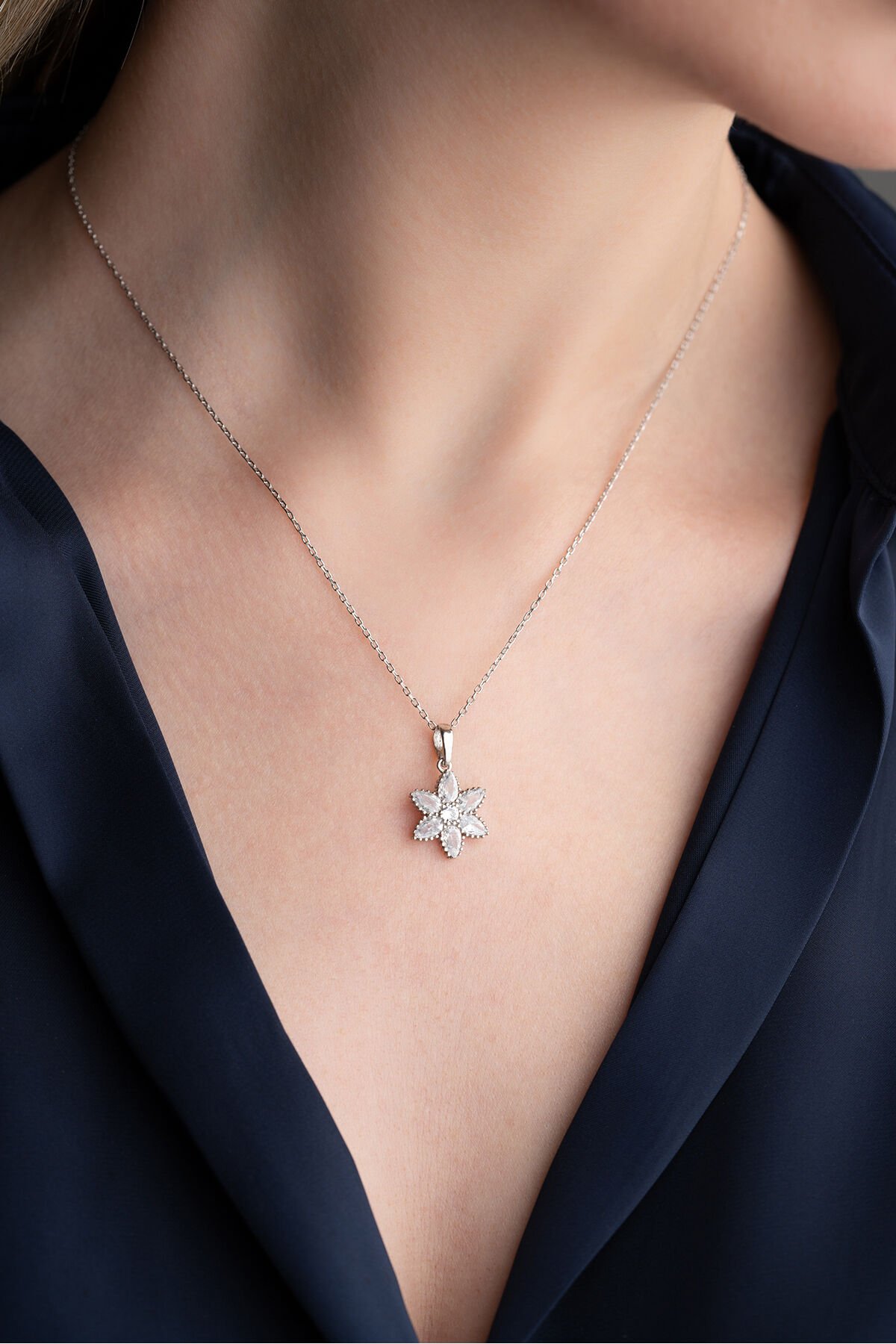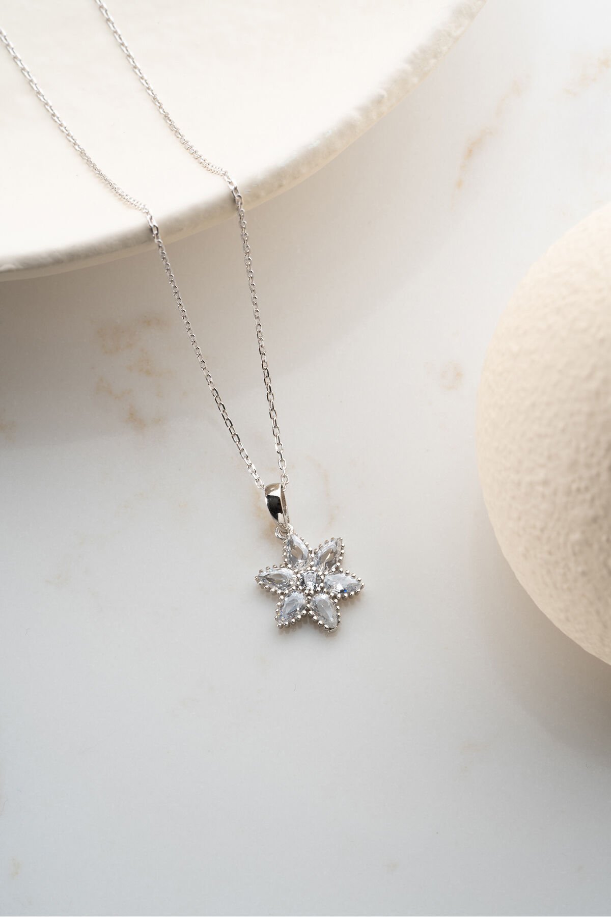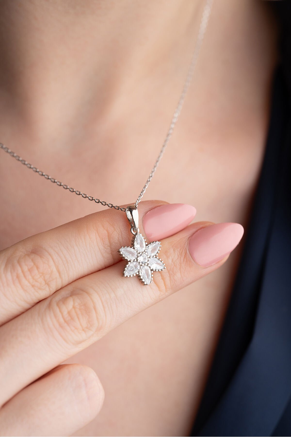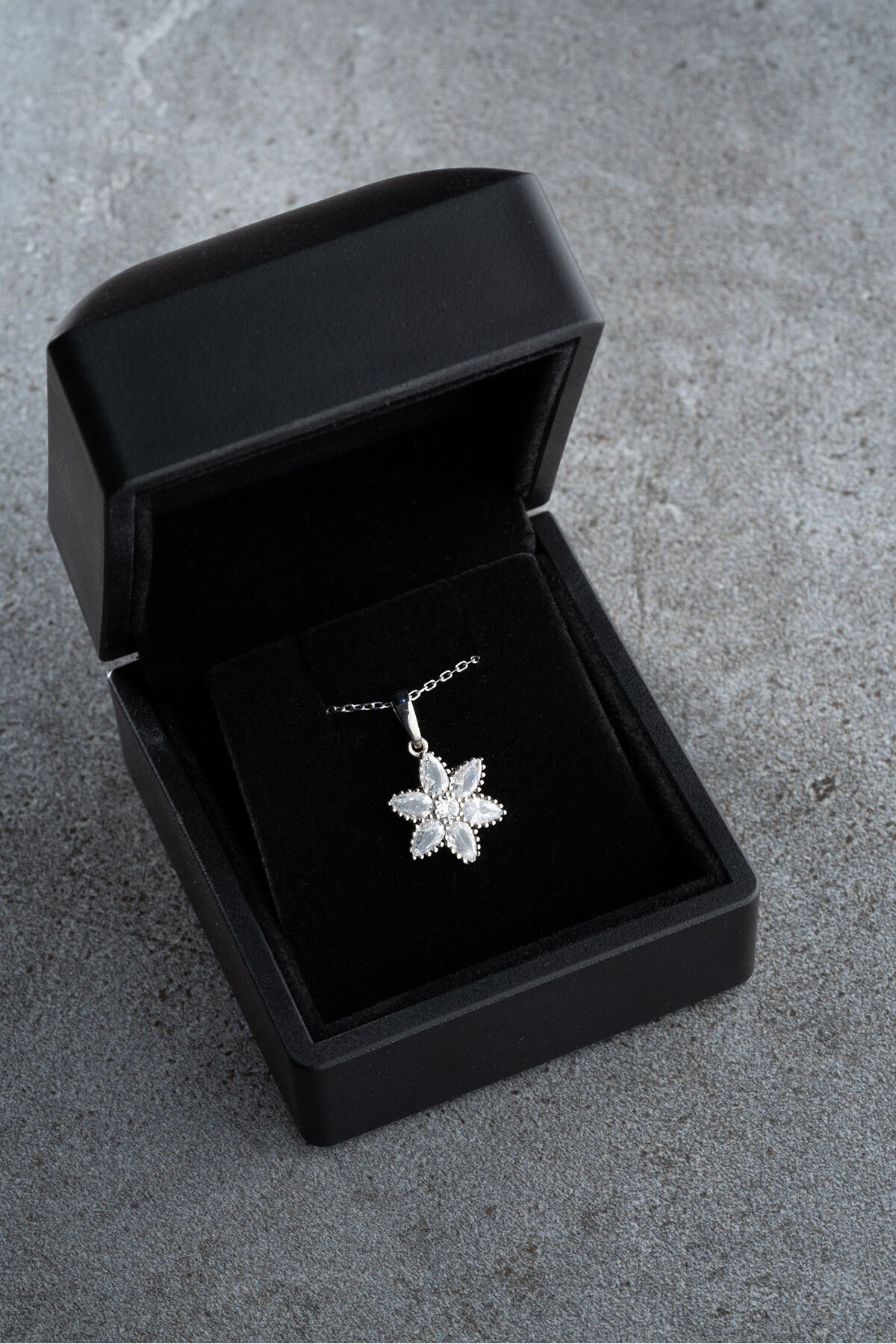 925 Ayar Gümüş Işıklı Kutuda Nergis Çiçeği Kolye