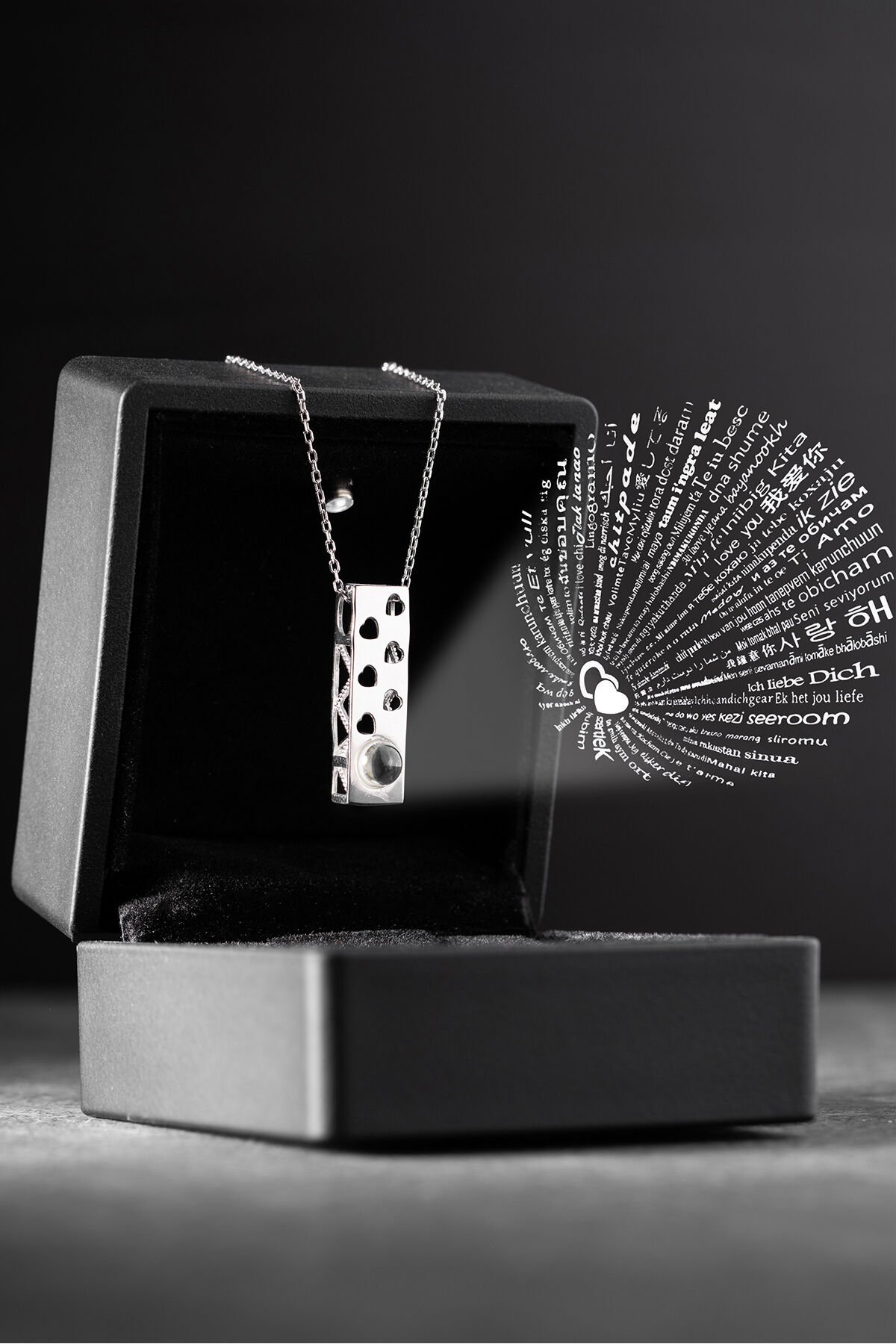 925 Ayar Gümüş Işıklı Kutuda Özel Tasarım Model 100 Dilde Seviyor Kolye