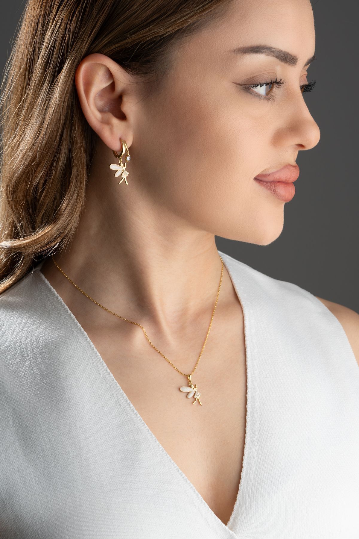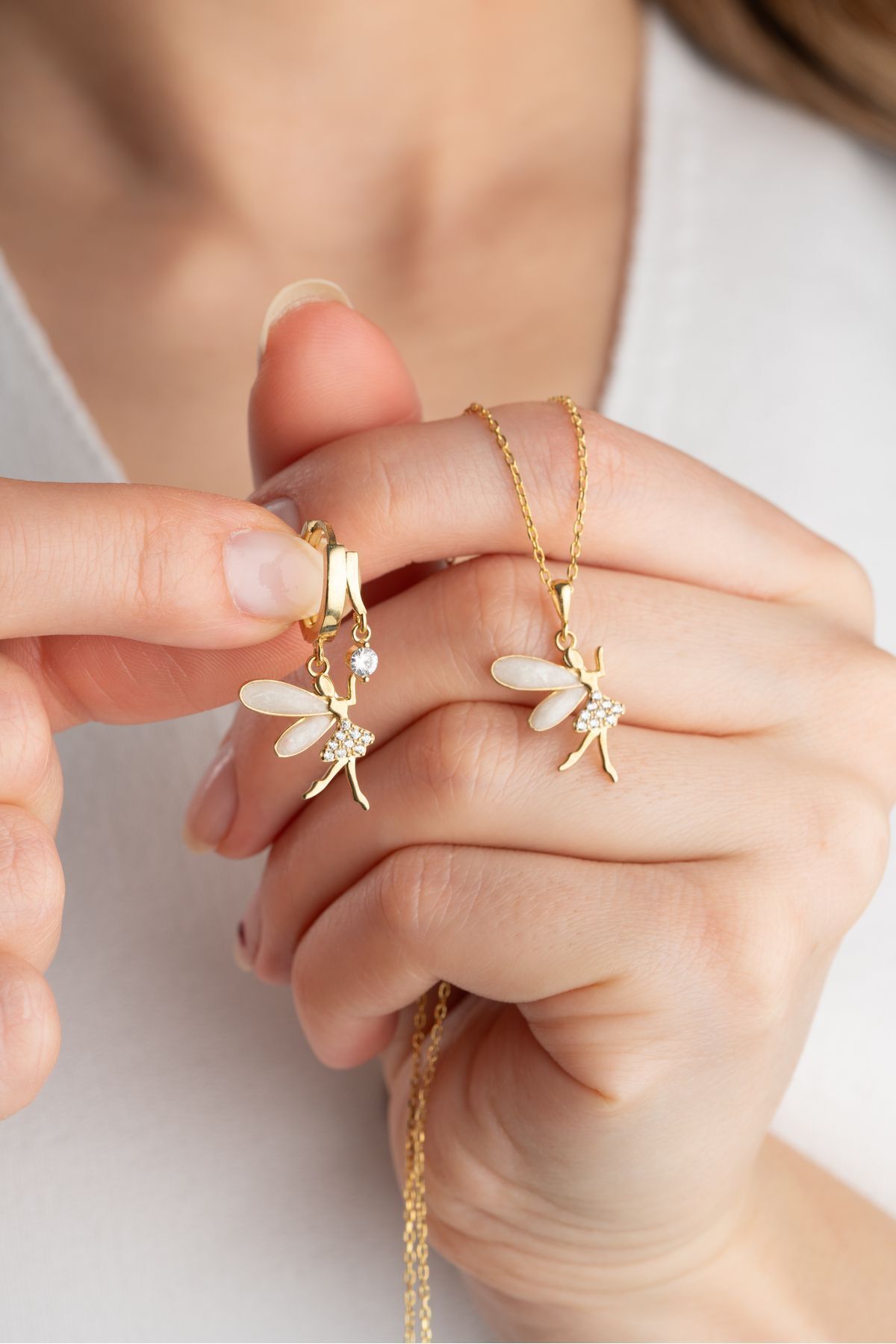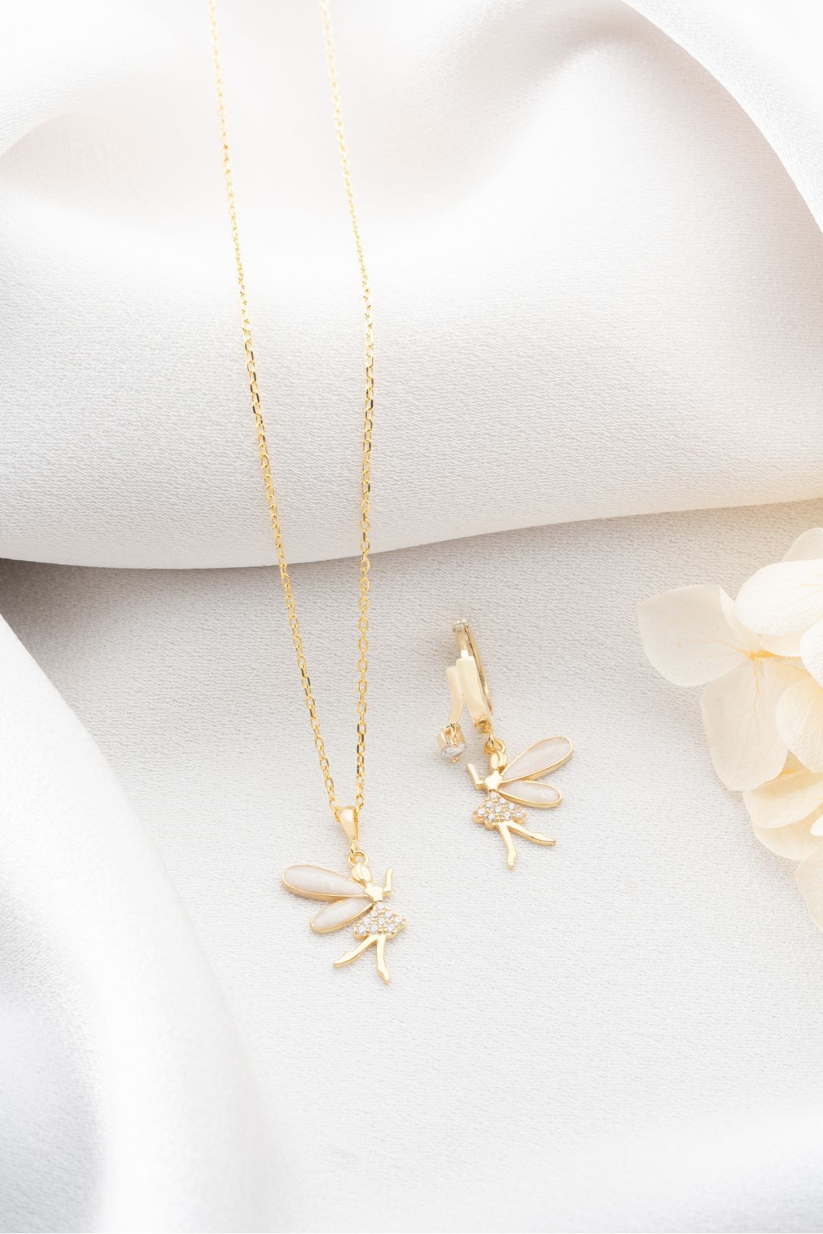 925 Ayar Gümüş Işıklı Kutuda Peri Kolye Küpe Seti