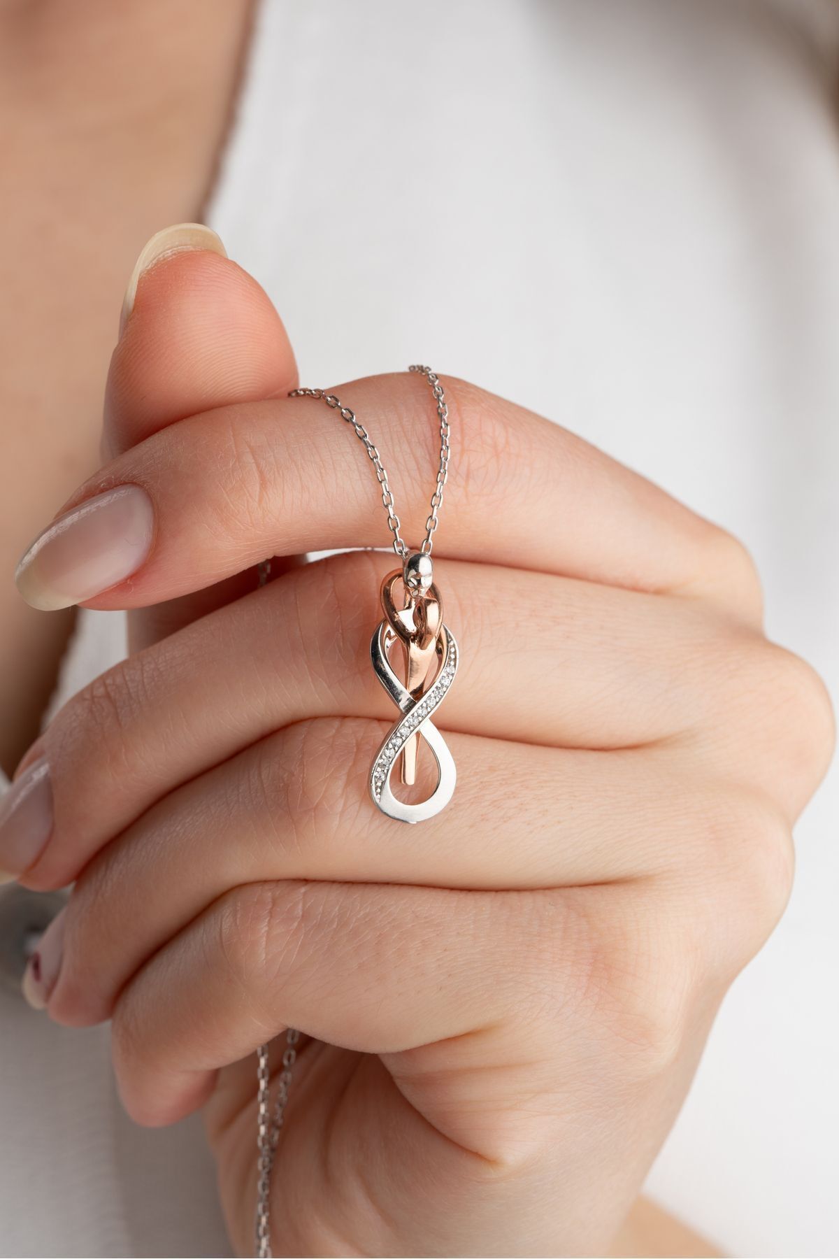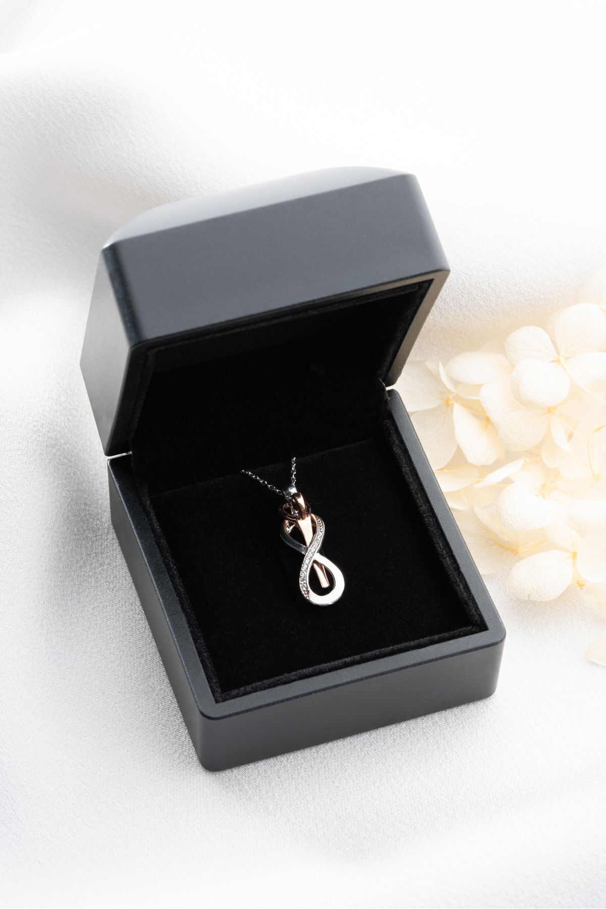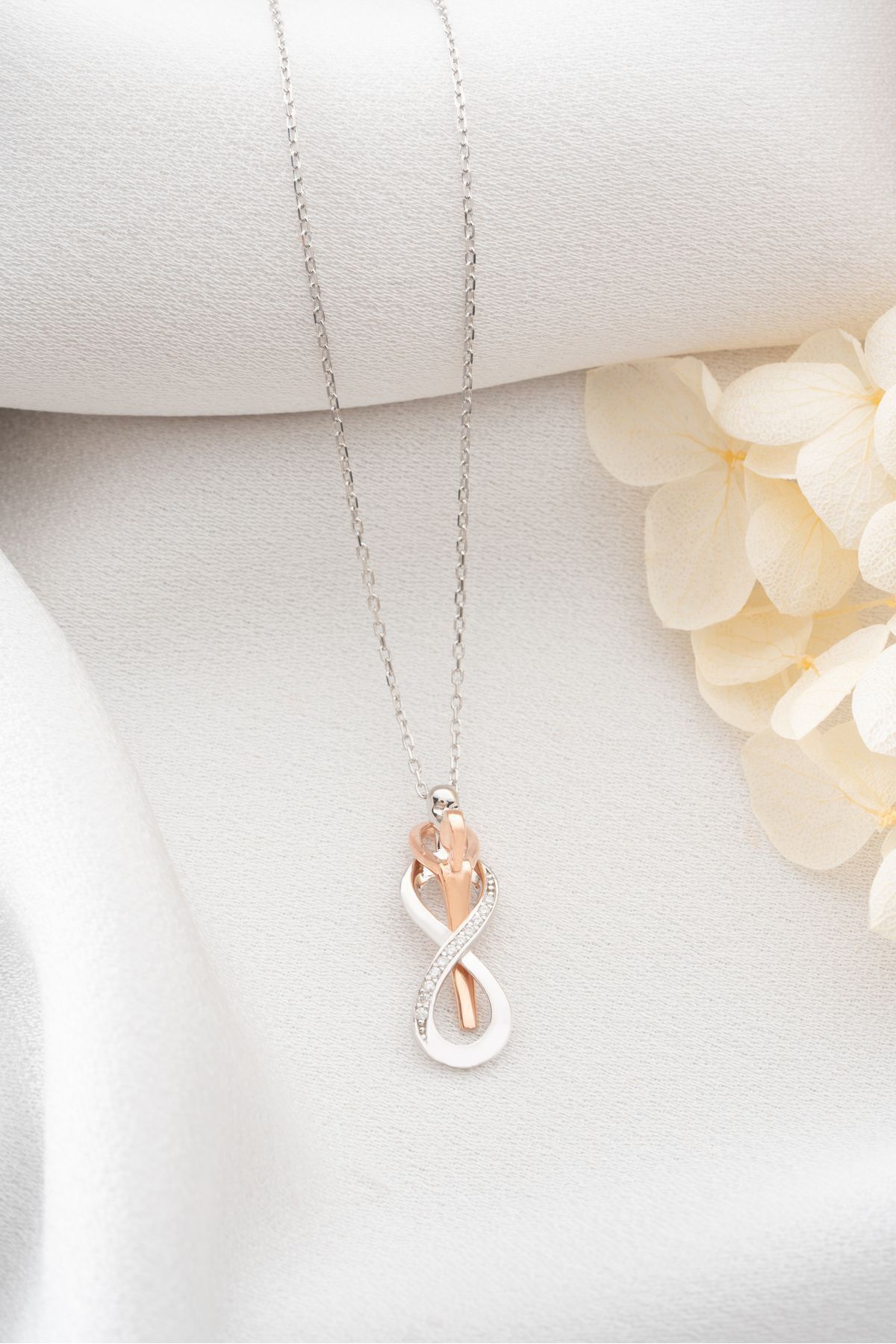 925 Ayar Gümüş Işıklı Kutuda Sarılan Çift Kolye