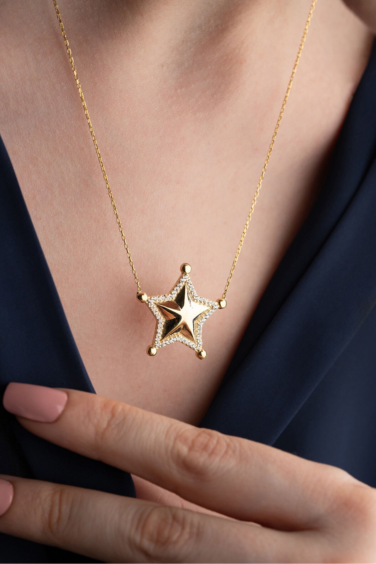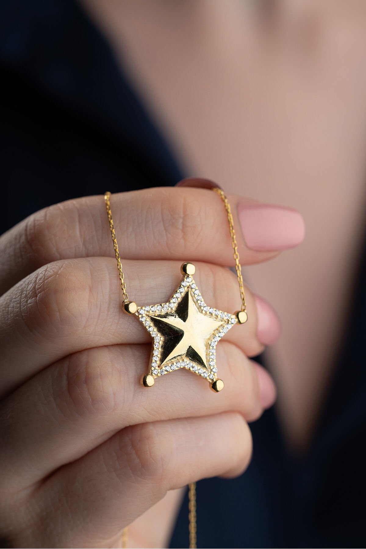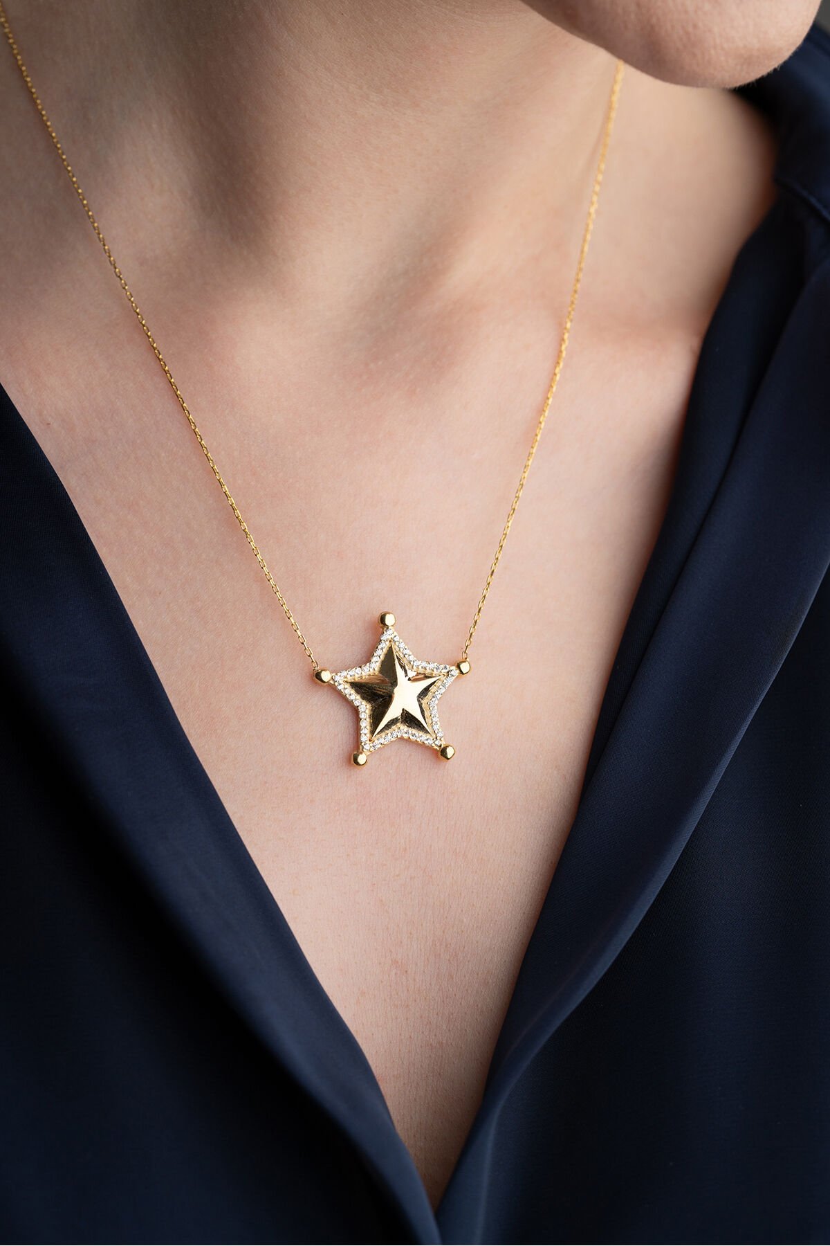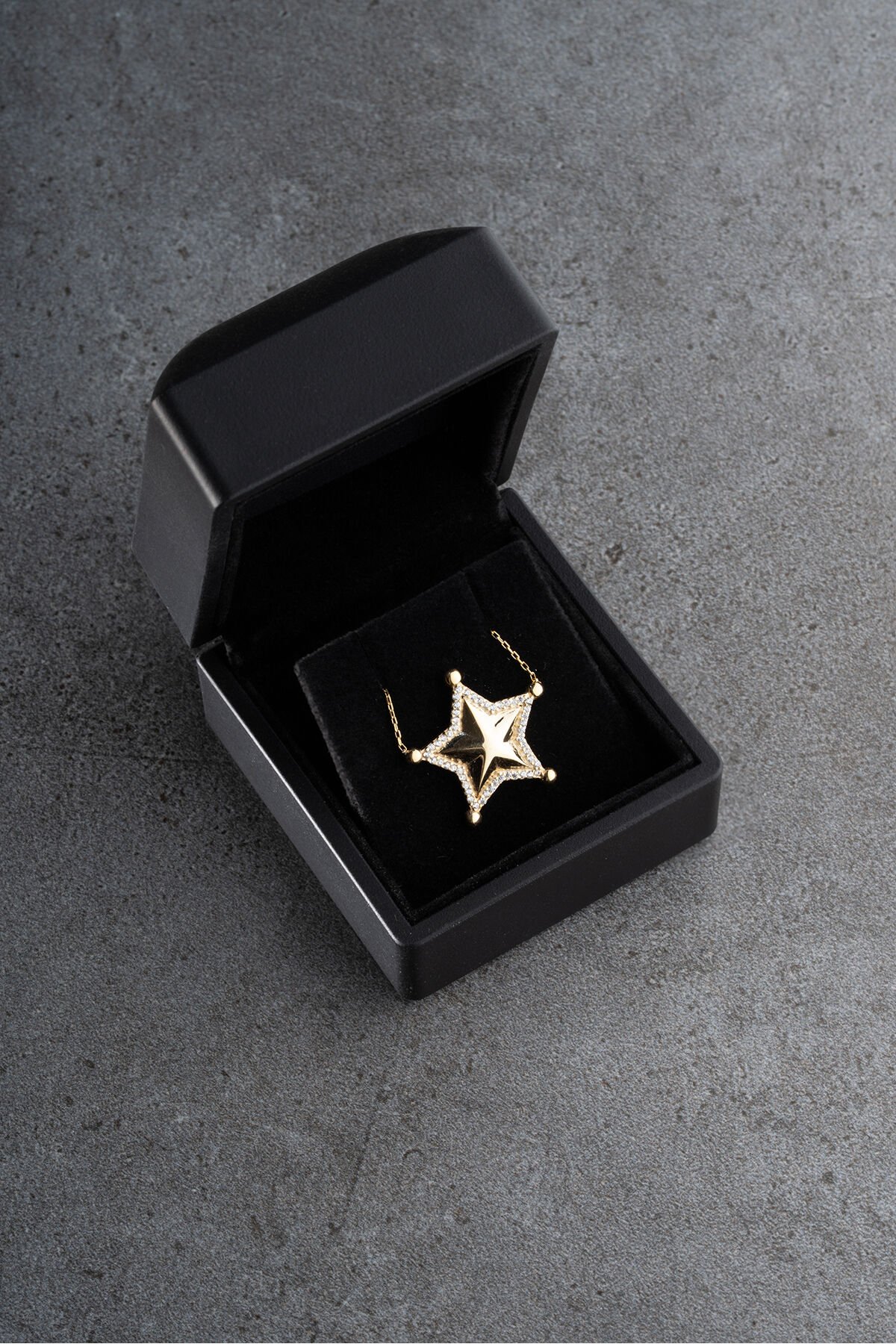 925 Ayar Gümüş Işıklı Kutuda Yıldız Model Kolye