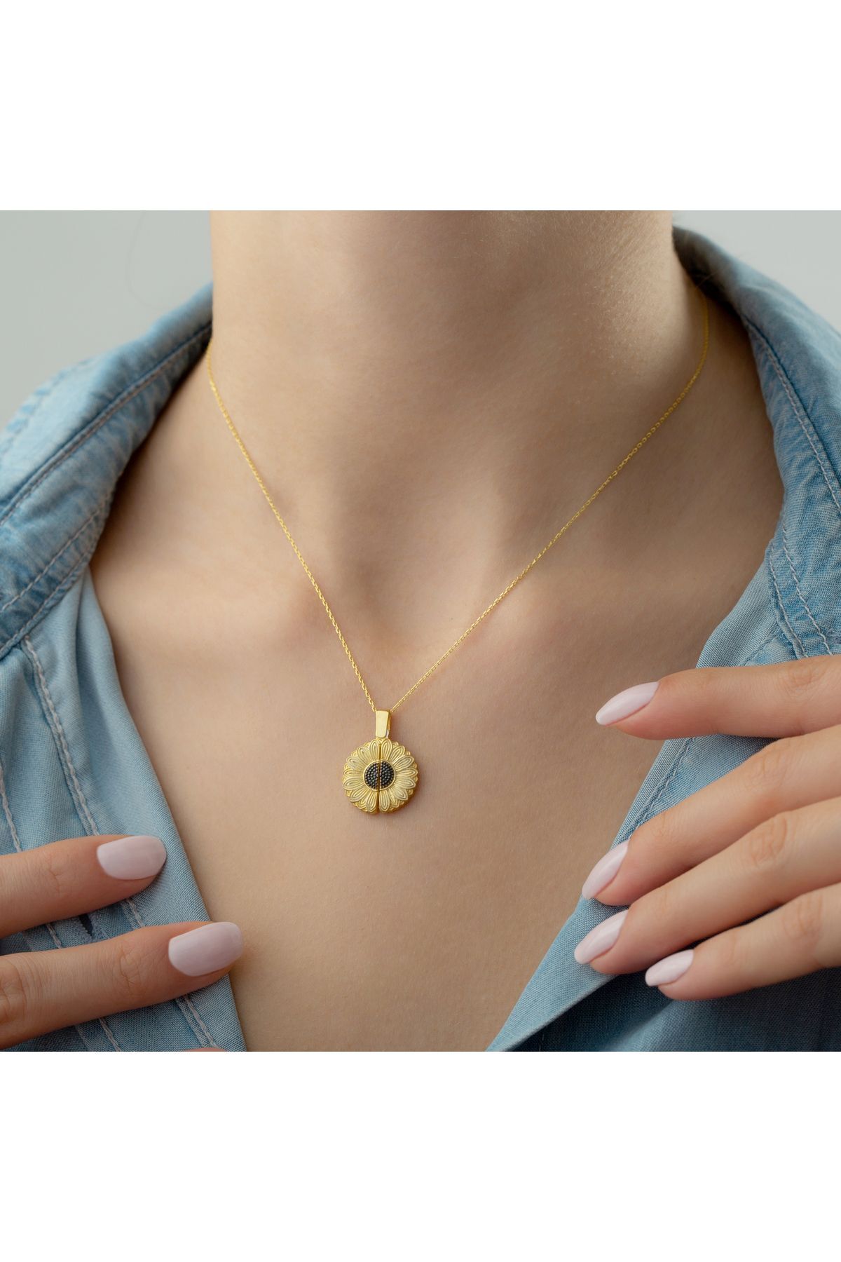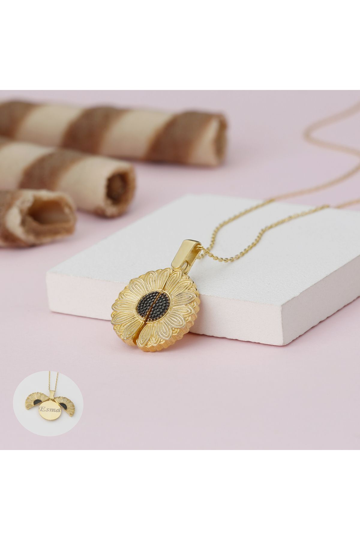 925 Ayar Gümüş Isimli Açılan Ay Çiçeği Kolye