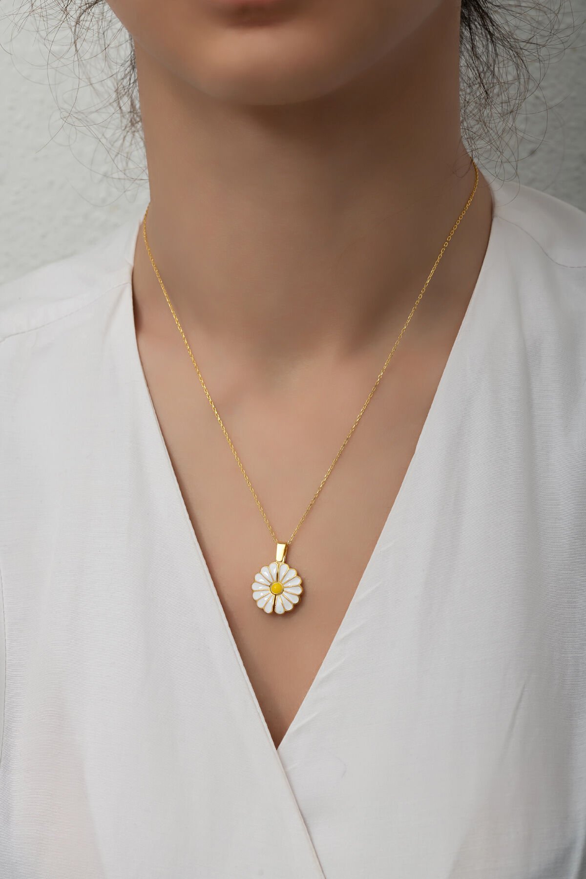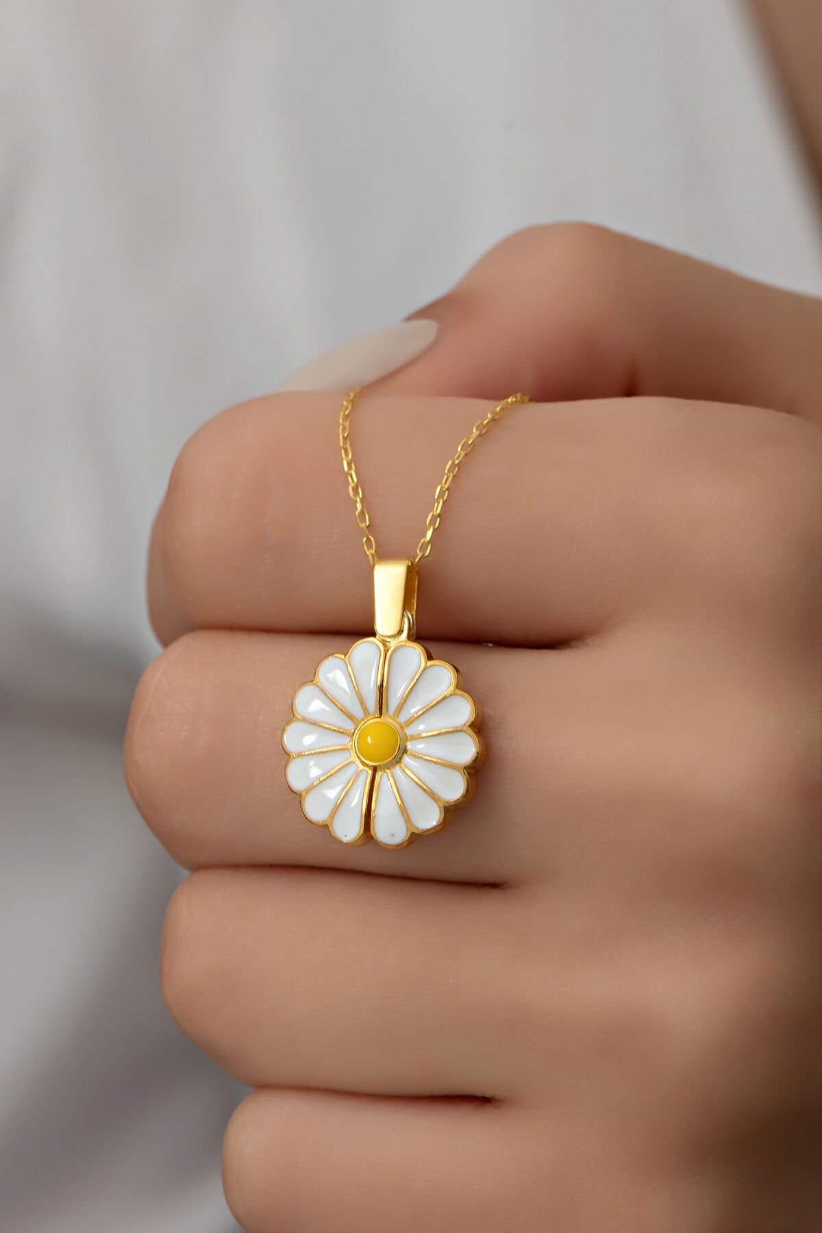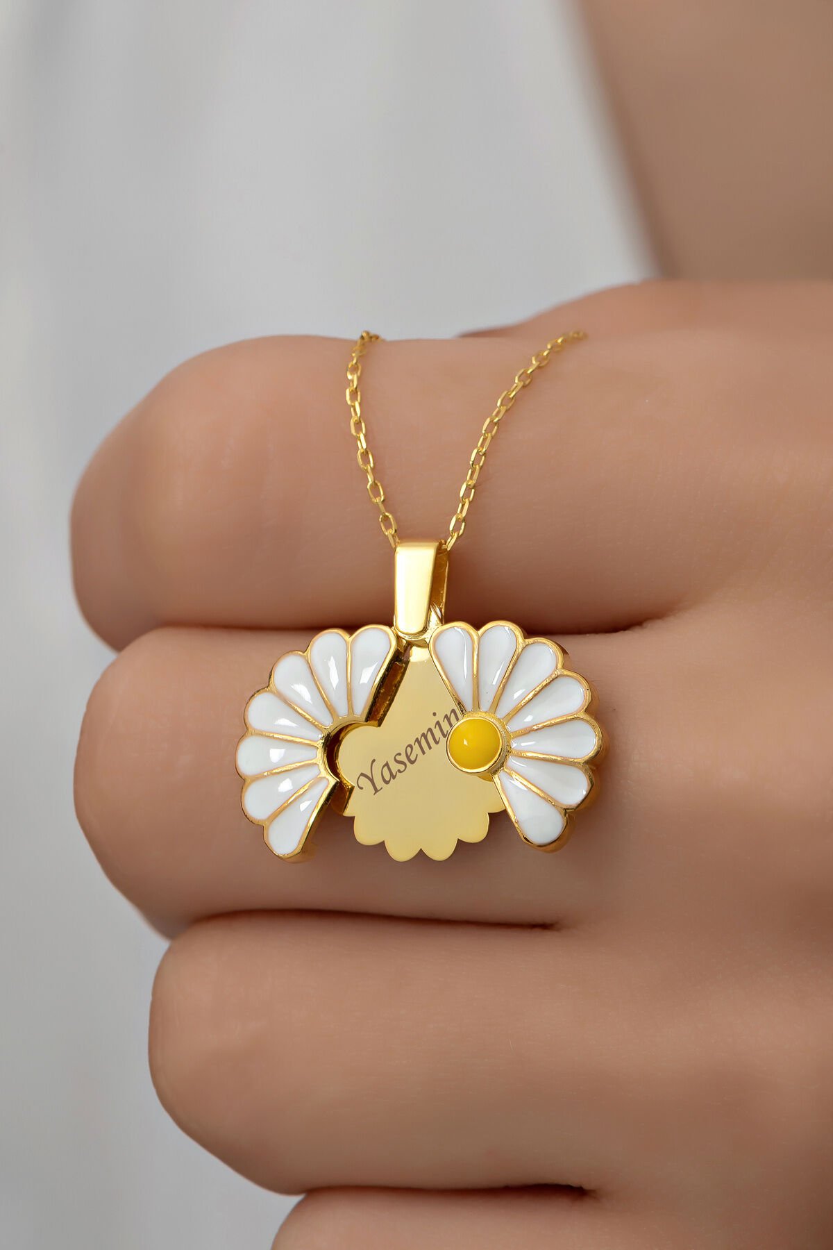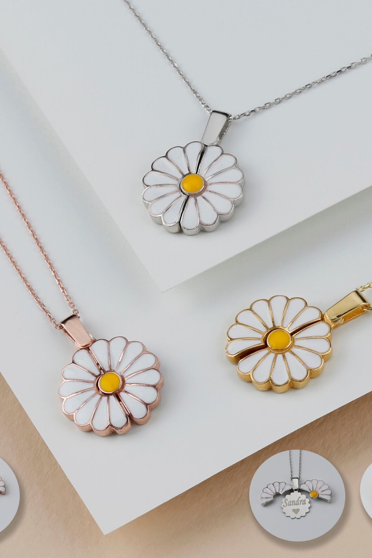 925 Ayar Gümüş Isimli Açılan Papatya Kolye