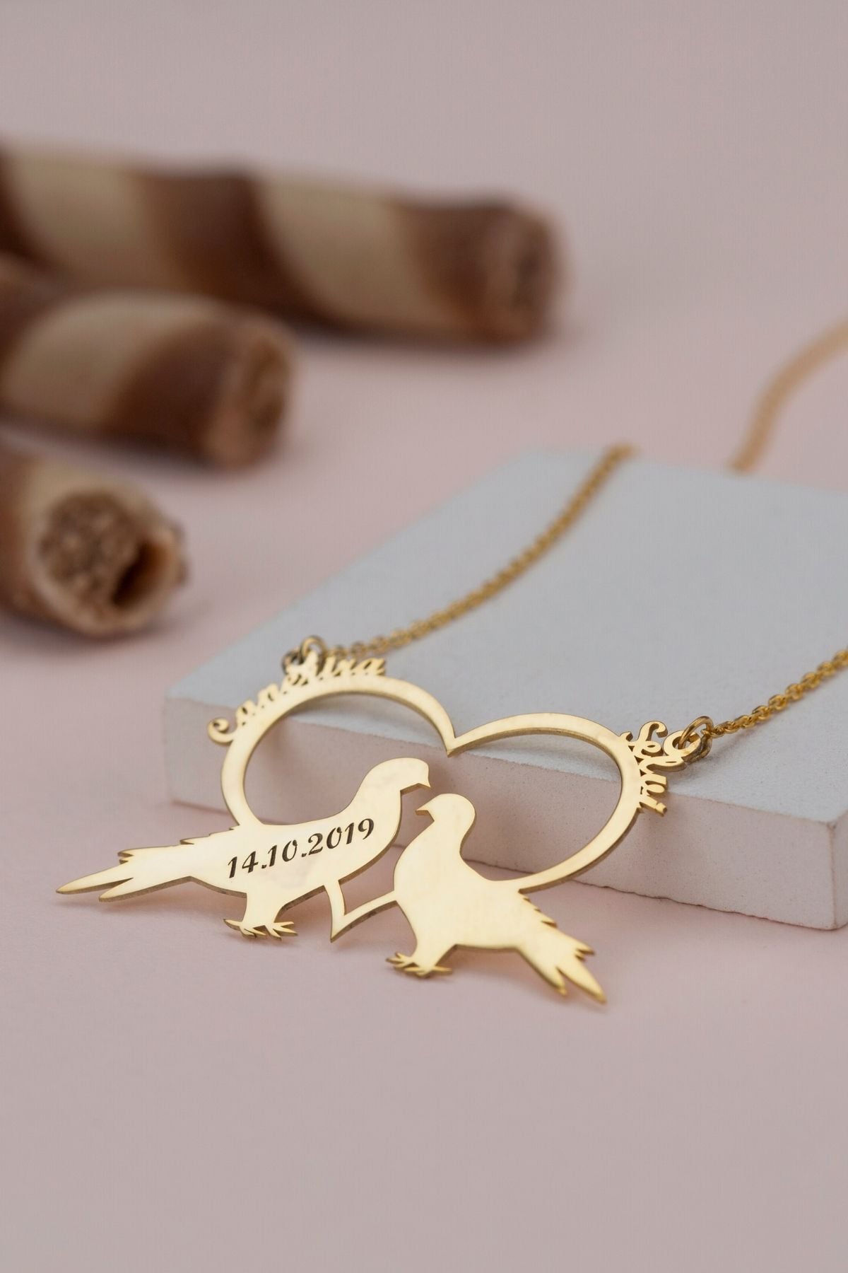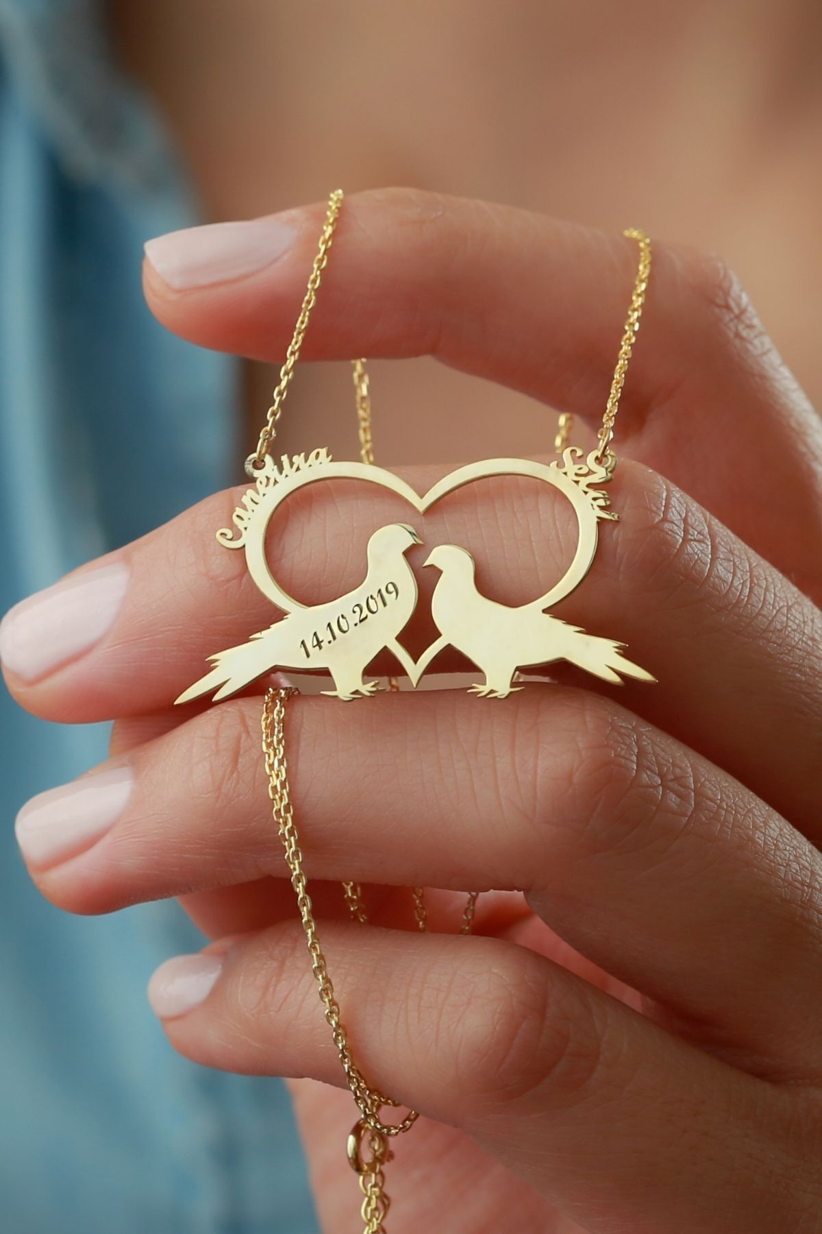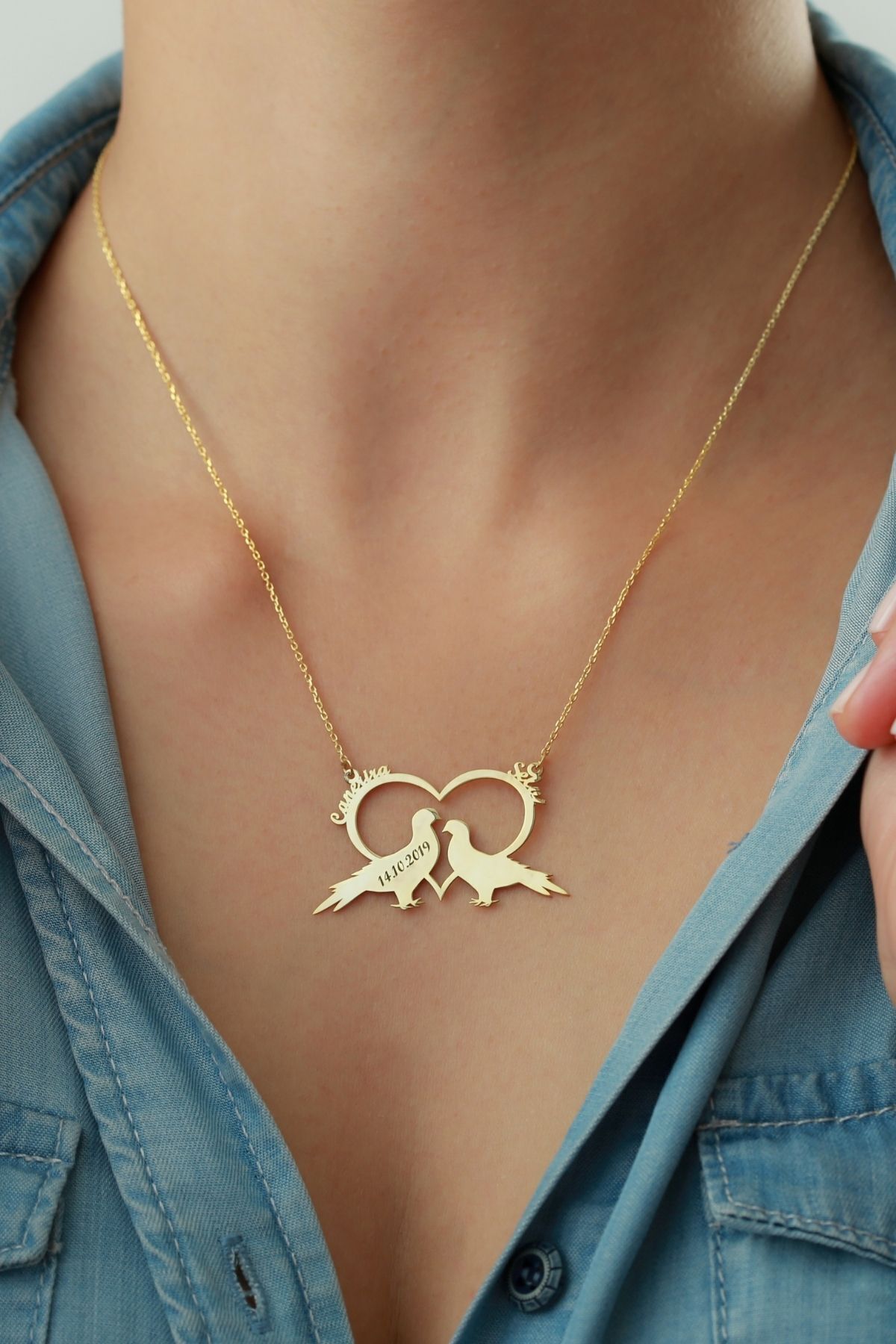925 Ayar Gümüş Isimli Aşk Kuşları Kolye