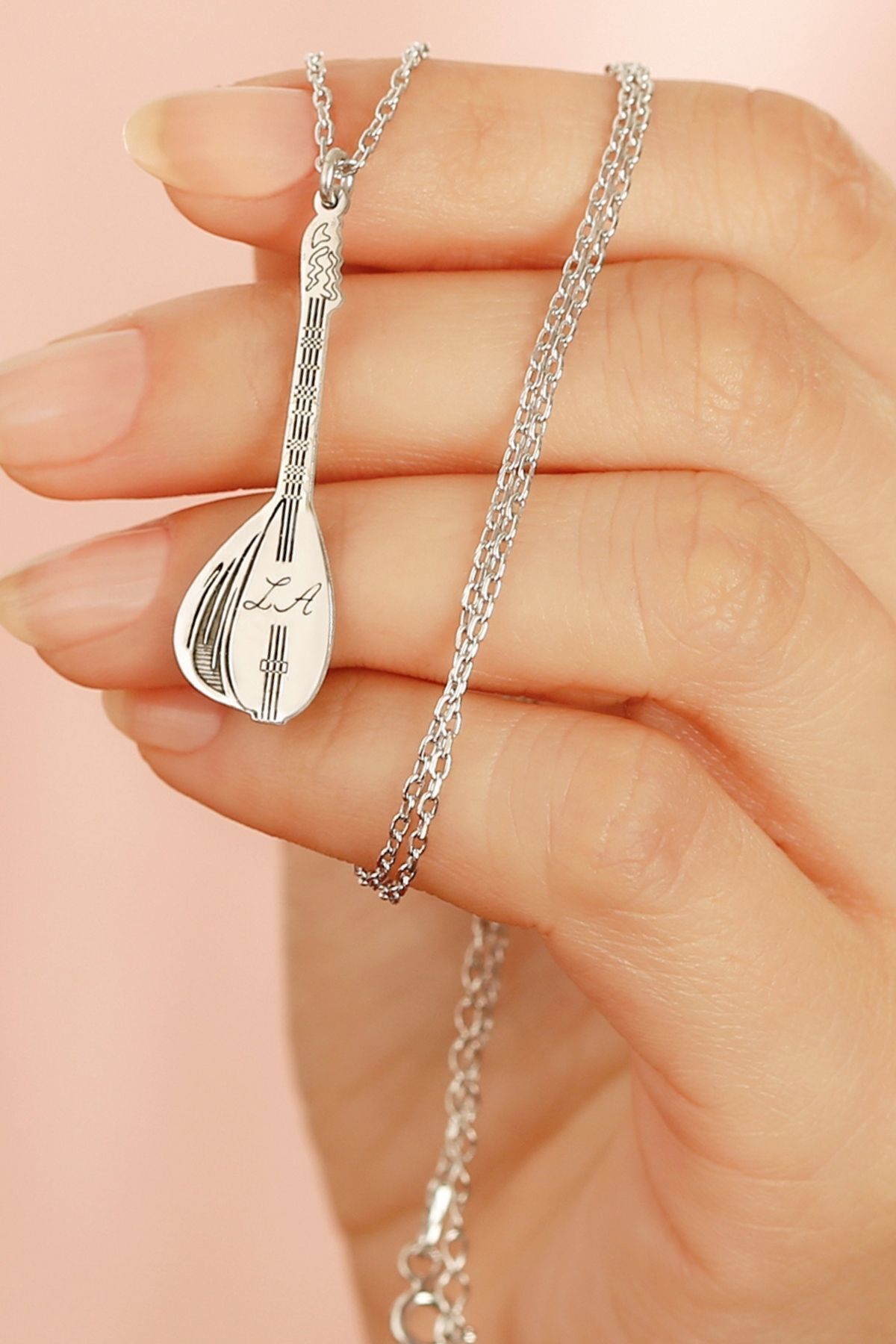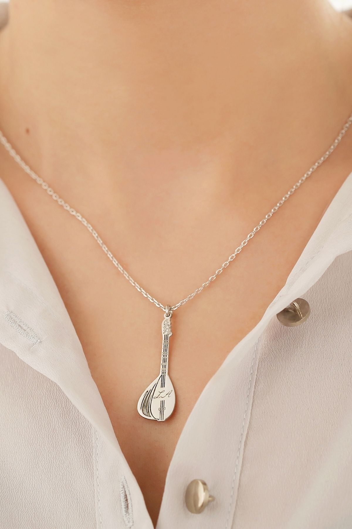 925 Ayar Gümüş Isimli Bağlama Saz Kolye