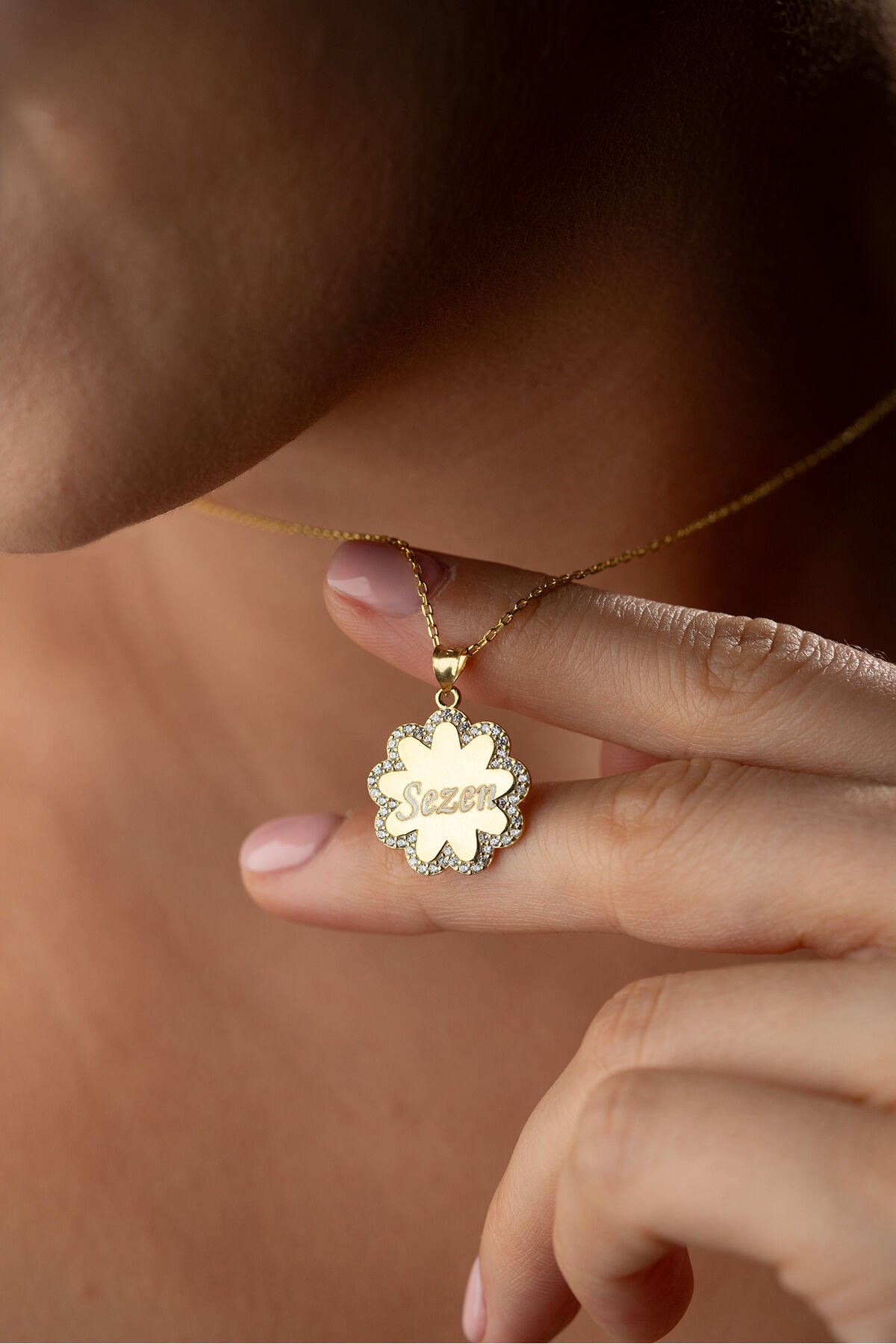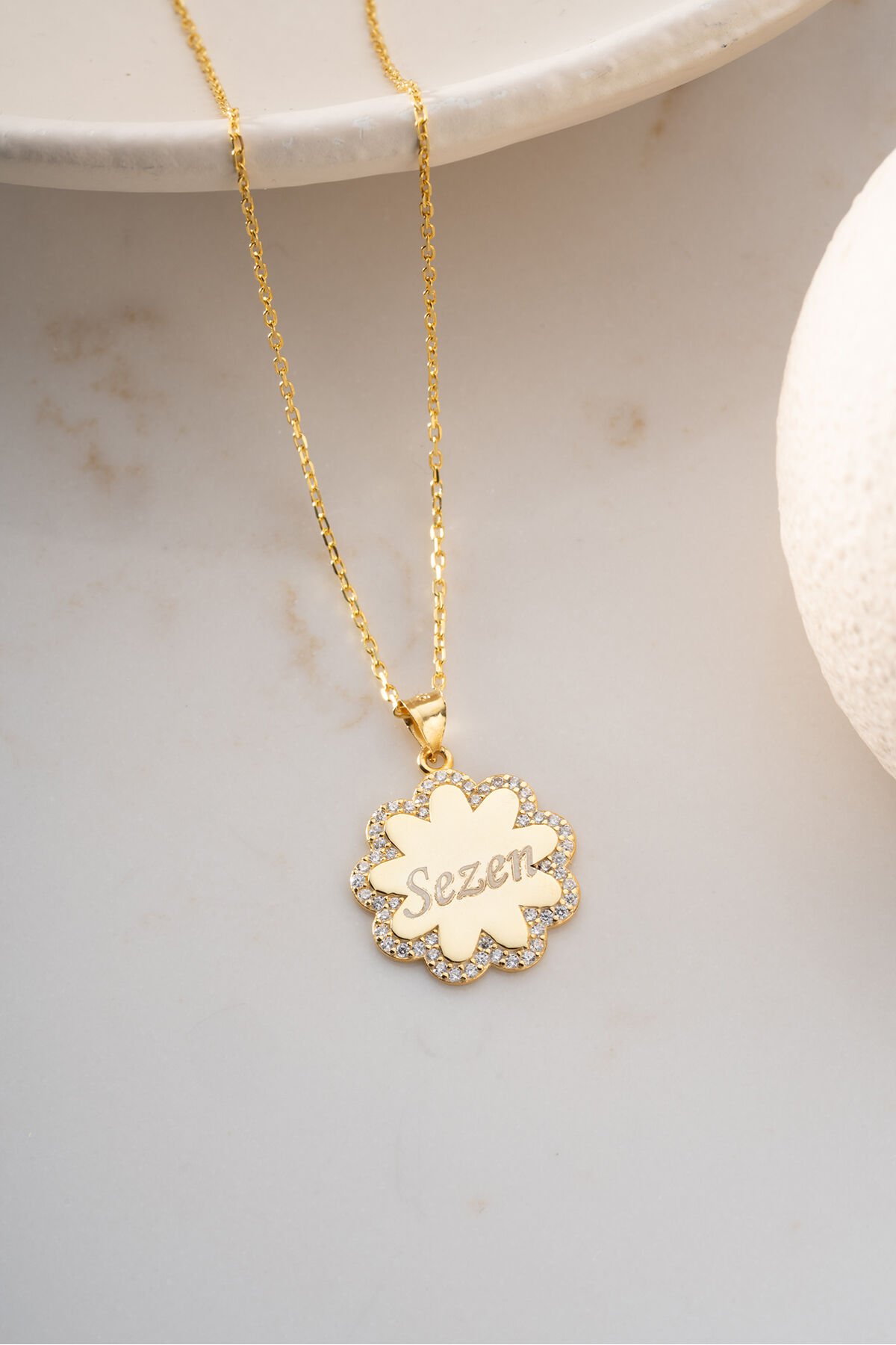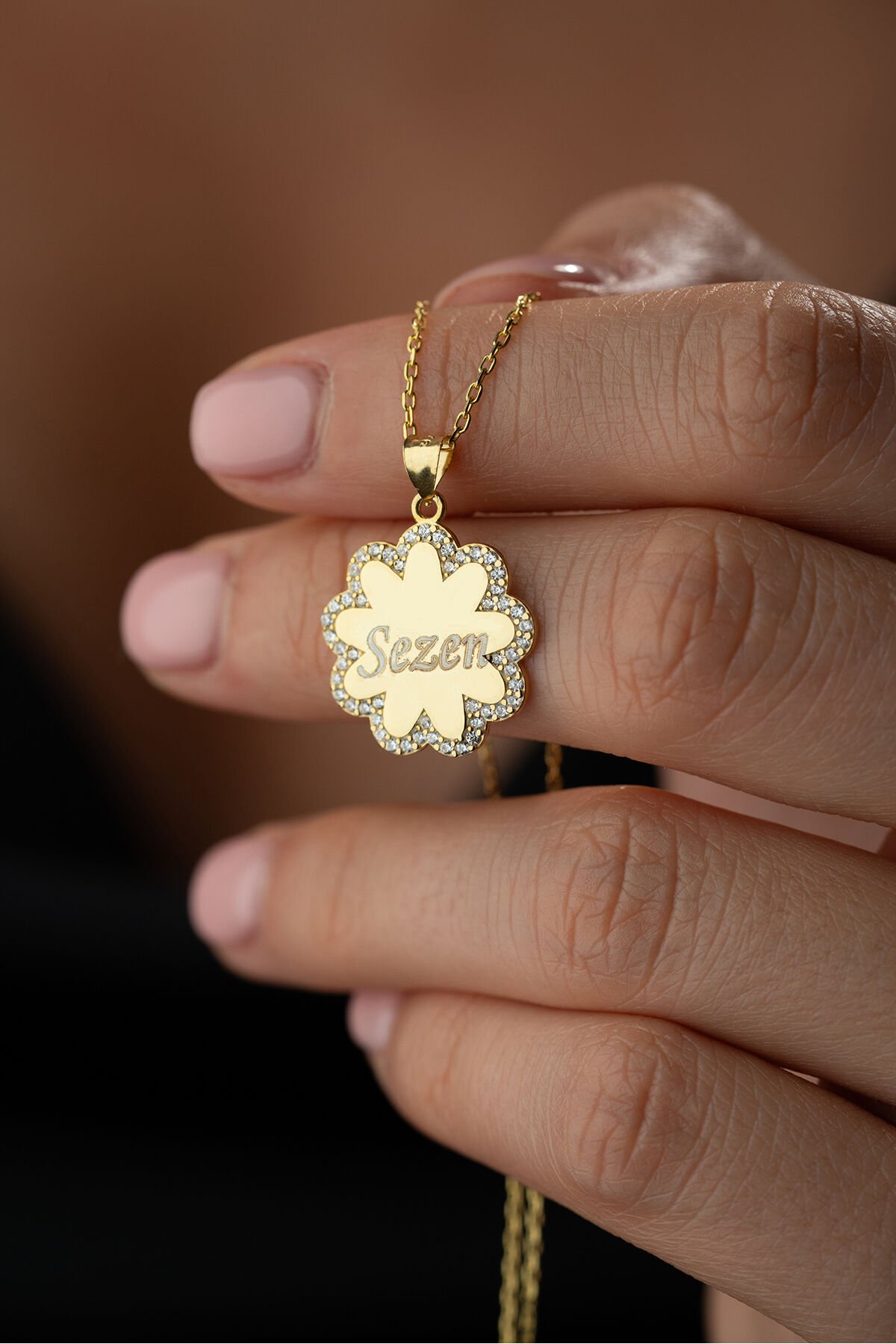 925 Ayar Gümüş İsimli Çiçek Kolye
