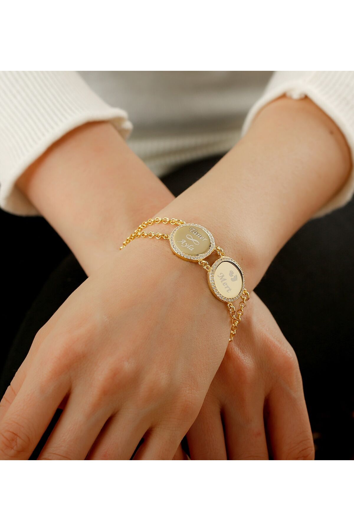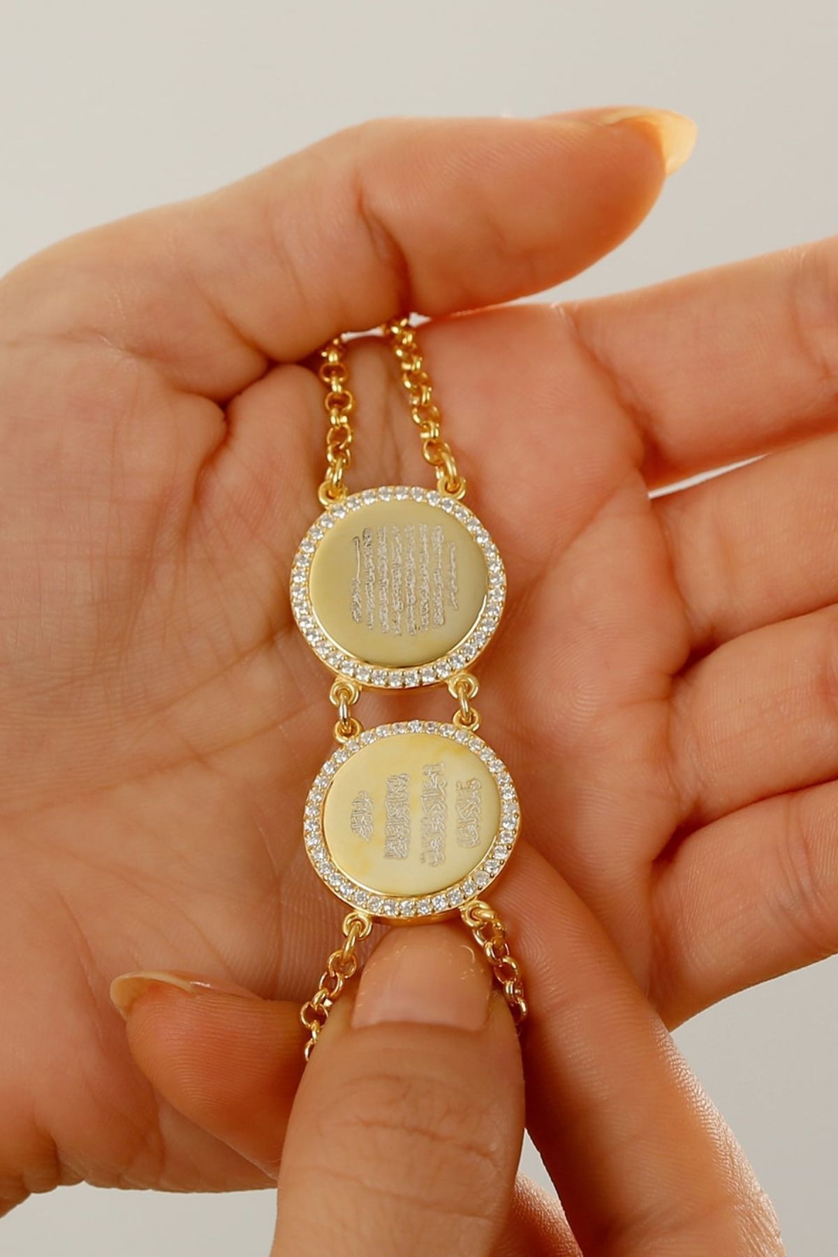 Firmamız tarafından 925 Ayar gümüşten tamamen el işçiliği ile özenle hazırlanmıştır.; Kişiye özel ürünlerde iade yada değişim maalesef mümkün değildir.; ; Sevdiklerinize ya da kendinize sunabileceğiniz şık ürünlerimiz aynı şıklıkta hediye kutusu ile paketlenmektedir.; ; İstediğiniz notları paketlere ekleyebilirsiniz.; ; Kolye ürünlerde zincir ortalaması 45-60 cm arasındadır.; ; Modele göre değişkenlik göstermektedir.; ; Bileklik ürünlerimizde bebek-çocuk için 17-18 cm, yetişkin için 21-22 cm dir.; ; Kolye ve bilekliklerimizde boy ayarlaması yapabilmeniz için uzatma zincirleri yer almaktadır.; ; Ürünlerimizi mutlu günlerde kullanmanızı dileriz