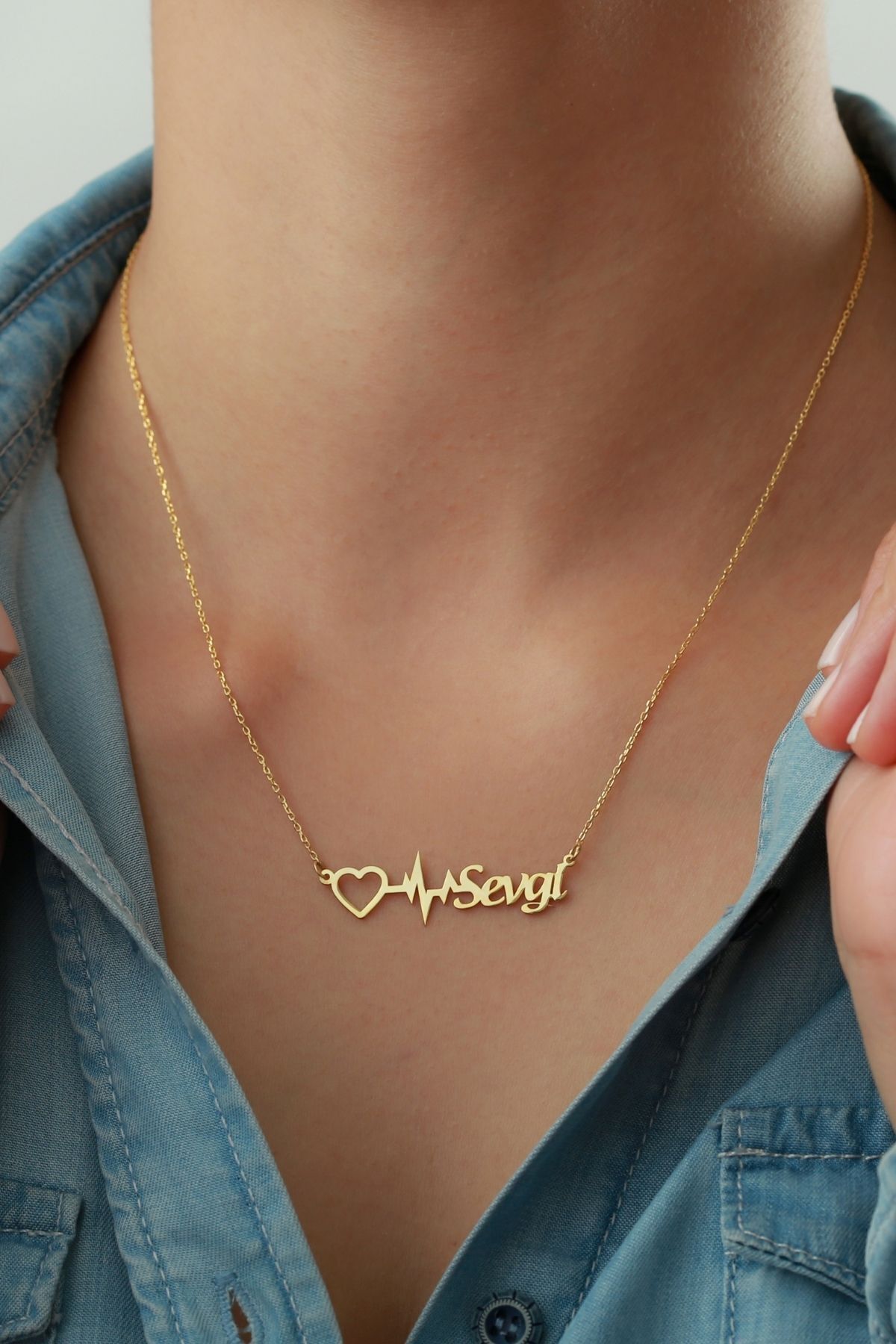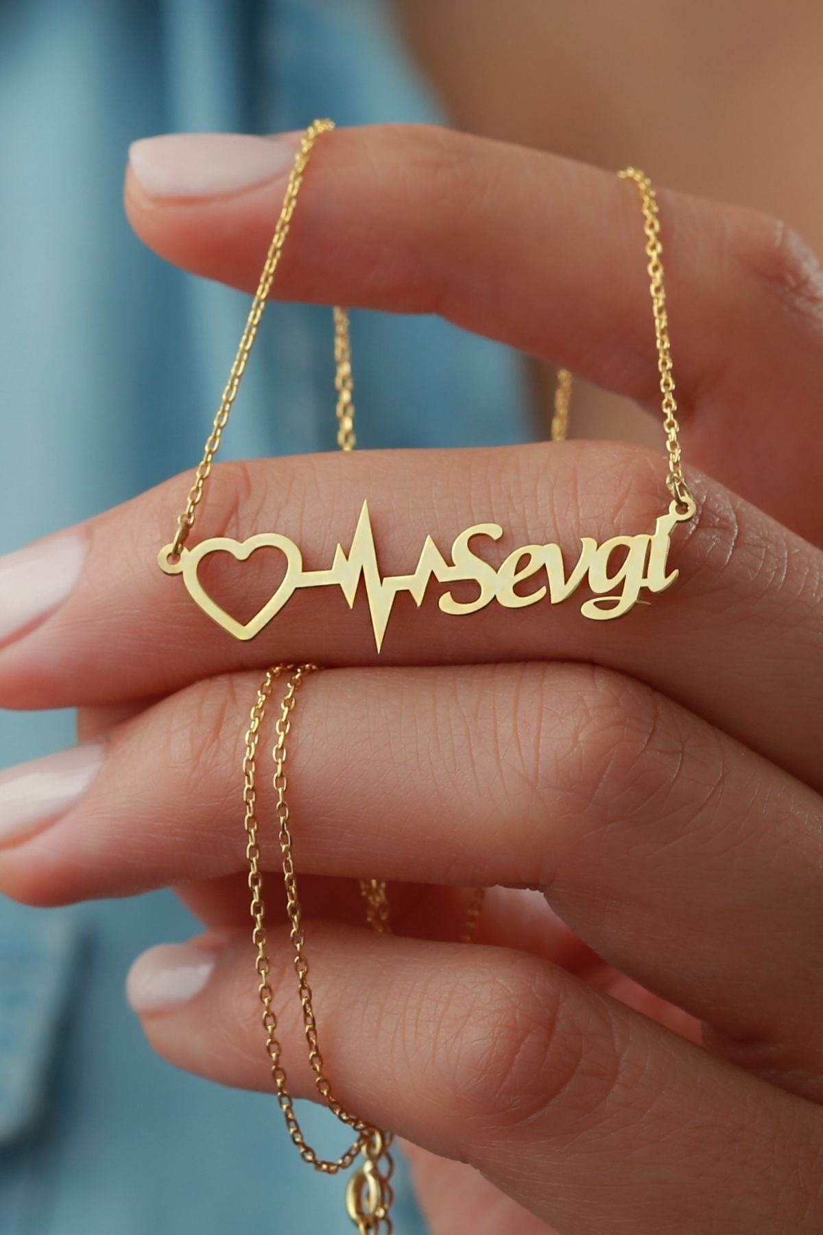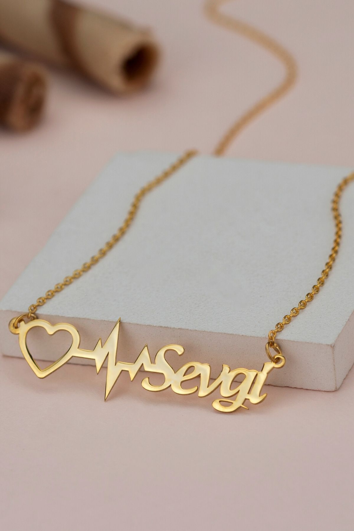 925 Ayar Gümüş Isimli Kalp Ritim Kolyesi