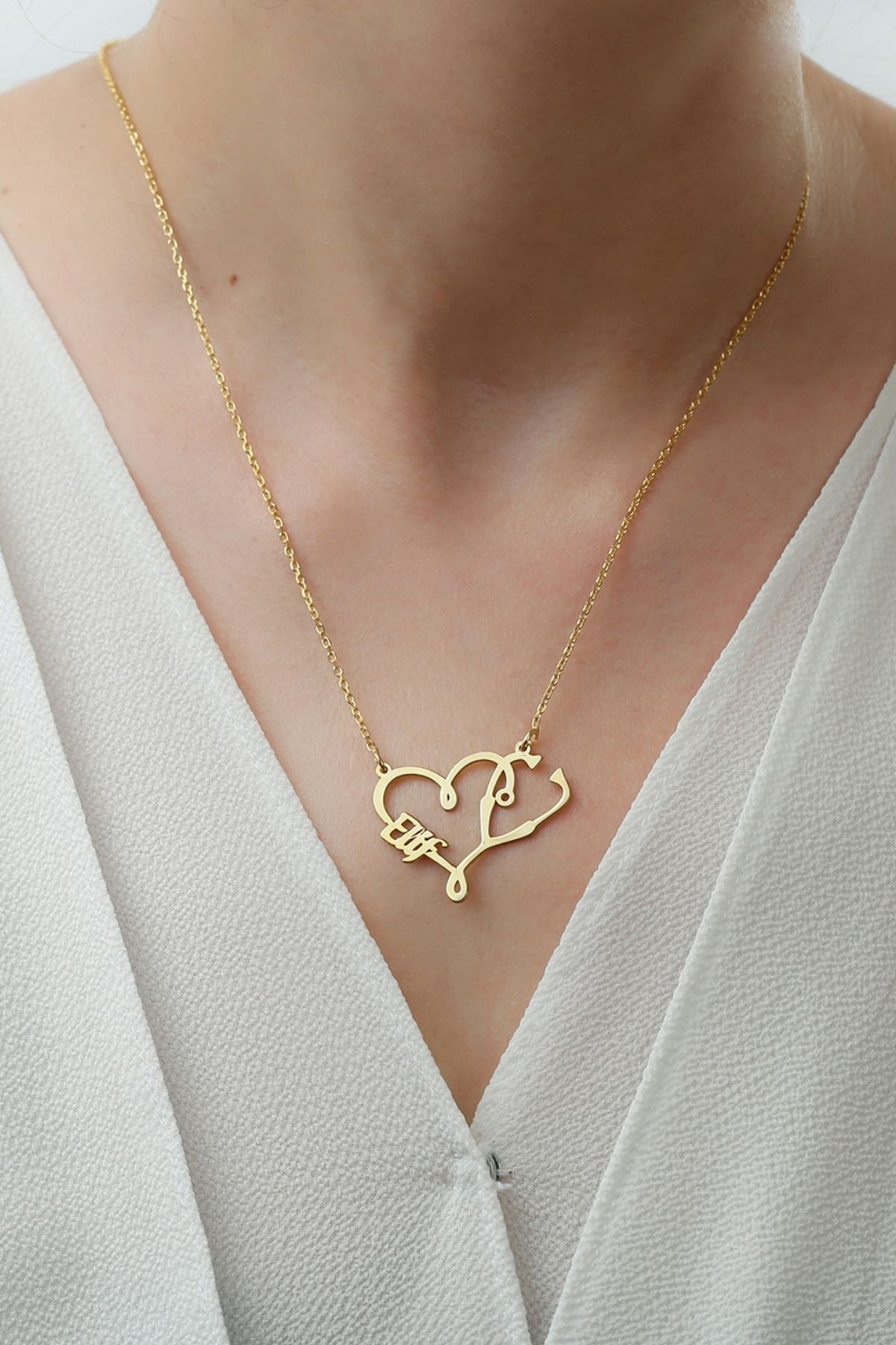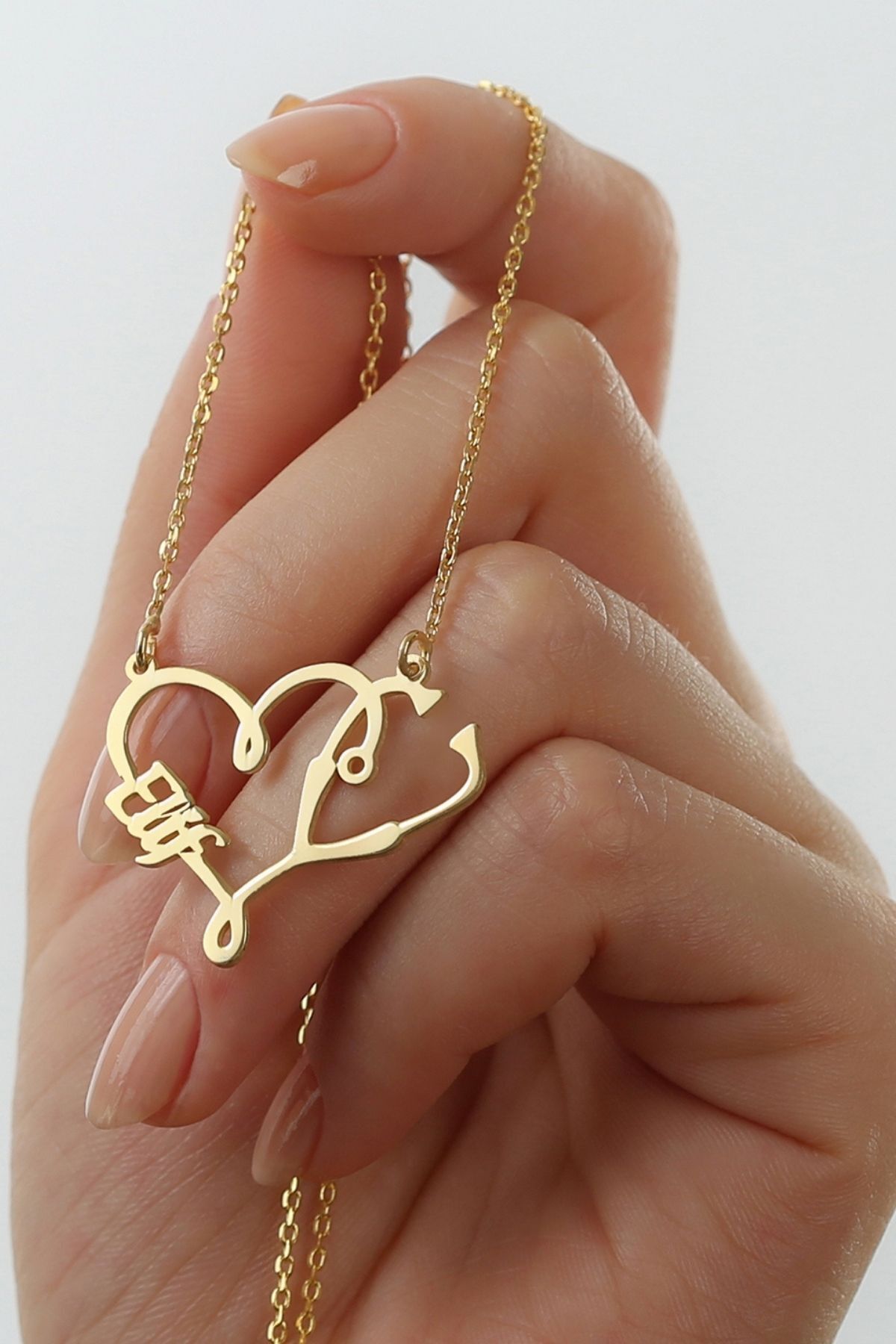925 Ayar Gümüş Isimli Kalpli Doktor Kolyesi