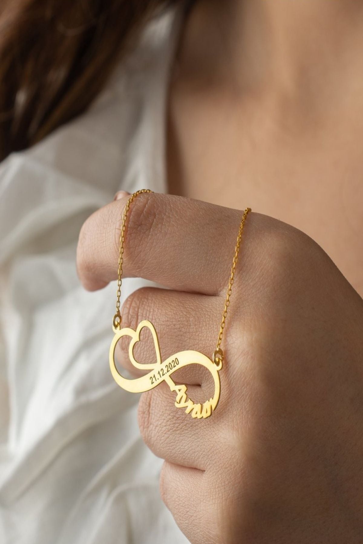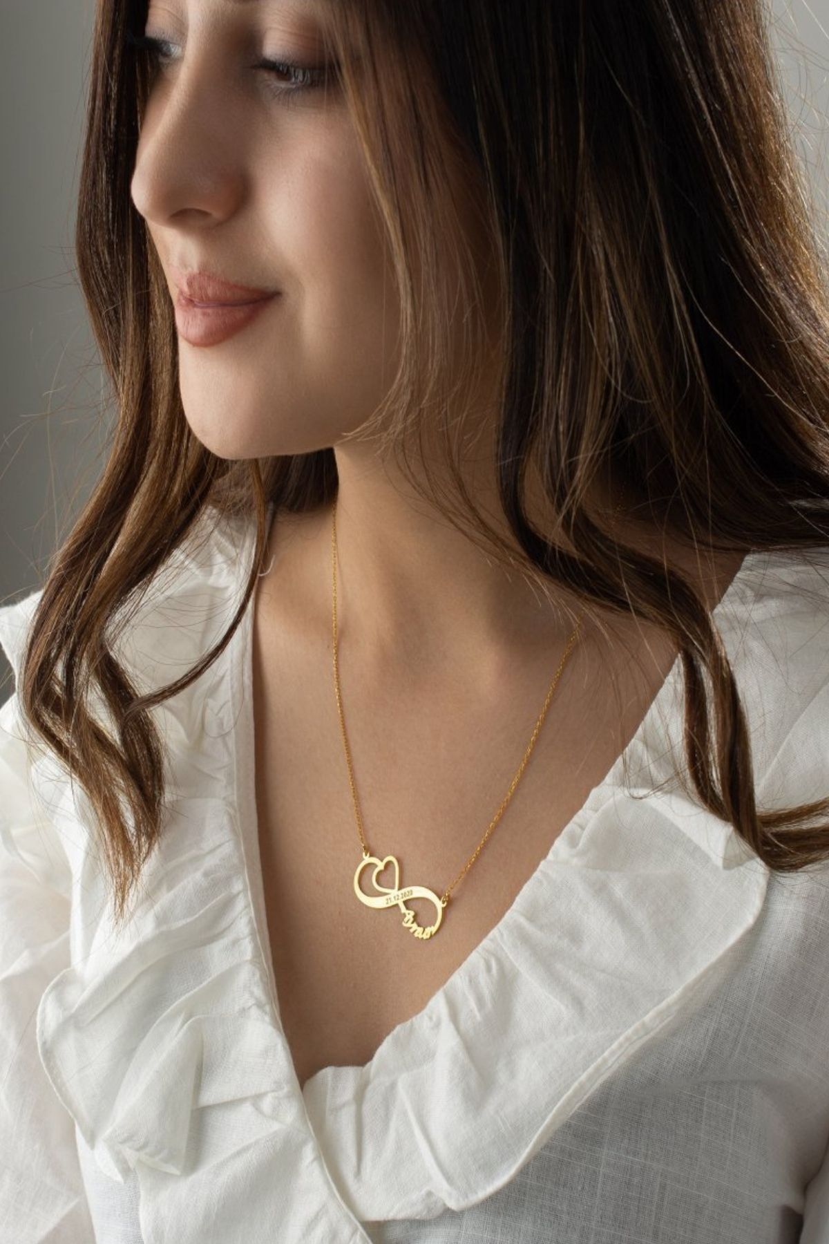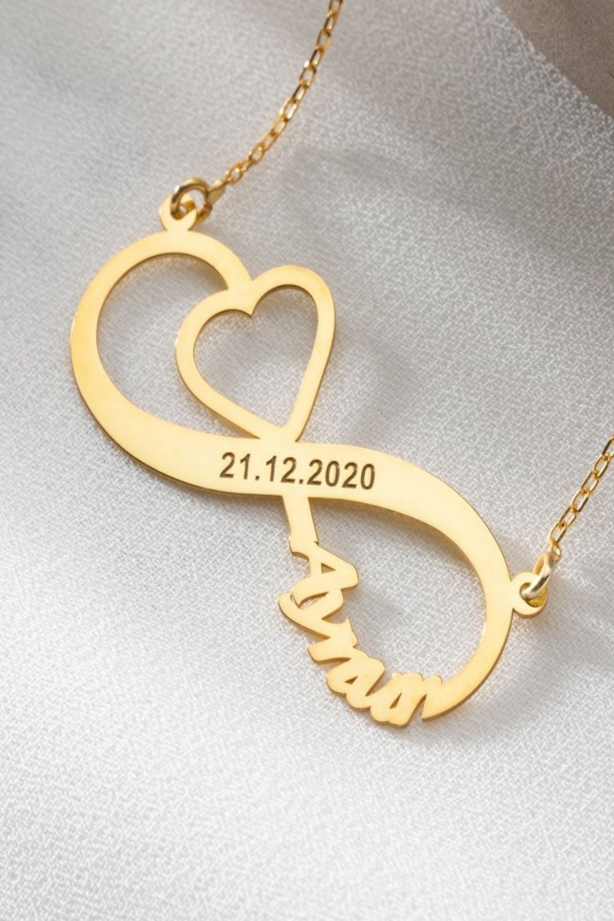 925 Ayar Gümüş Isimli Kalpli Sonsuzluk Kolye