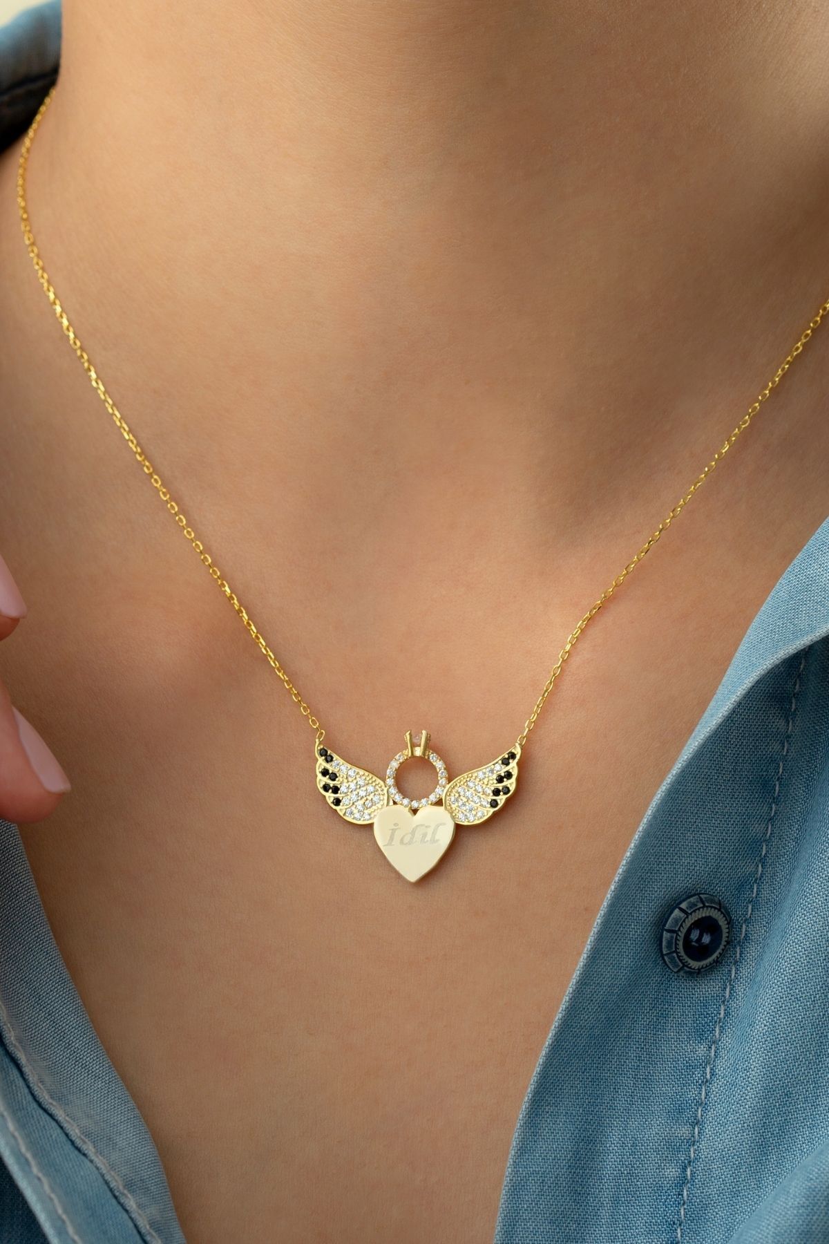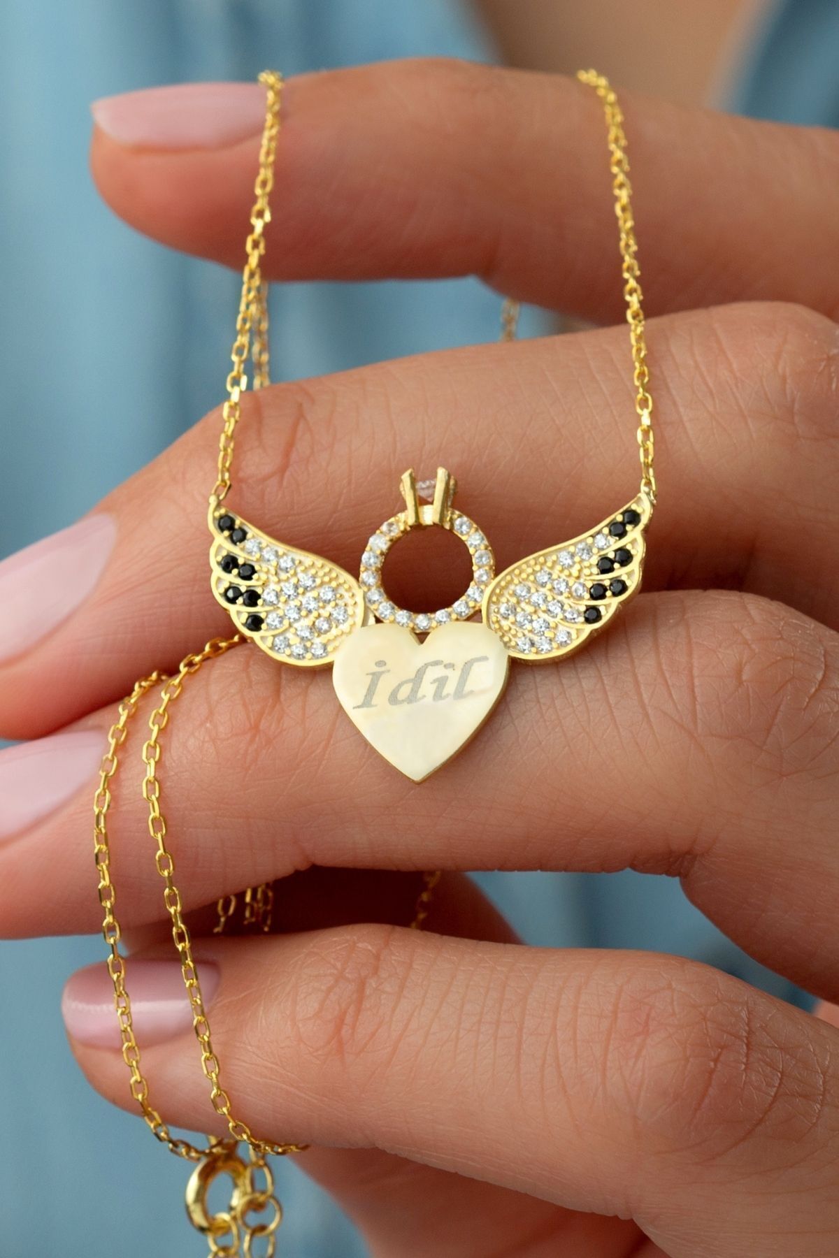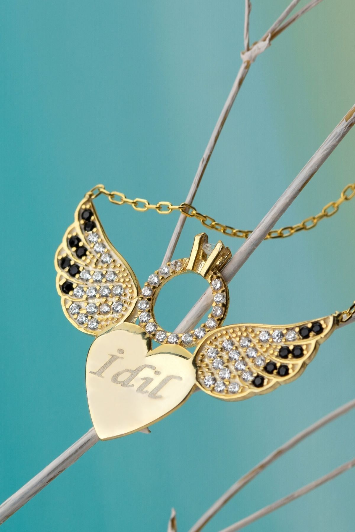 925 Ayar Gümüş Isimli Kanatlı Kalp Kolye