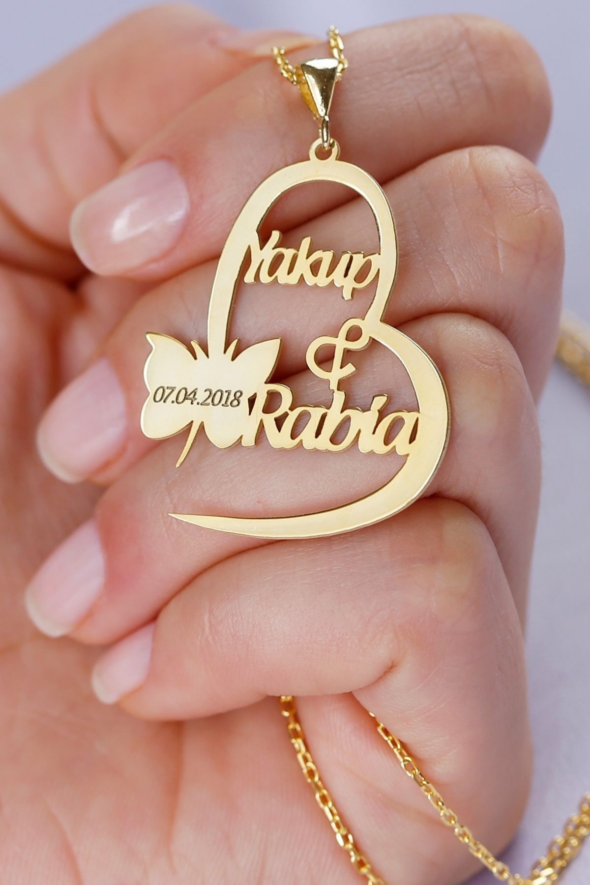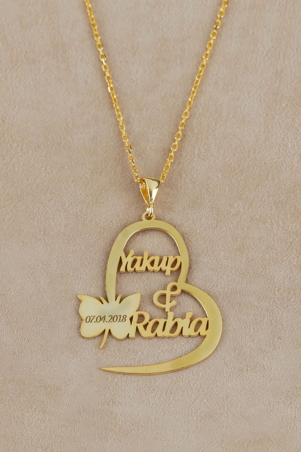 925 Ayar Gümüş Isimli Kelebekli Kalp Kolye