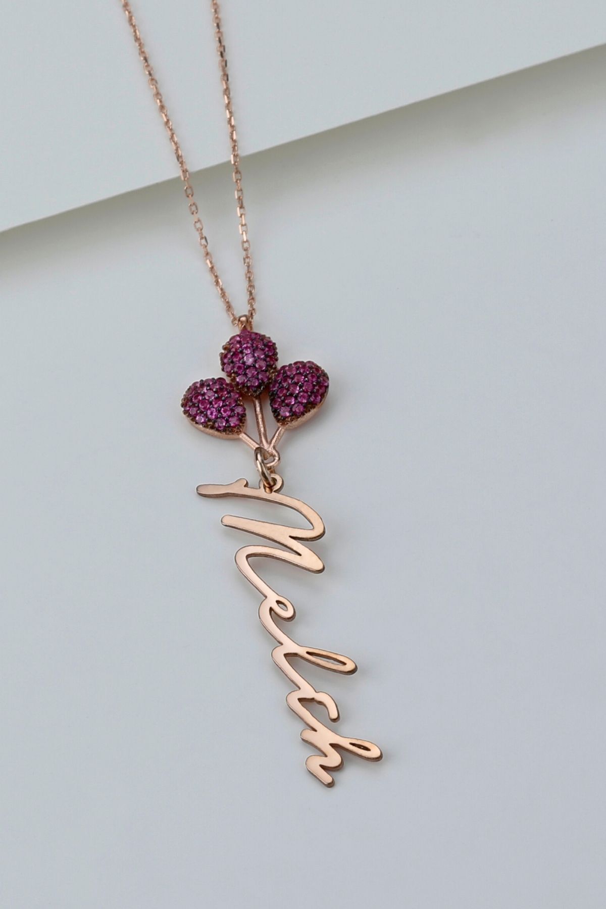 925 Ayar Gümüş Isimli Kırmızı Balonlu Kız Kolye