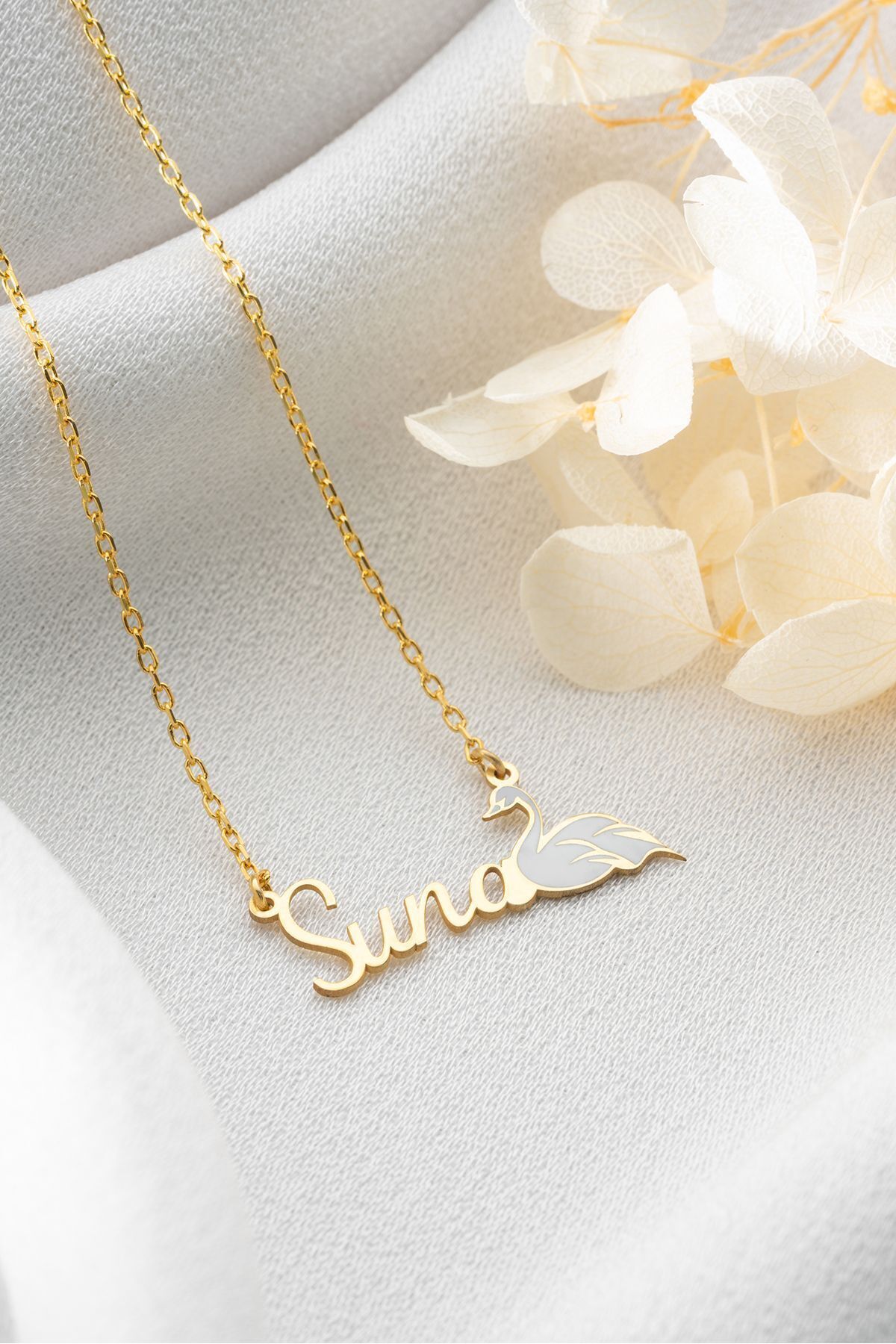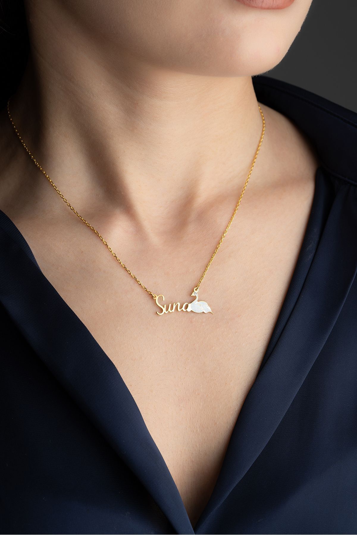 925 Ayar Gümüş İsimli Kuğu Kolye
