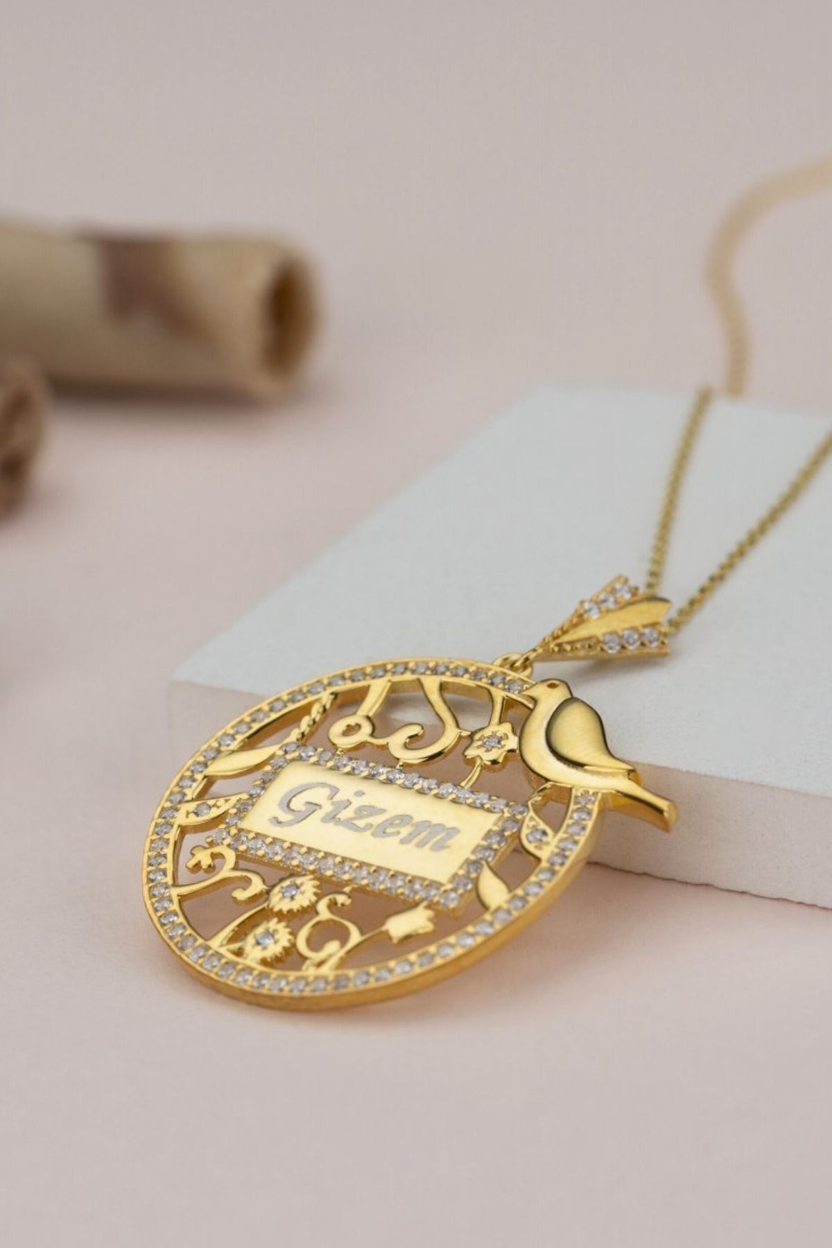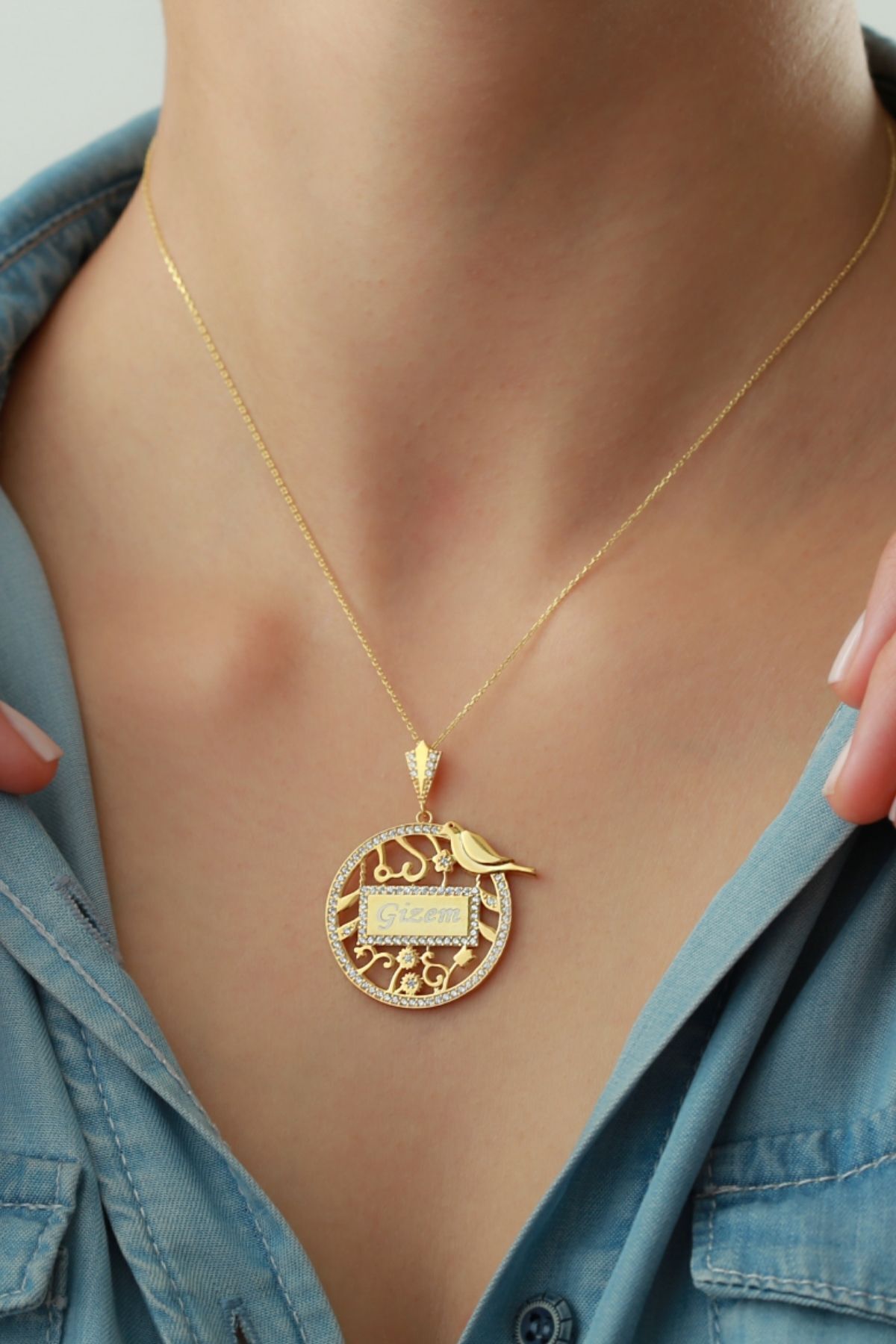 925 Ayar Gümüş Isimli Kuşlu Kolye