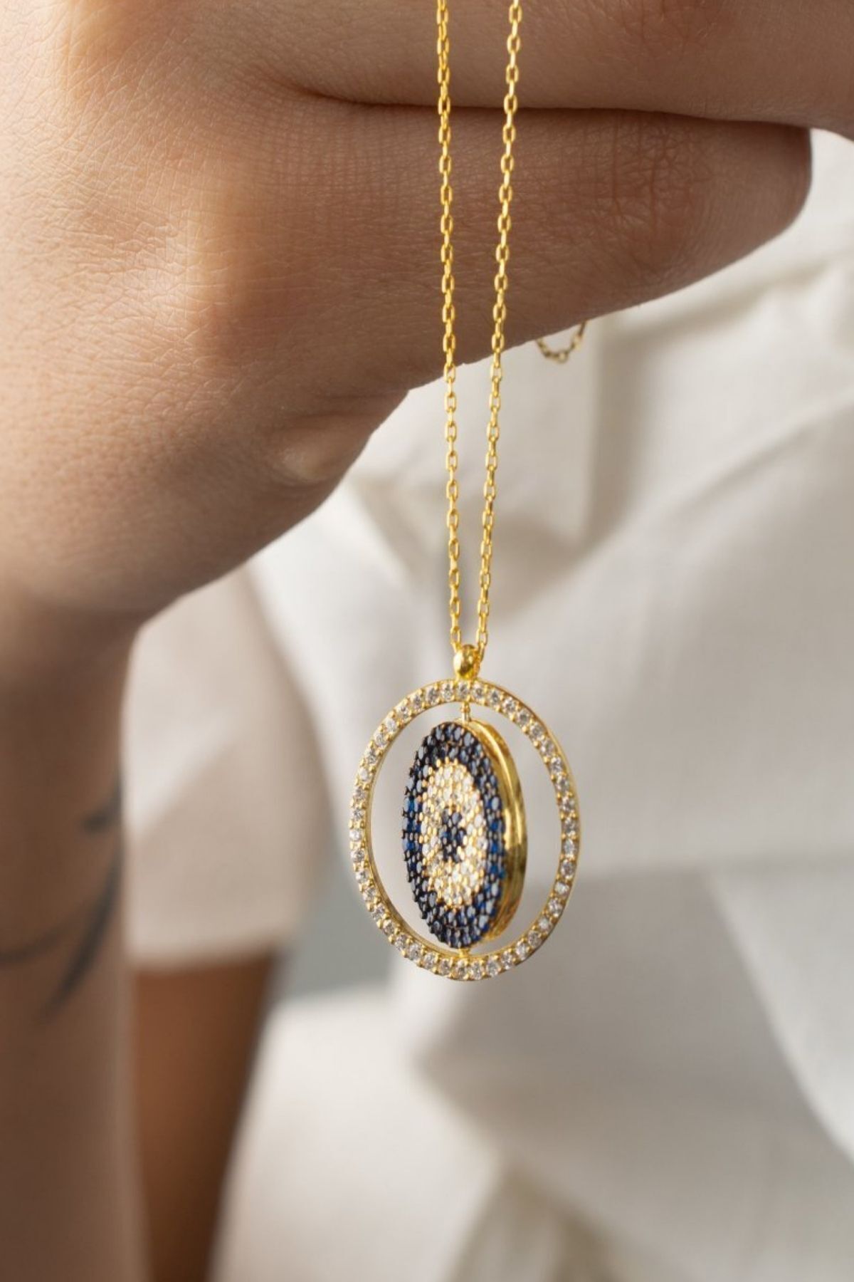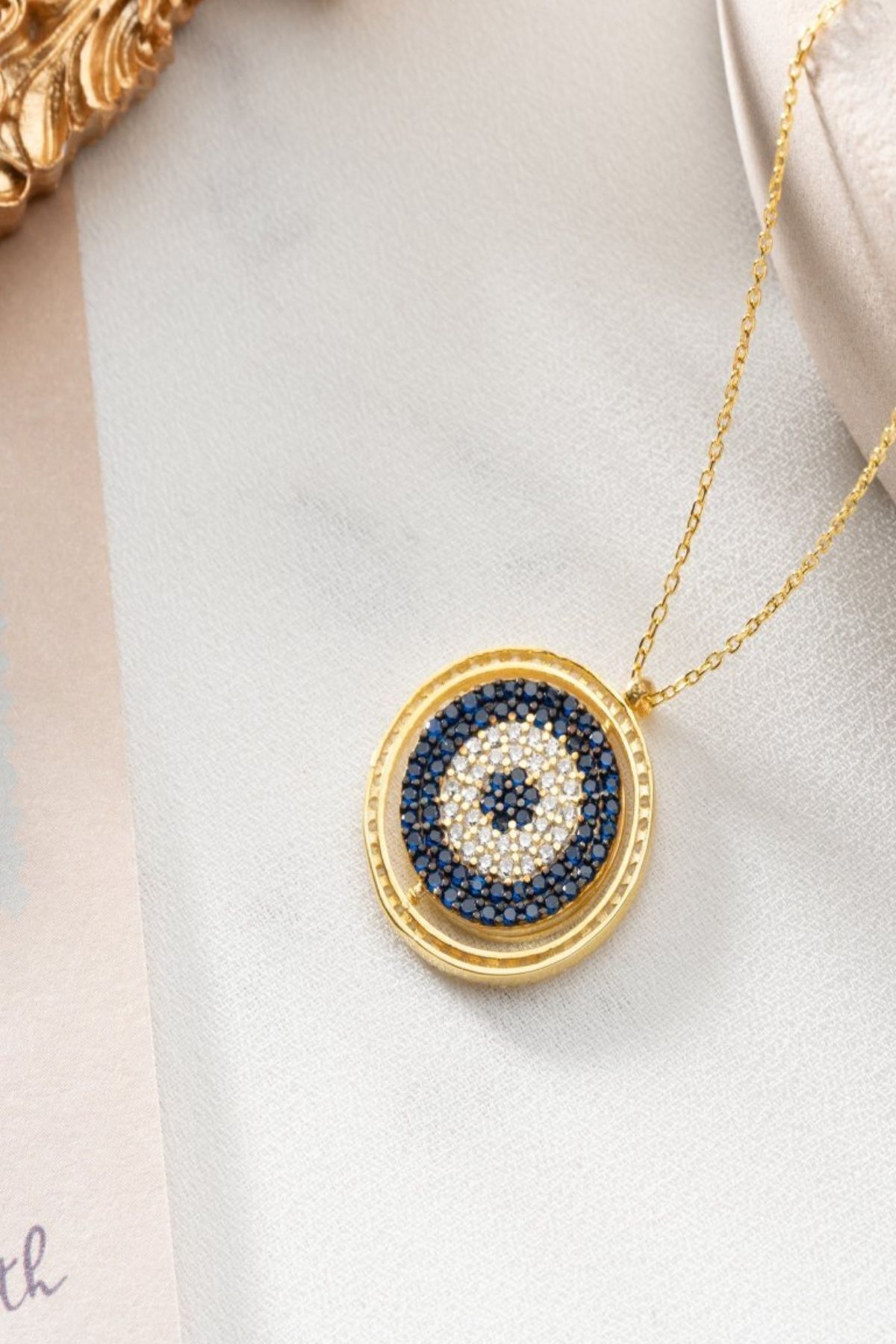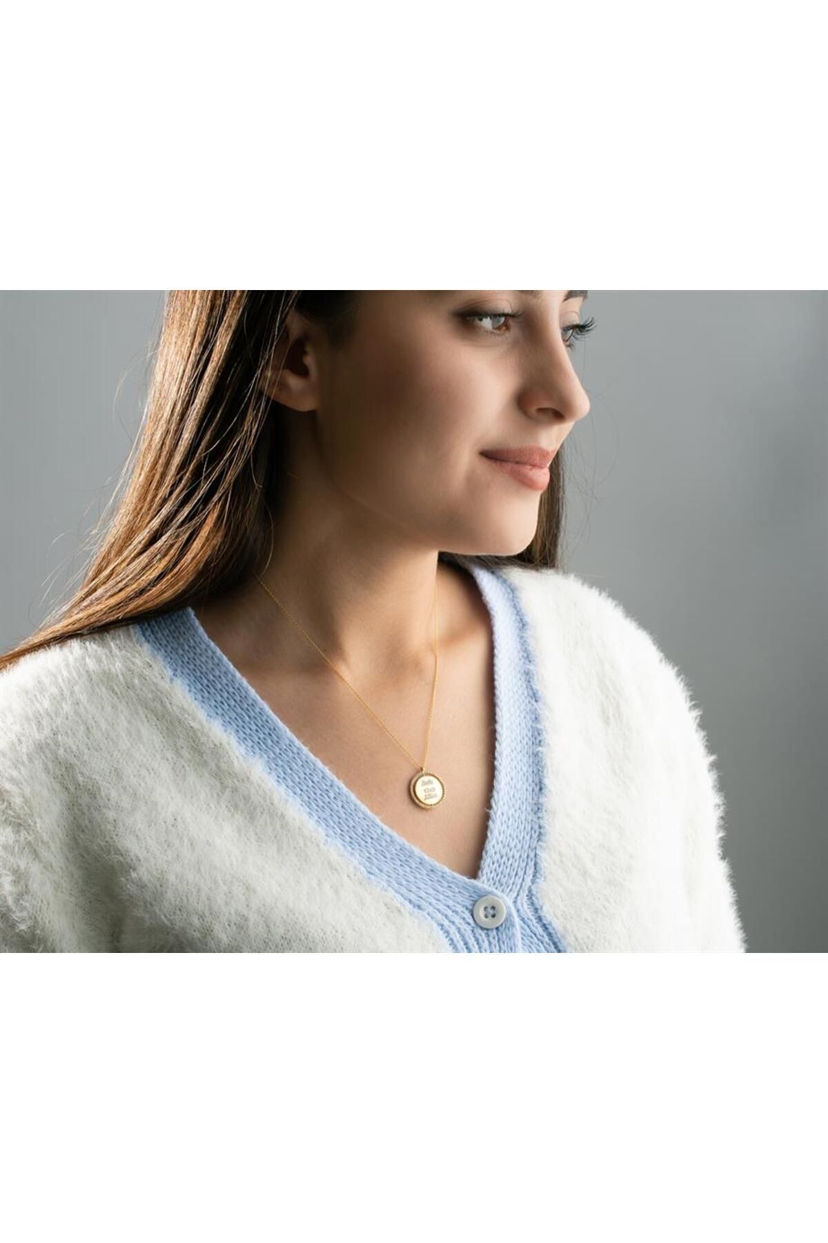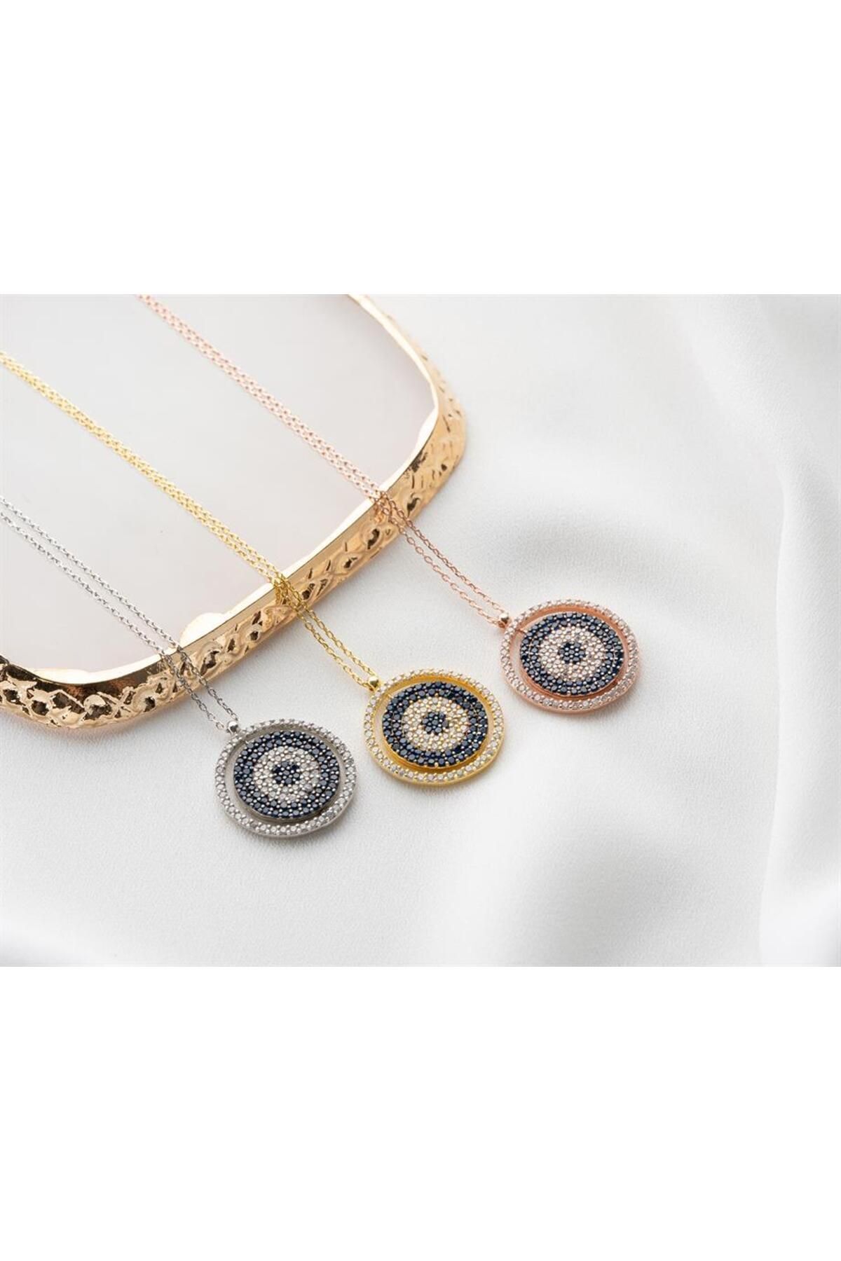 925 Ayar Gümüş Isimli Nazarlı Çift Taraflı Kolye