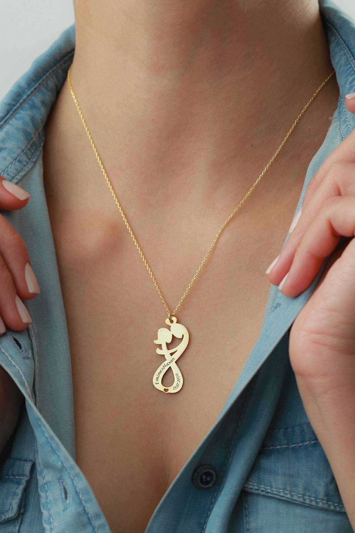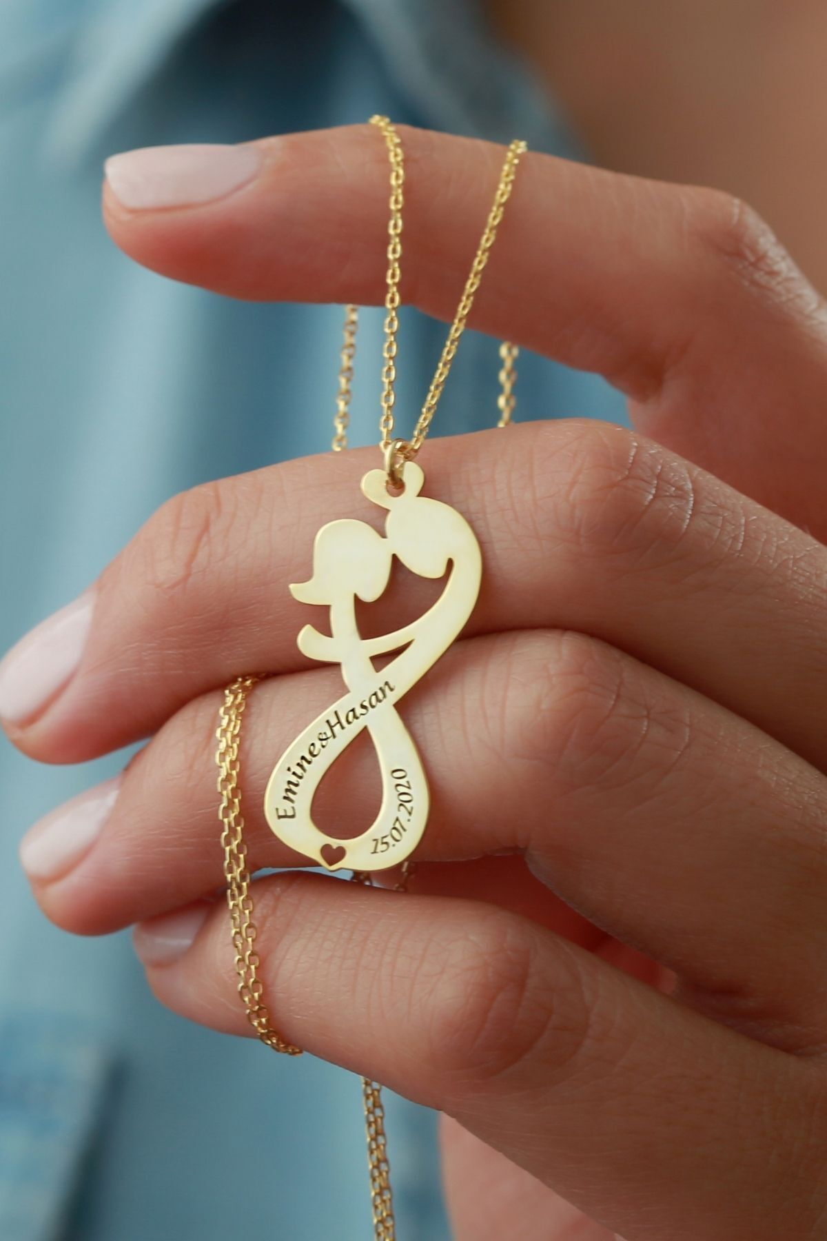 925 Ayar Gümüş Isimli Sonsuz Çift Kolye