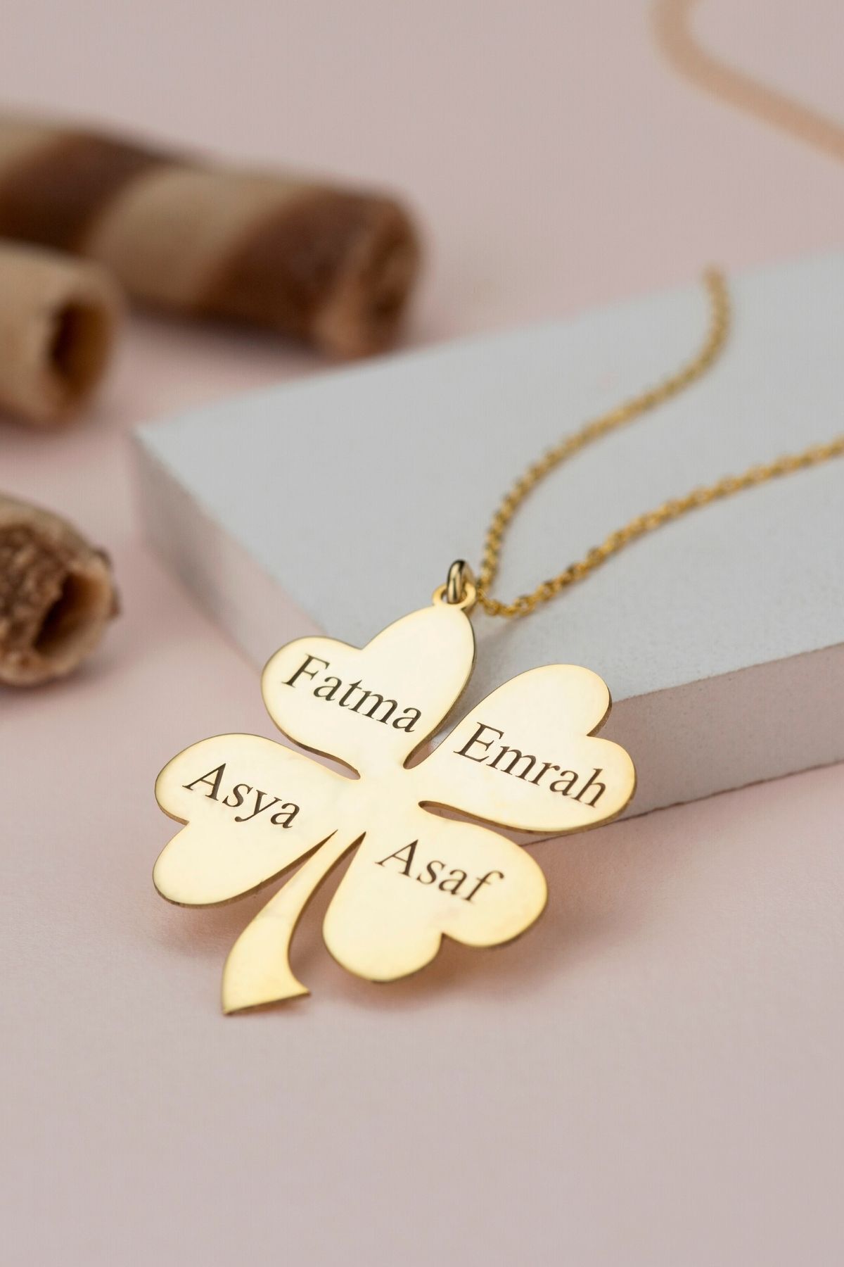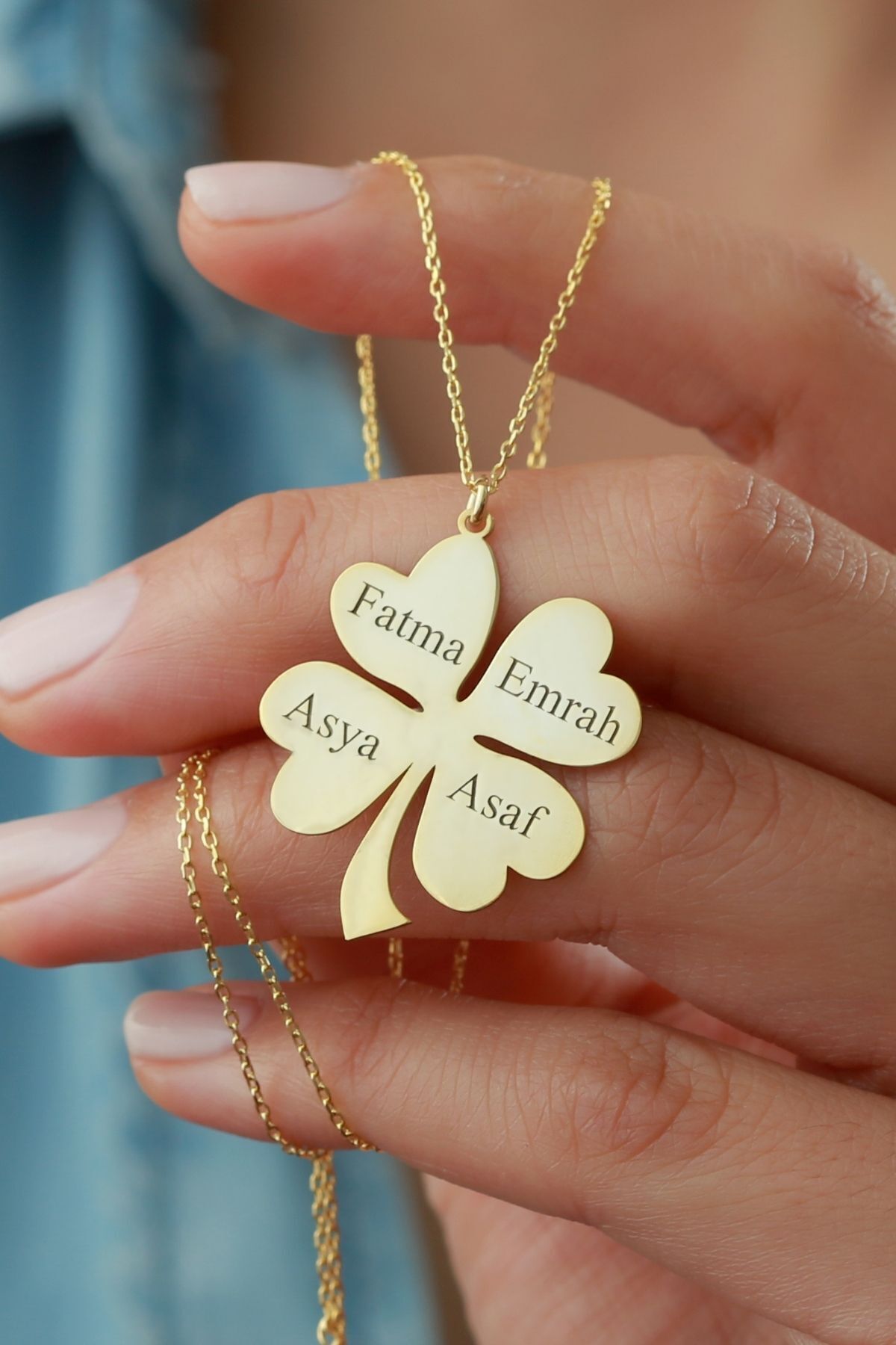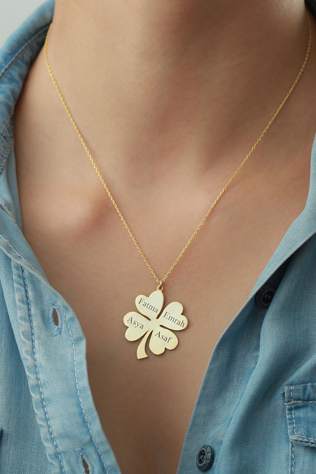 925 Ayar Gümüş Isimli Yonca Kolye