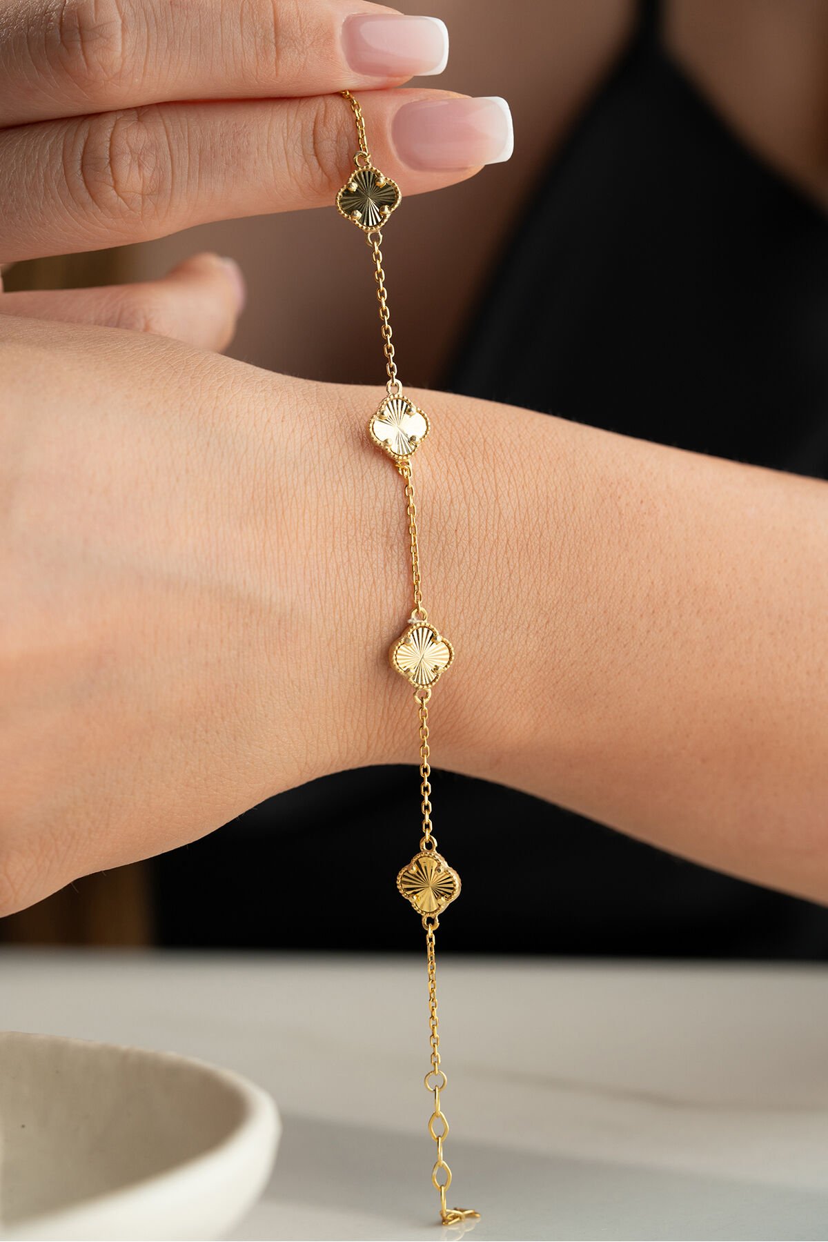 925 Ayar Gümüş bileklik ; Zarif ve ince tasarımı ile her kombine uyum sağlayan bu kolye, günlük kullanım için idealdir.; - Malzeme: 925 ayar gümüş - Boy: 42 cm (idealdir ve rahat bir kullanım sunar) - Özellikler: Hafif ve zarif yapısı ile boynunuza doğal bir ışıltı katar.; 925 Ayar Gümüş Bilekliğimiz Sade ama şık tasarımı ile bileğinize ince bir dokunuş katın.; Günlük ve özel günlerde rahatça kullanabilirsiniz.; - Malzeme: 925 ayar gümüş - Boy: Ayarlanabilir (17 cm - 20 cm arası) - Özellikler: Dayanıklı yapısı ile uzun ömürlü kullanım sağlar, hafif ve rahattır.; Tabii, işte kısa ve anlaşılır bir şekilde 925 ayar gümüş takıların saklama ve kullanma koşulları: 925 Ayar Gümüş Takıların Saklama Koşulları: - Kuru ve serin yerde saklayın: Gümüş takılar nemden uzak tutulmalıdır.; Nem, gümüşün kararmasına neden olabilir.; - Kapalı kutuda muhafaza edin: Takılarınızı hava almayan mücevher kutusunda veya kumaş keselerde saklayarak oksitlenmeyi önleyebilirsiniz.; - Diğer takılarla temas ettirmeyin: Çizilmeleri önlemek için gümüş takılarınızı diğer takılardan ayrı tutun.; 925 Ayar Gümüş Takıların Kullanma Koşulları: - Su ve kimyasallardan uzak tutun: Gümüş takılarınızı parfüm, krem, saç spreyi gibi kimyasallarla temas ettirmeyin ve suya maruz bırakmayın.; - Düzenli temizleyin: Yumuşak bir bezle düzenli olarak temizleyerek parlaklığını koruyun.; - Uyurken ve spor yaparken çıkartın: Takılarınızı zarar görmemesi için uyurken, spor yaparken veya yoğun fiziksel aktivitelerde çıkarın.; Bu basit kurallar, gümüş takılarınızın uzun ömürlü ve parlak kalmasını sağlayacaktır.; ; ;