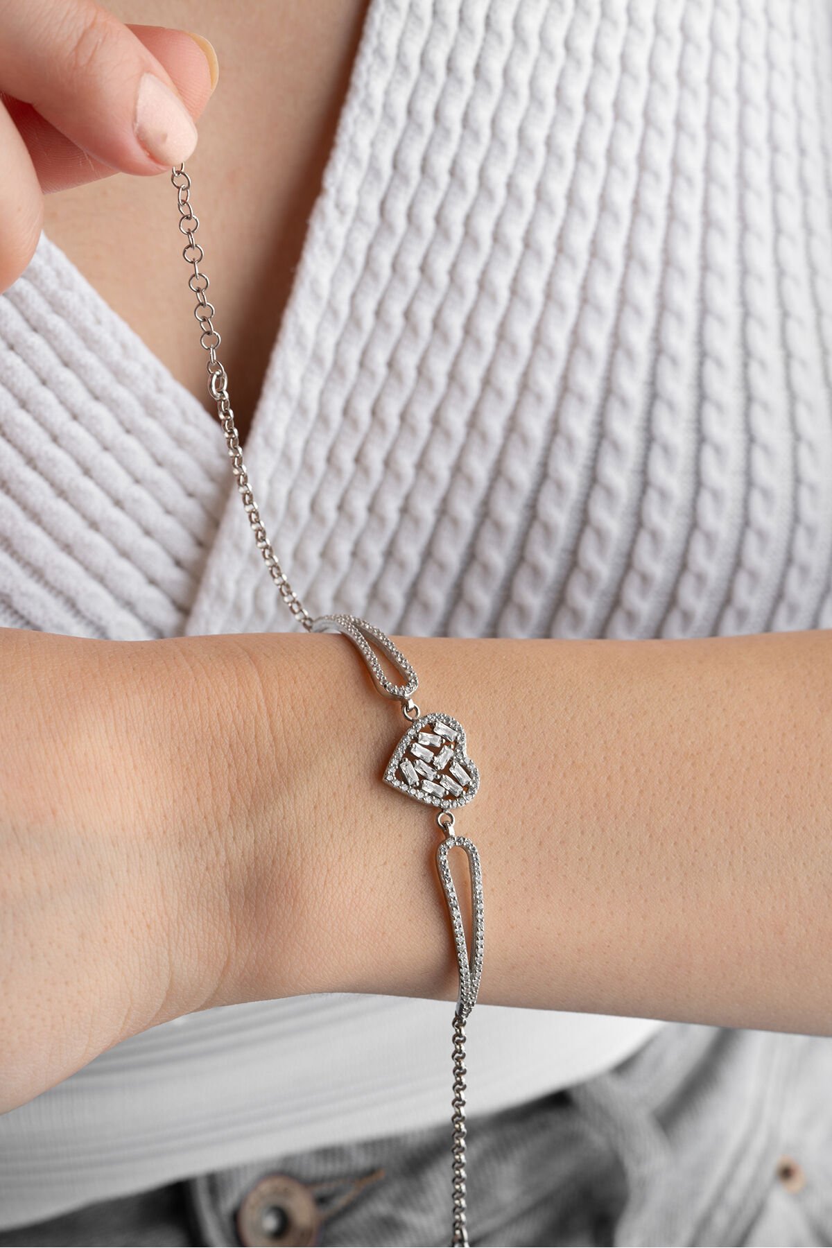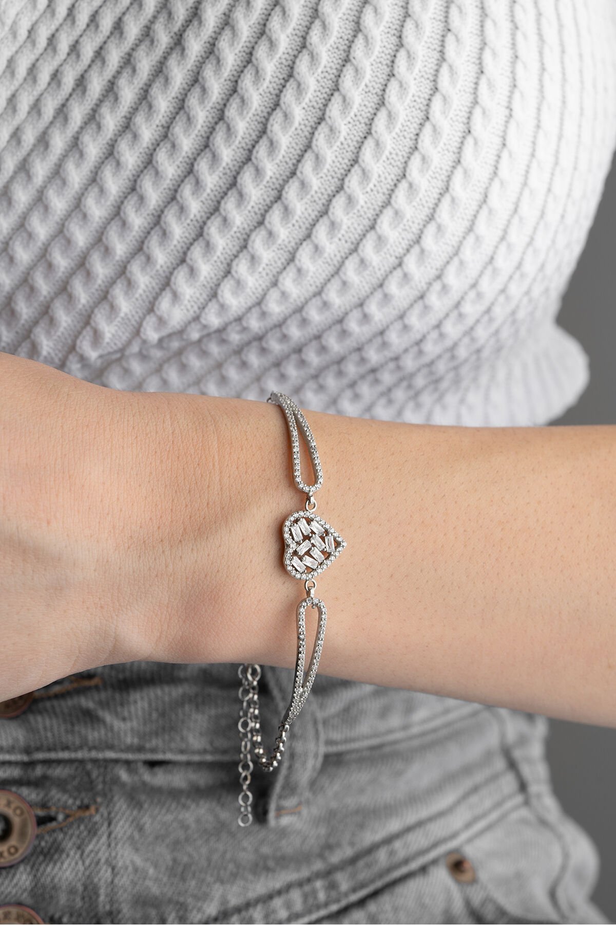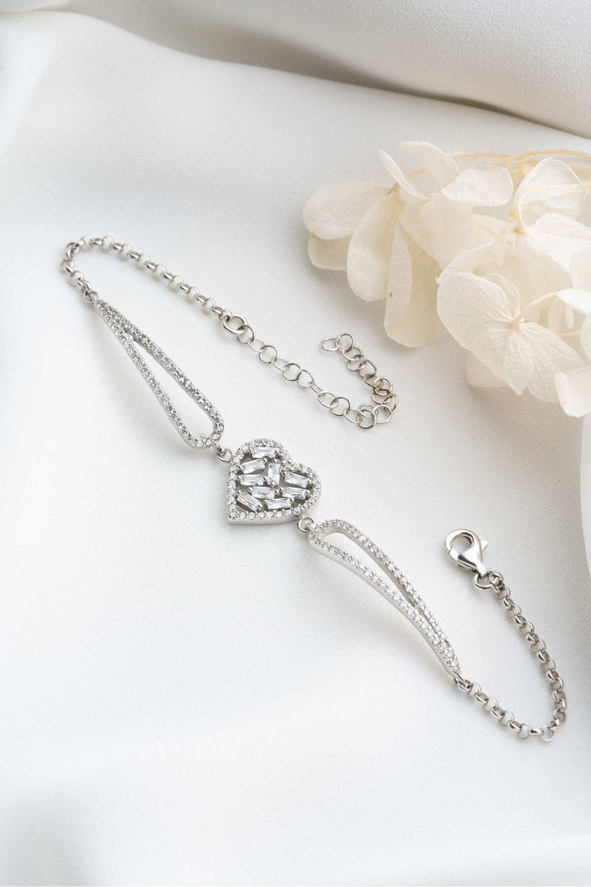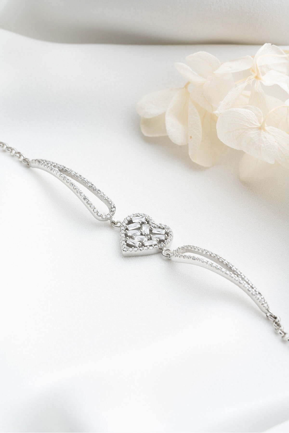 925 Ayar Gümüş Kalp Baget Taşlı Bileklik