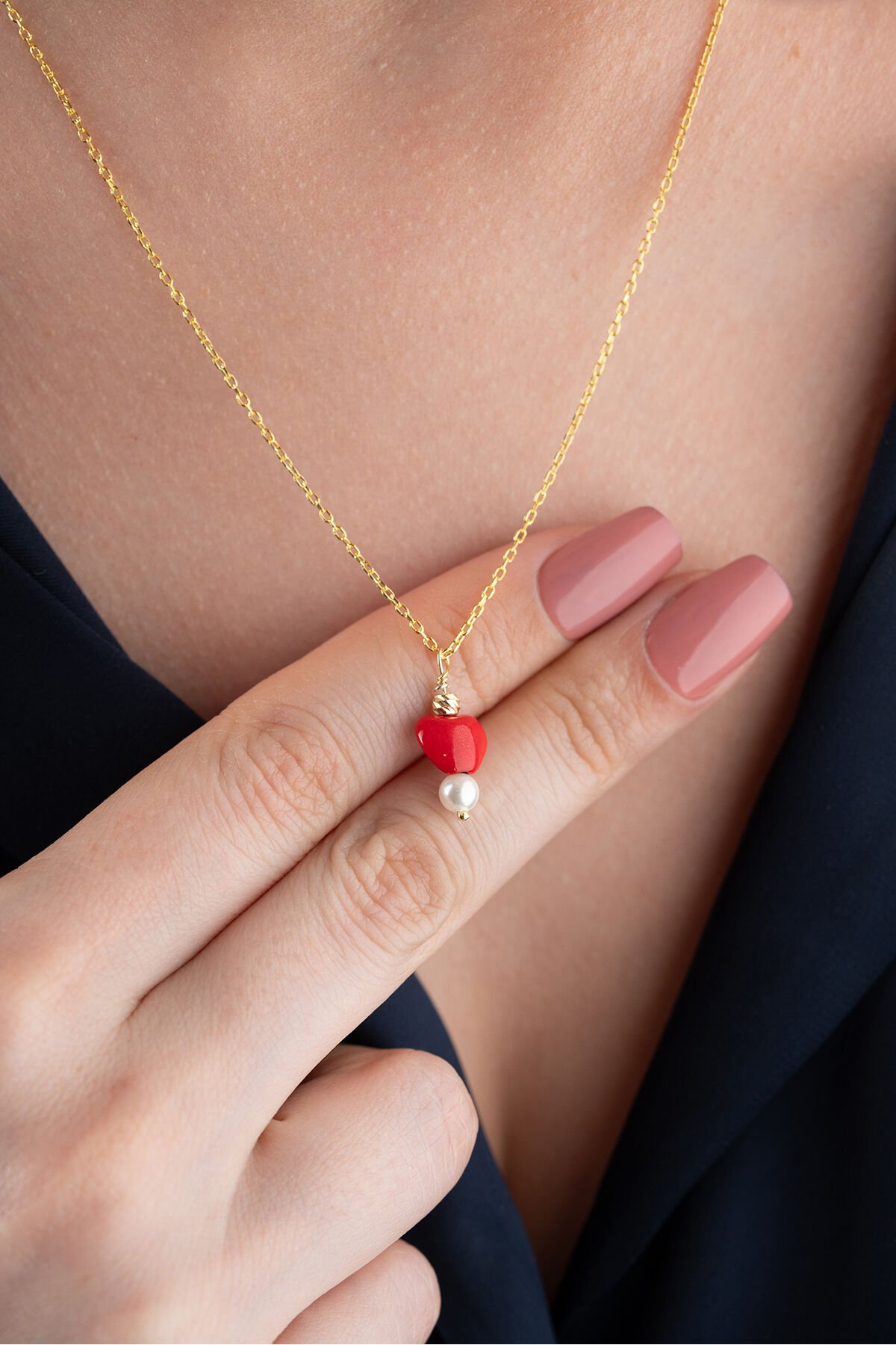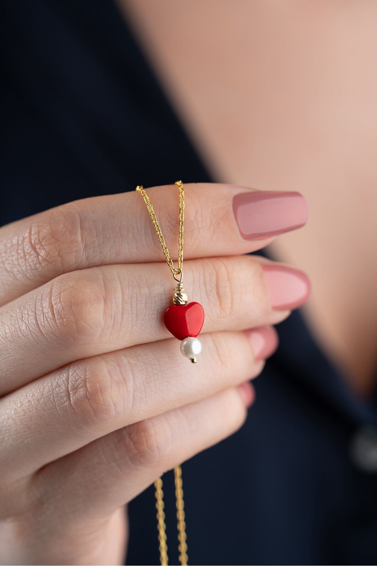 925 Ayar Gümüş Kalp Taşlı Model Kolye