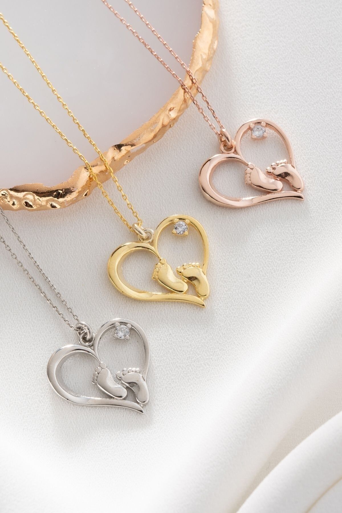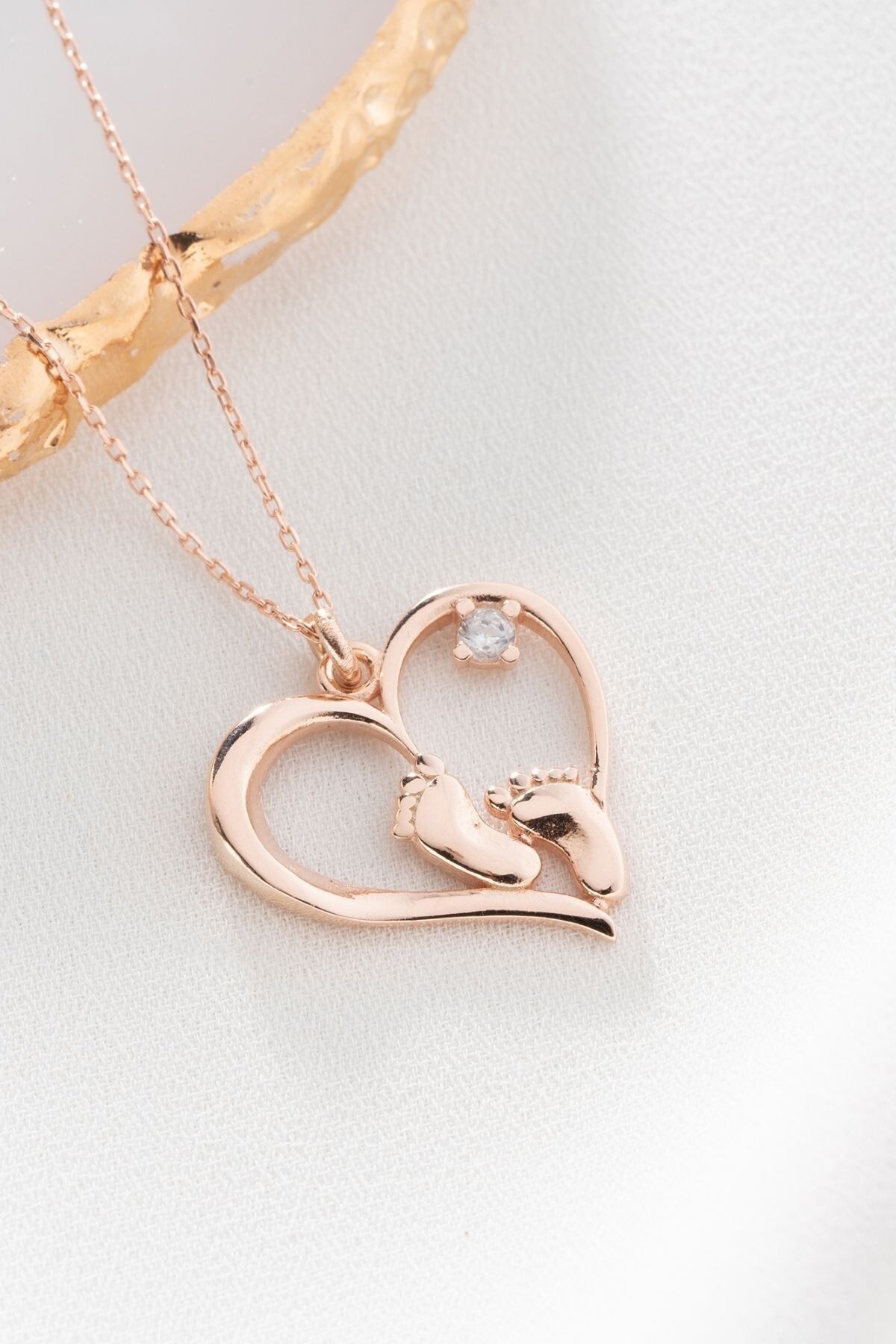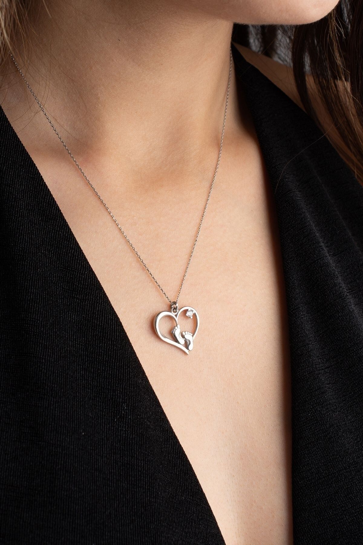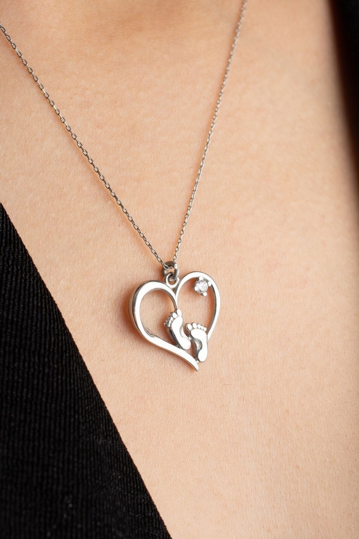 925 Ayar Gümüş Kalpli Ayak Izi Kolye