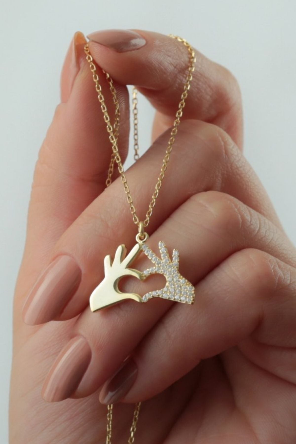 925 Ayar Gümüş Kalpli Eller Kolye