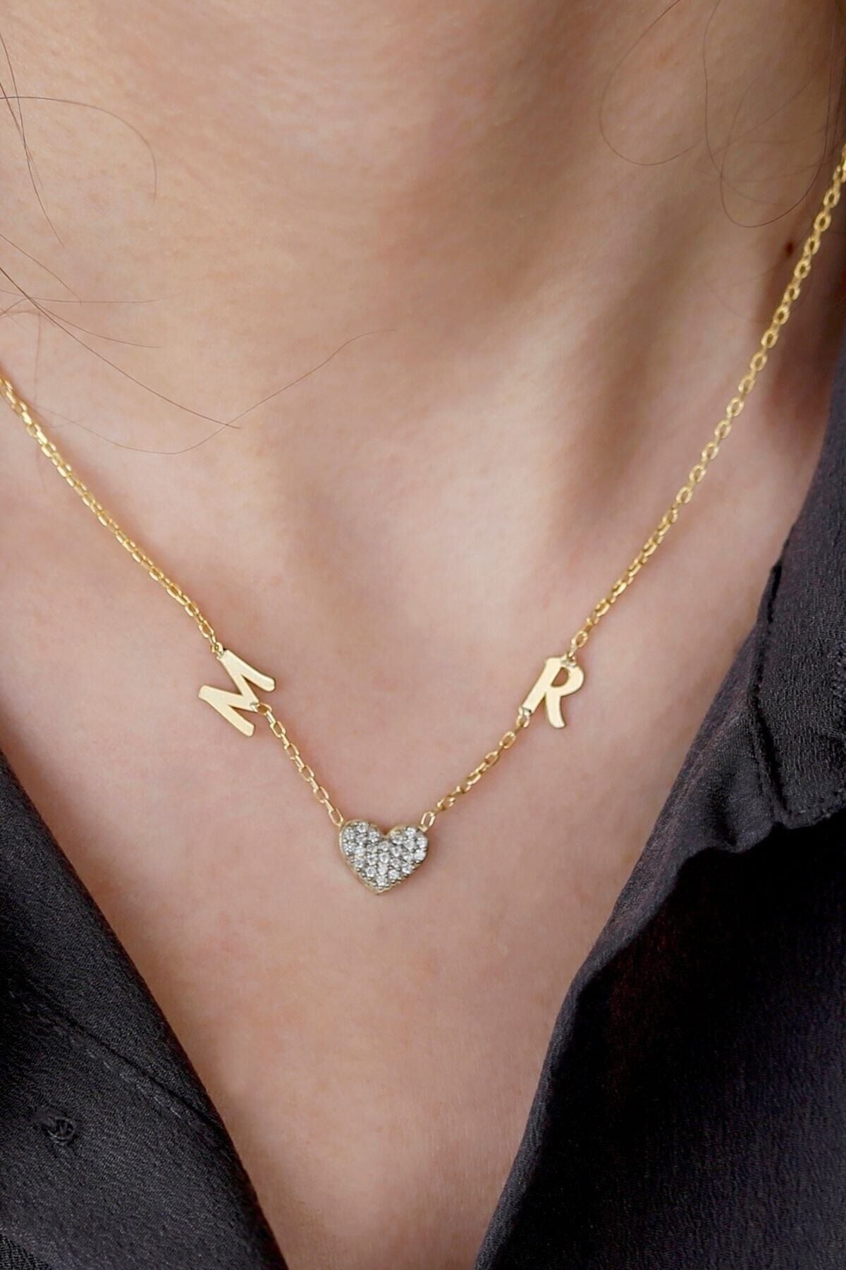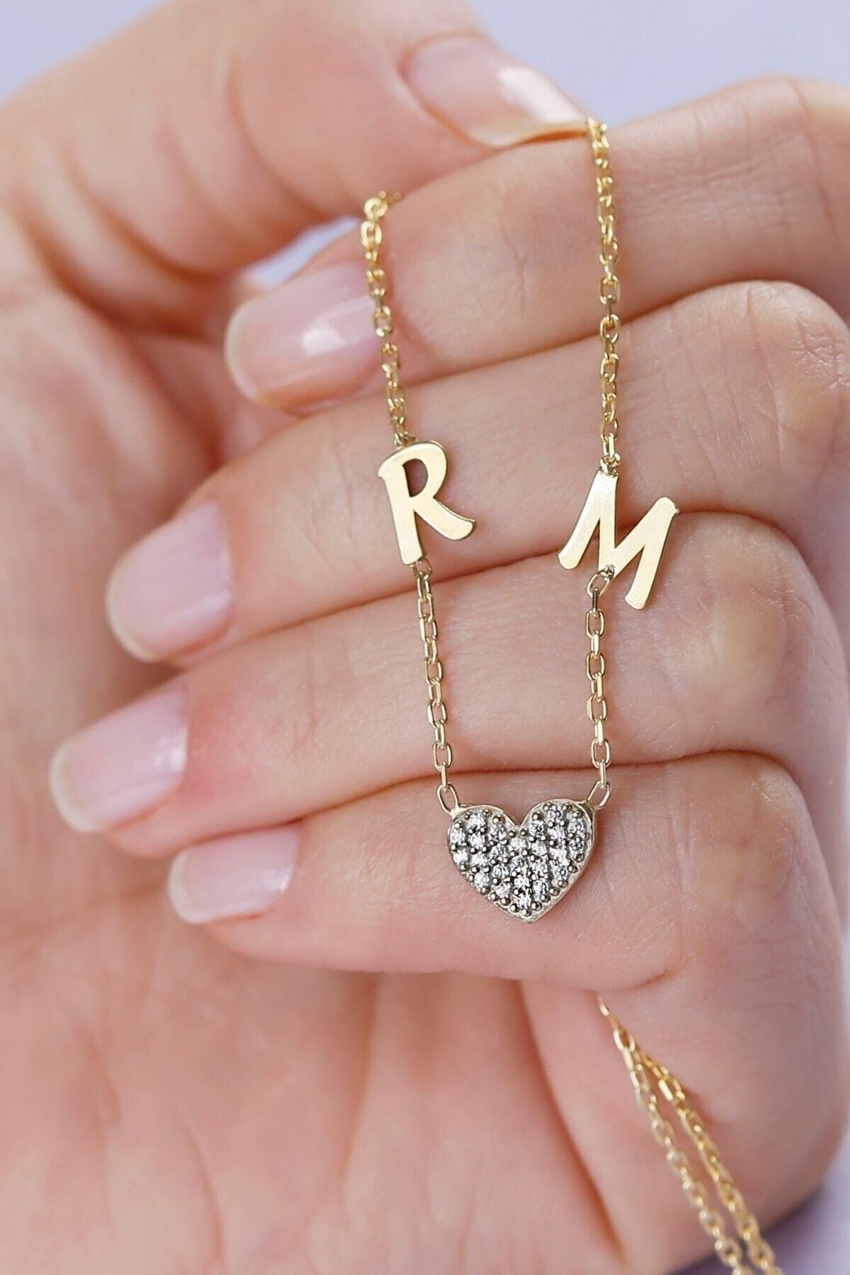 925 Ayar Gümüş Kalpli Harfli Kolye