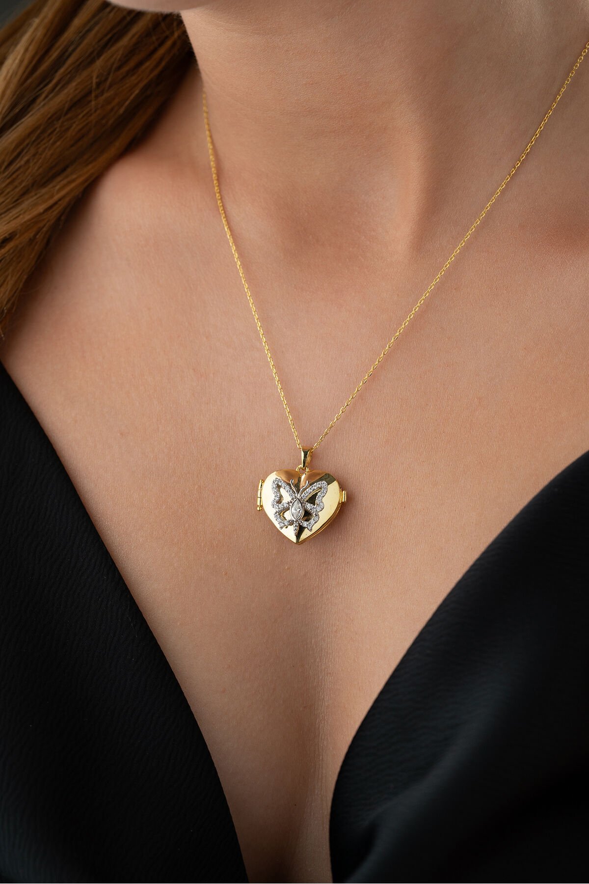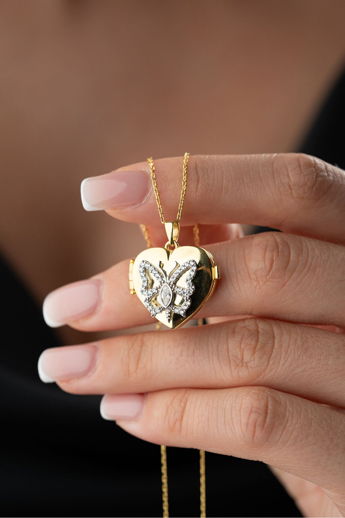 925 Ayar Gümüş Kalpli Kelebekli Resimlik Kolye