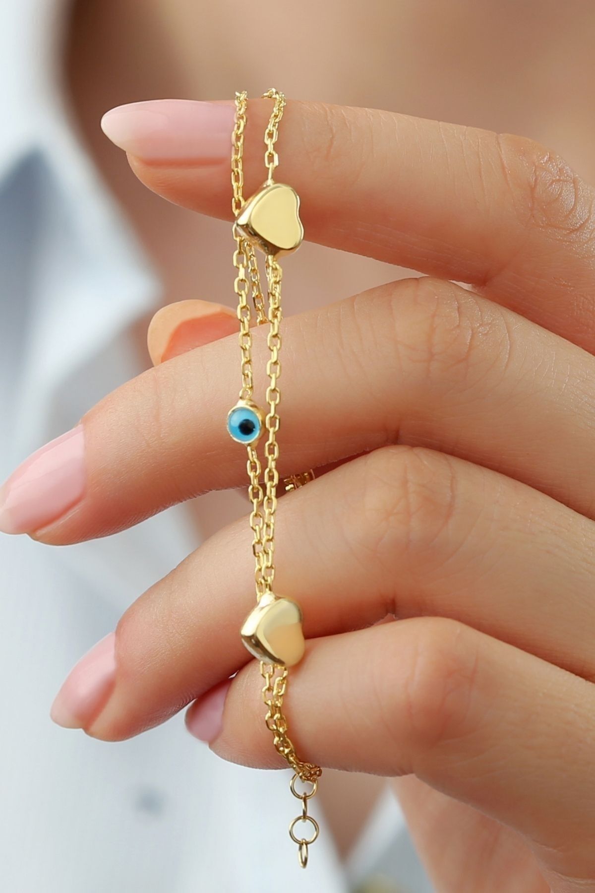 925 Ayar Gümüş Kalpli Nazarlı Çiftli Bileklik