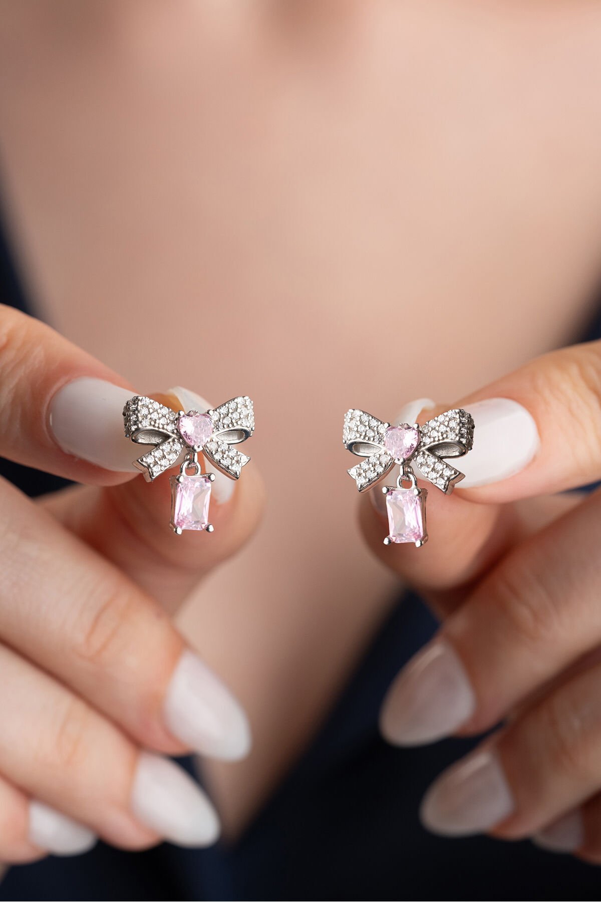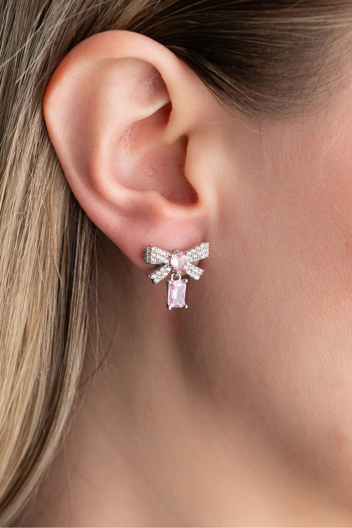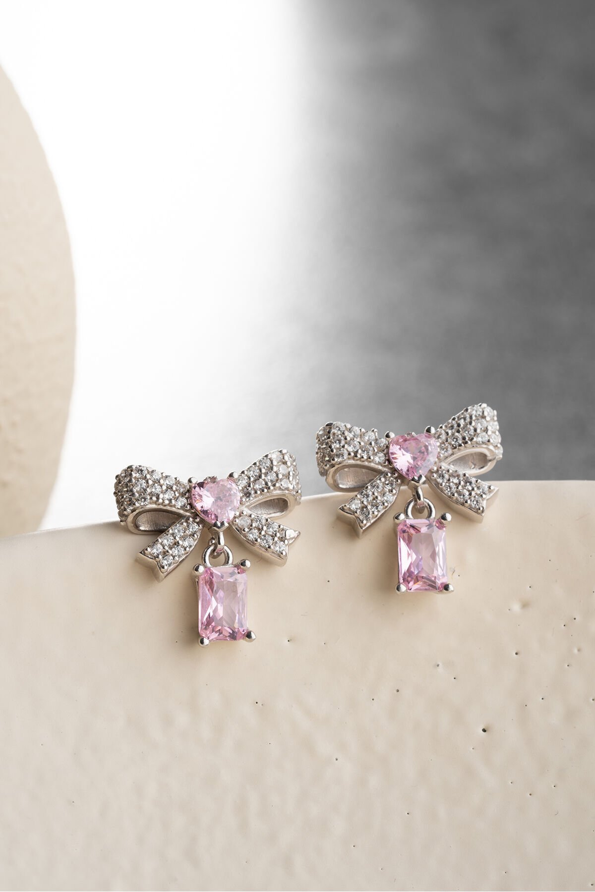 925 Ayar Gümüş Kalpli Papyonlu Küpe