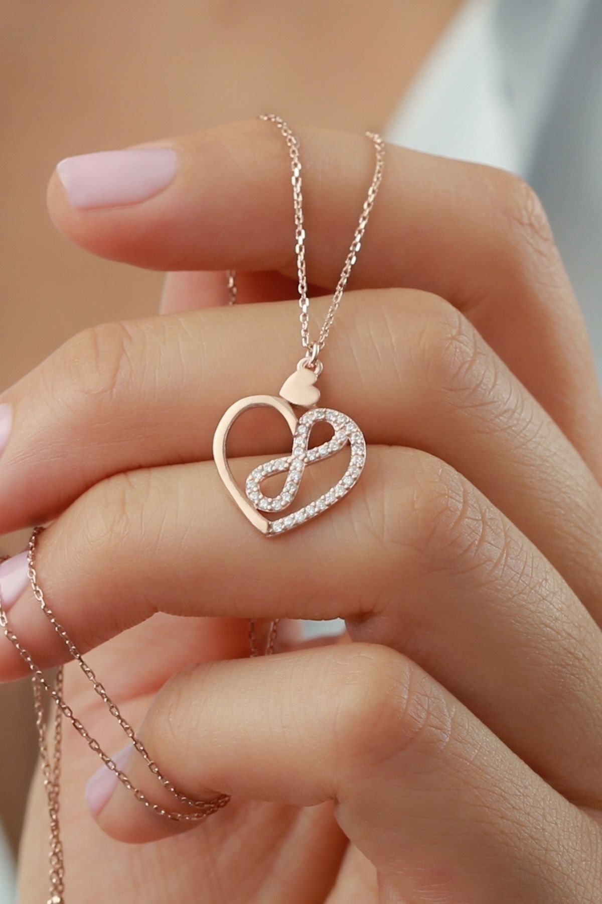 925 Ayar Gümüş Kalpli Sonsuz Kolye