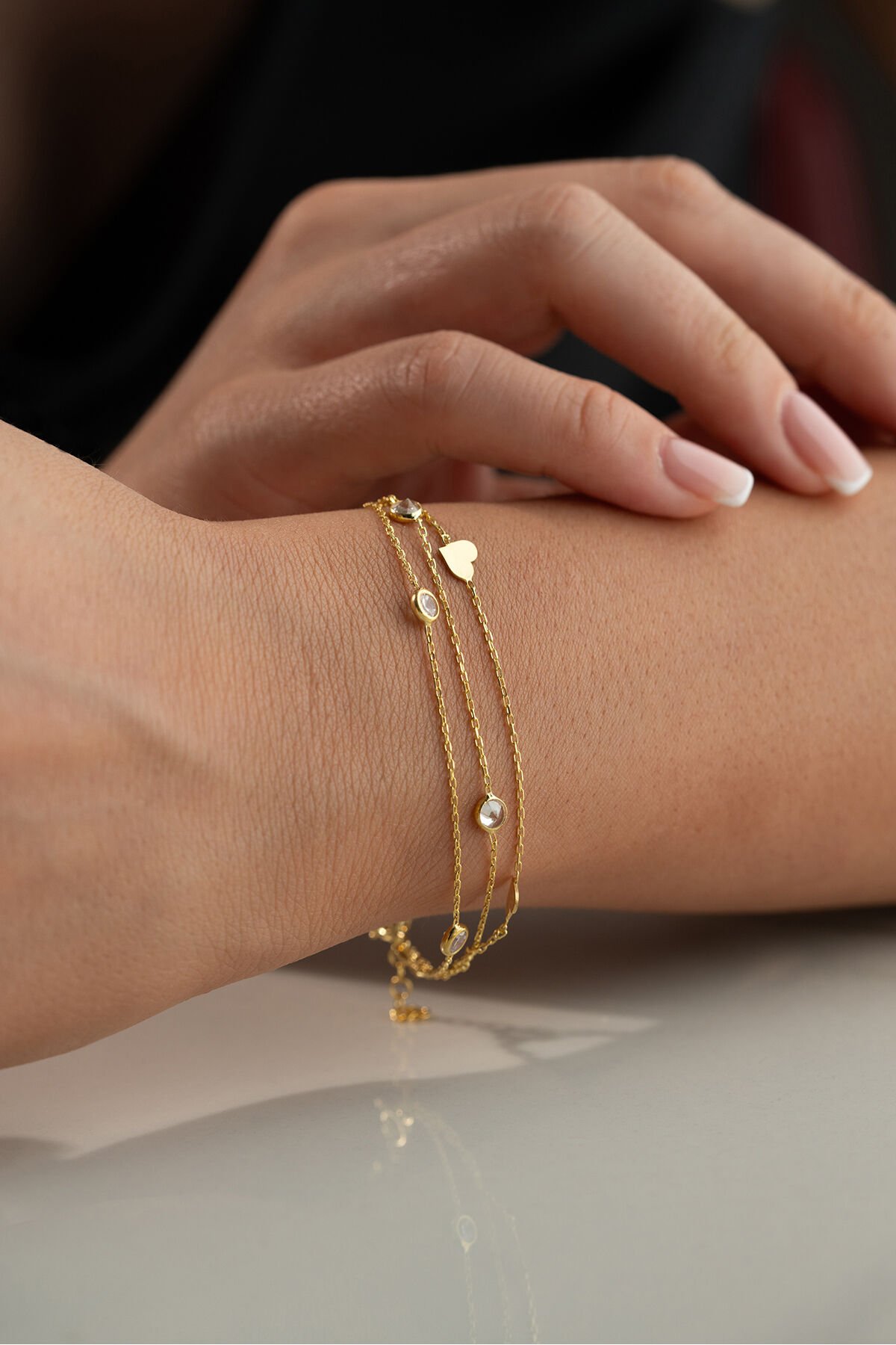 925 Ayar Gümüş Kalpli Taşlı Bileklik