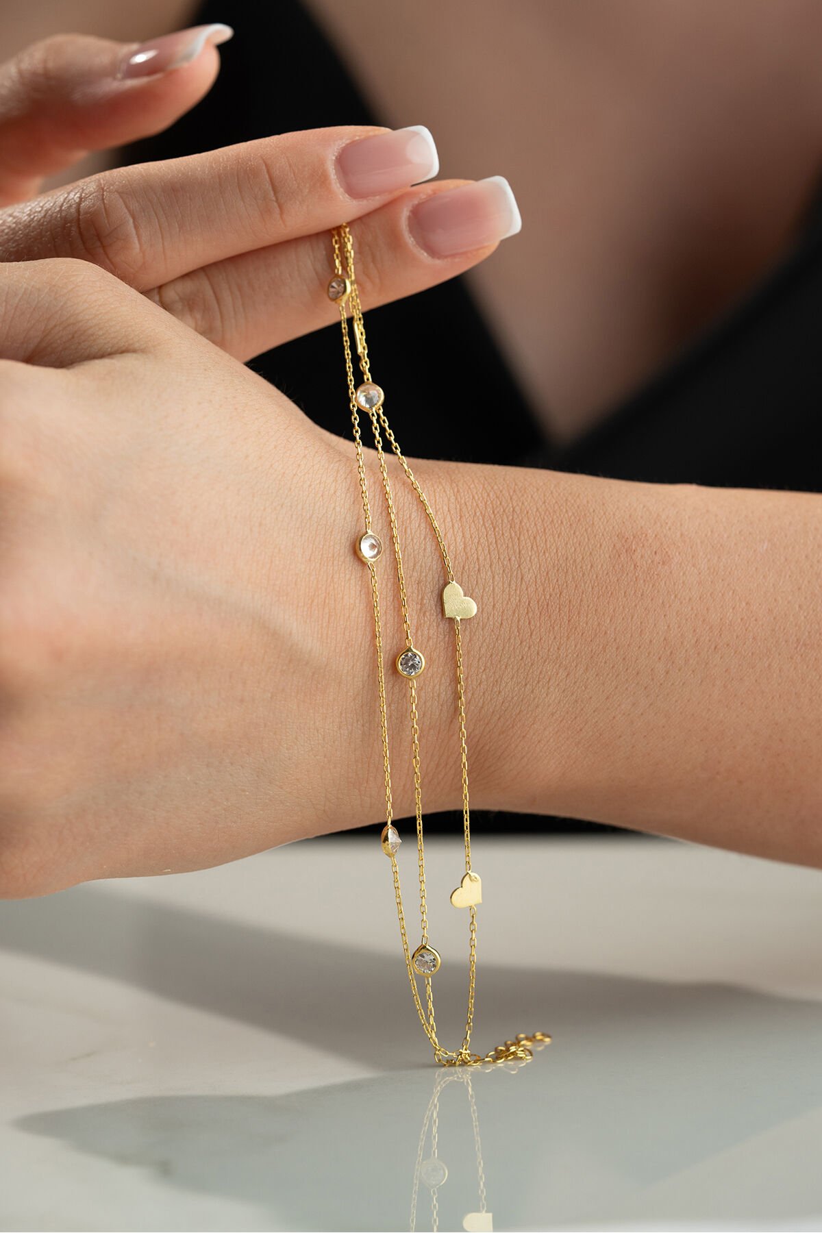 925 Ayar Gümüş bileklik ; Zarif ve ince tasarımı ile her kombine uyum sağlayan bu kolye, günlük kullanım için idealdir.; - Malzeme: 925 ayar gümüş - Boy: 42 cm (idealdir ve rahat bir kullanım sunar) - Özellikler: Hafif ve zarif yapısı ile boynunuza doğal bir ışıltı katar.; 925 Ayar Gümüş Bilekliğimiz Sade ama şık tasarımı ile bileğinize ince bir dokunuş katın.; Günlük ve özel günlerde rahatça kullanabilirsiniz.; - Malzeme: 925 ayar gümüş - Boy: Ayarlanabilir (17 cm - 20 cm arası) - Özellikler: Dayanıklı yapısı ile uzun ömürlü kullanım sağlar, hafif ve rahattır.; Tabii, işte kısa ve anlaşılır bir şekilde 925 ayar gümüş takıların saklama ve kullanma koşulları: 925 Ayar Gümüş Takıların Saklama Koşulları: - Kuru ve serin yerde saklayın: Gümüş takılar nemden uzak tutulmalıdır.; Nem, gümüşün kararmasına neden olabilir.; - Kapalı kutuda muhafaza edin: Takılarınızı hava almayan mücevher kutusunda veya kumaş keselerde saklayarak oksitlenmeyi önleyebilirsiniz.; - Diğer takılarla temas ettirmeyin: Çizilmeleri önlemek için gümüş takılarınızı diğer takılardan ayrı tutun.; 925 Ayar Gümüş Takıların Kullanma Koşulları: - Su ve kimyasallardan uzak tutun: Gümüş takılarınızı parfüm, krem, saç spreyi gibi kimyasallarla temas ettirmeyin ve suya maruz bırakmayın.; - Düzenli temizleyin: Yumuşak bir bezle düzenli olarak temizleyerek parlaklığını koruyun.; - Uyurken ve spor yaparken çıkartın: Takılarınızı zarar görmemesi için uyurken, spor yaparken veya yoğun fiziksel aktivitelerde çıkarın.; Bu basit kurallar, gümüş takılarınızın uzun ömürlü ve parlak kalmasını sağlayacaktır.;