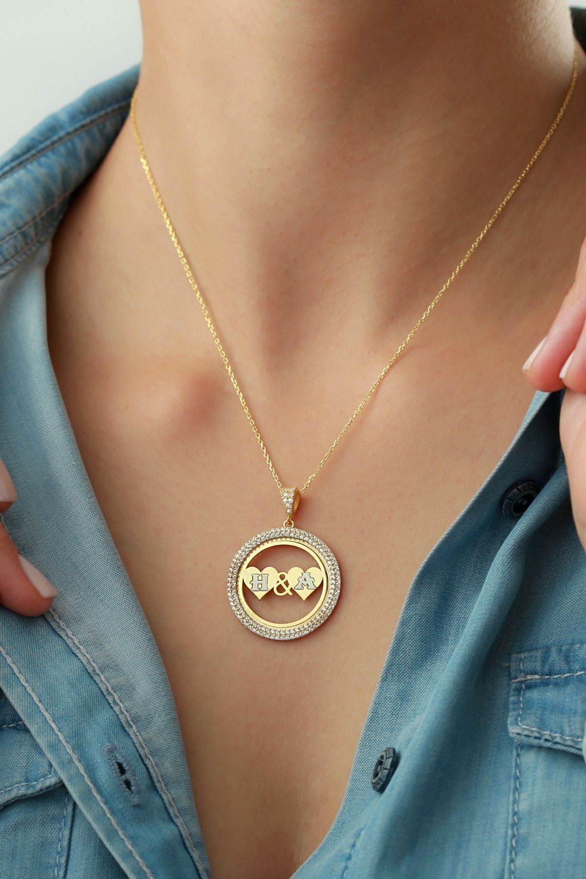 925 Ayar Gümüş Kalpli Taşlı Halka Kolye