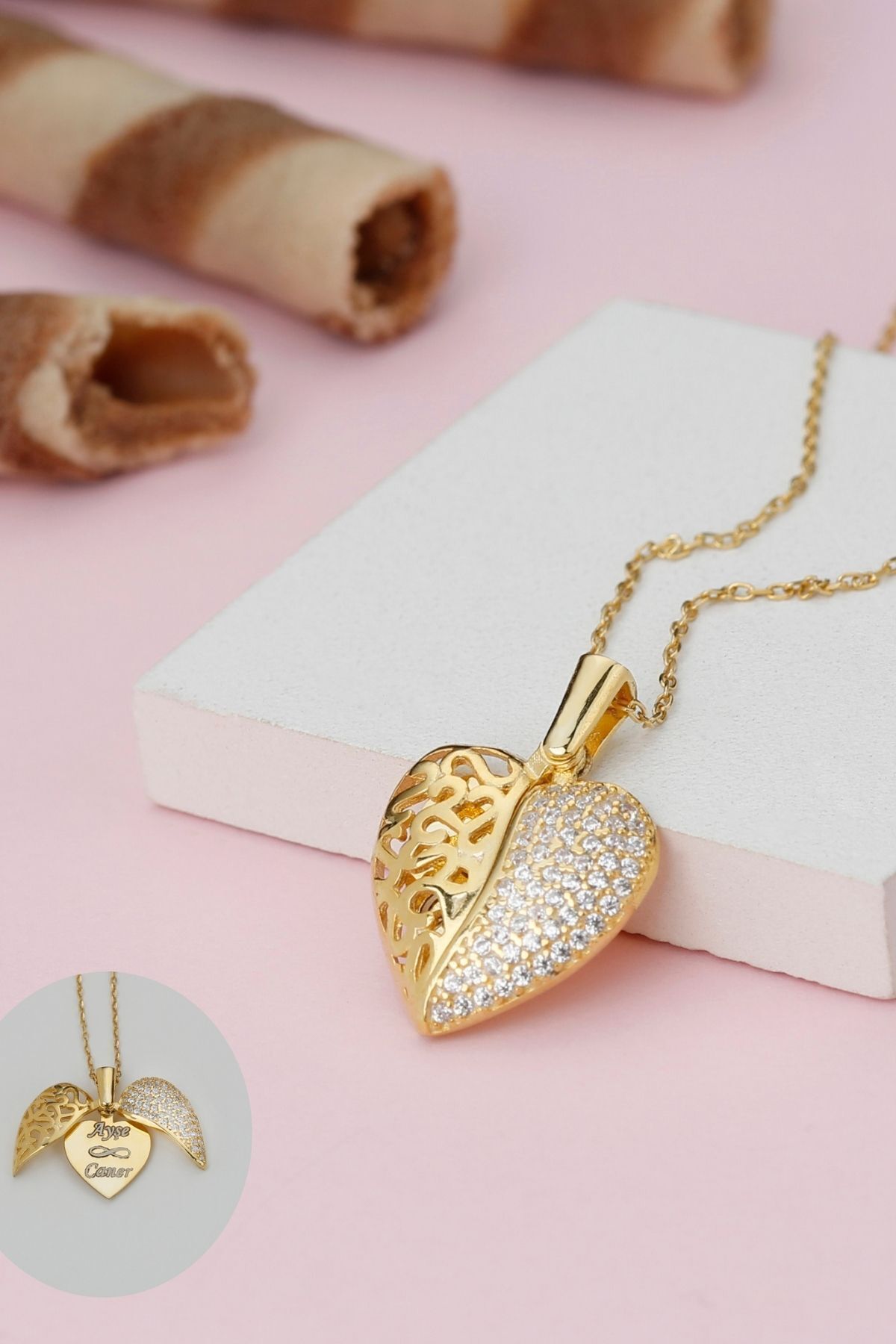 925 Ayar Gümüş Kanatlı Kalp Kolye