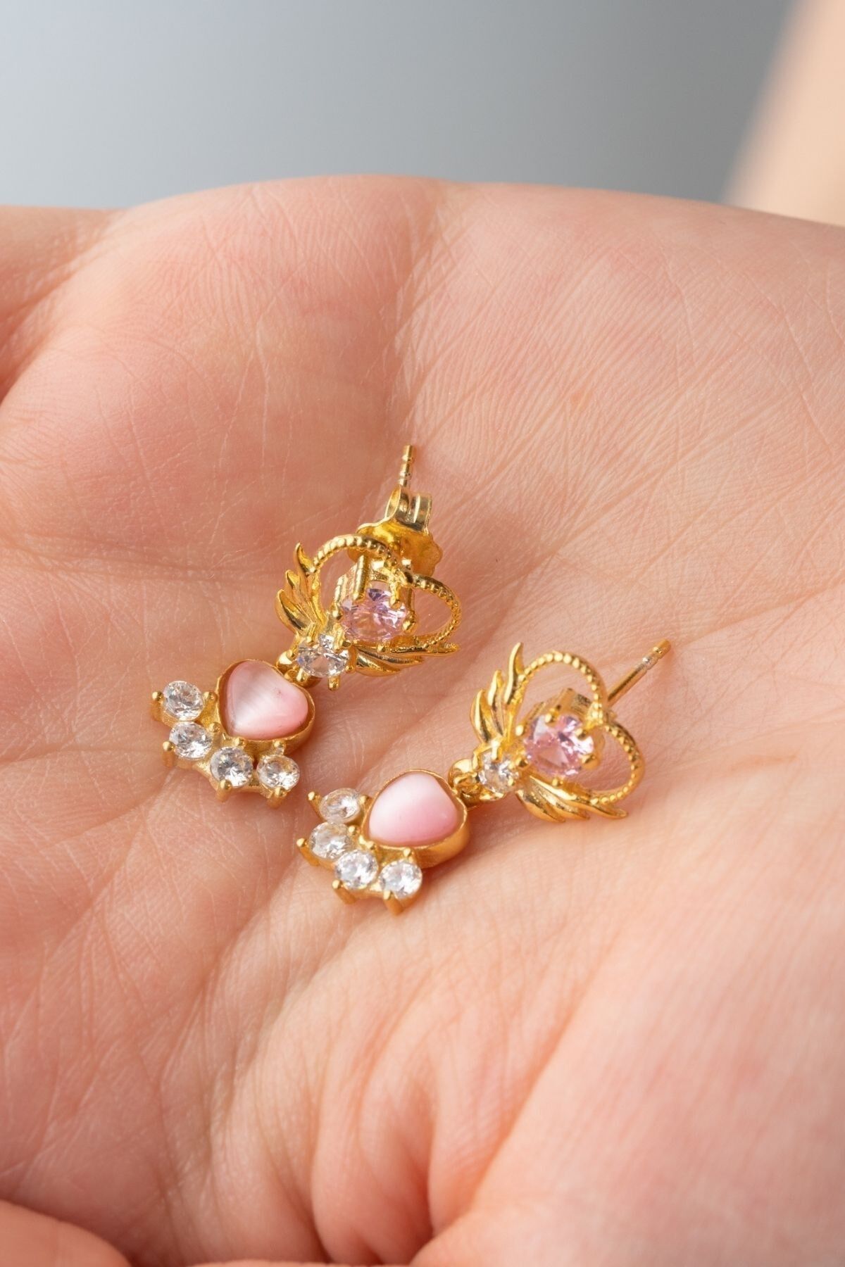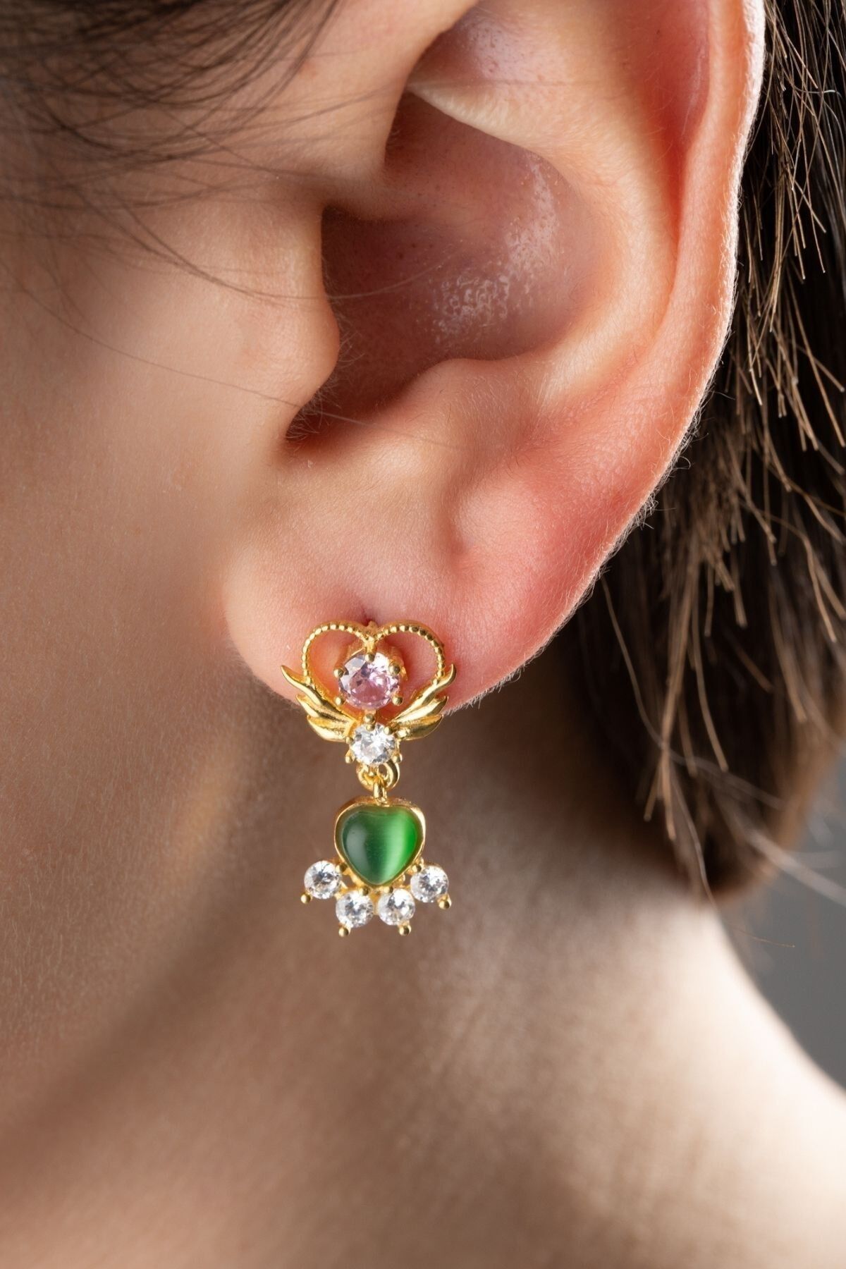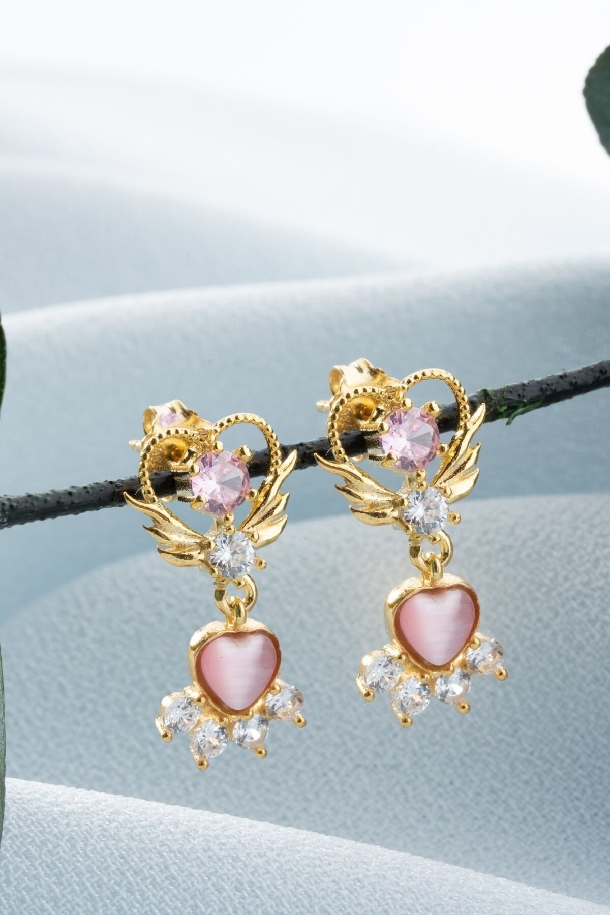 925 Ayar Gümüş Kanatlı Kalp Küpe