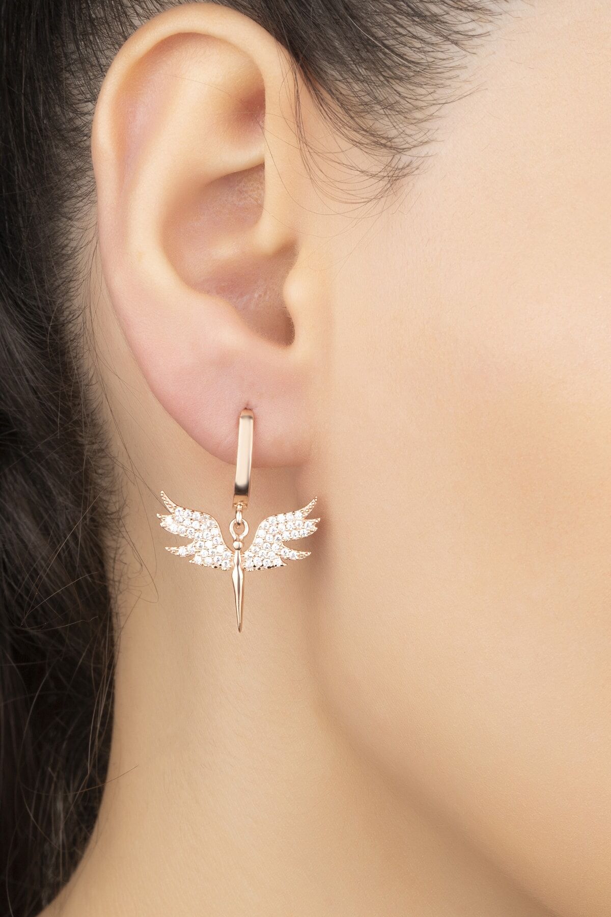 925 Ayar Gümüş Kanatlı Zirkon Taşlı Küpe