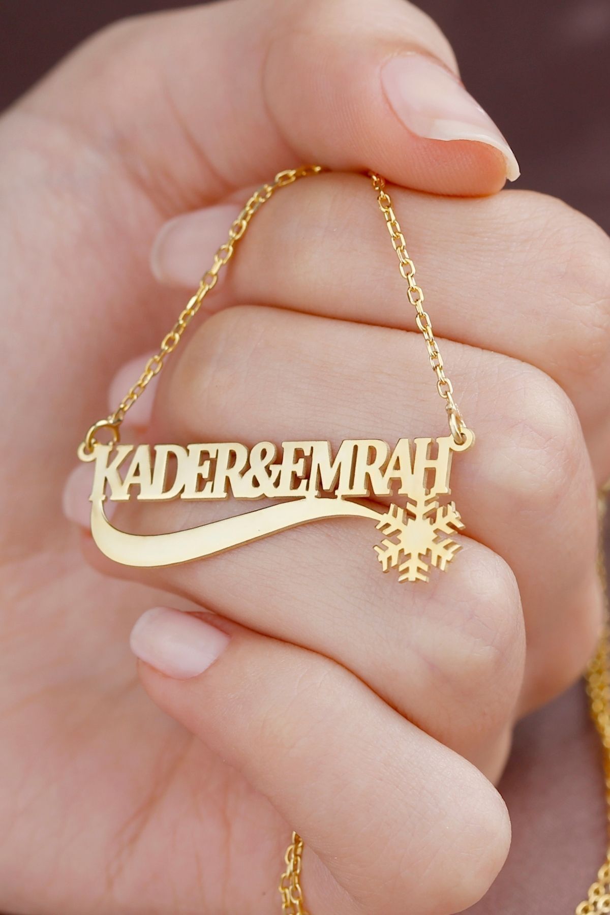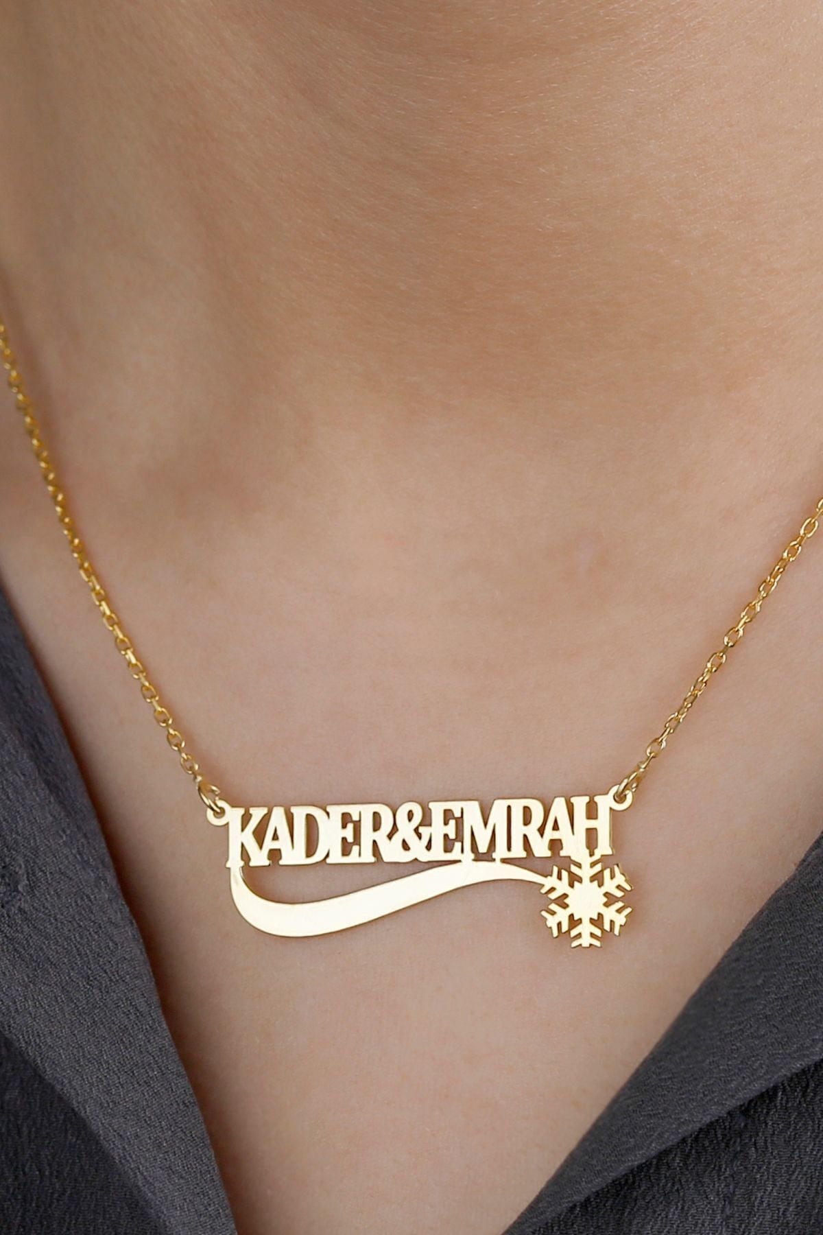 925 Ayar Gümüş Kar Tanesi Iki Isimli Kolye
