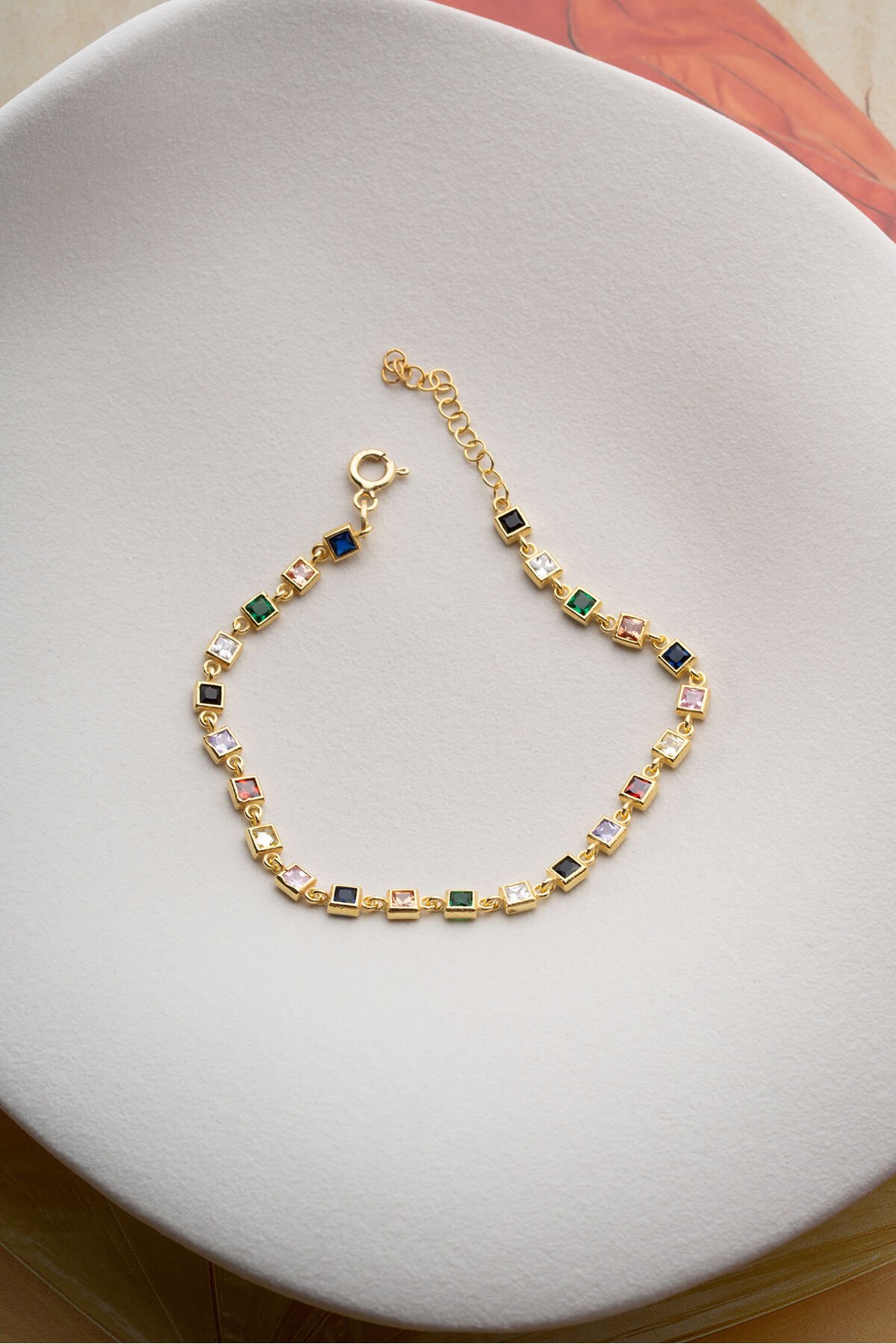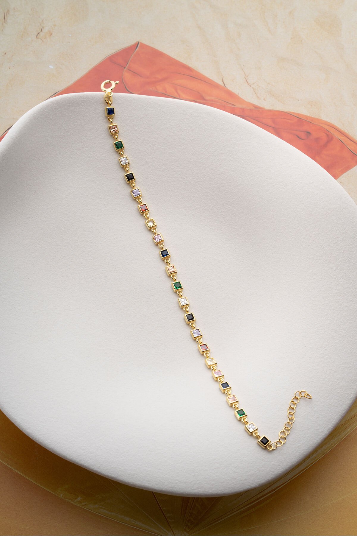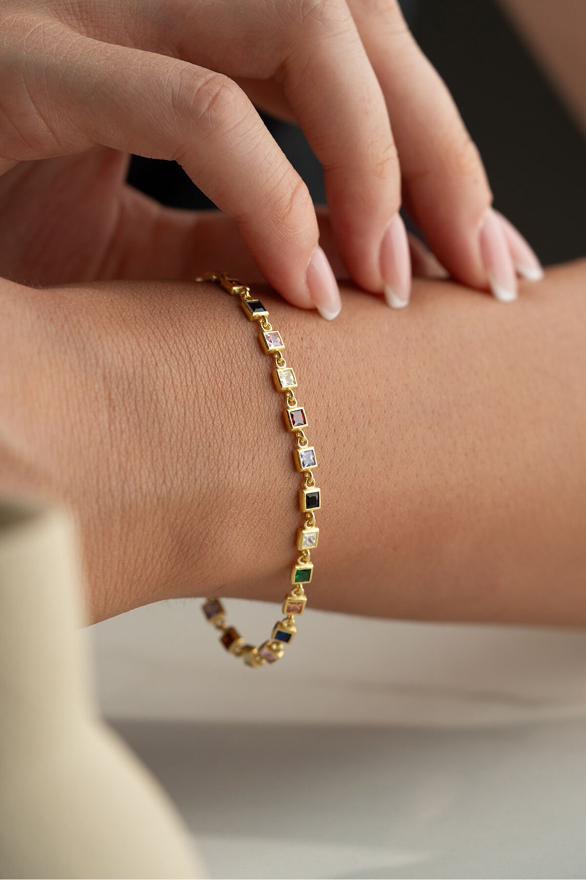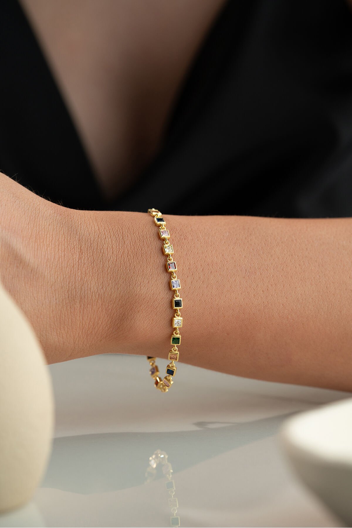 925 Ayar Gümüş Kare Renkli Taşlı Bileklik